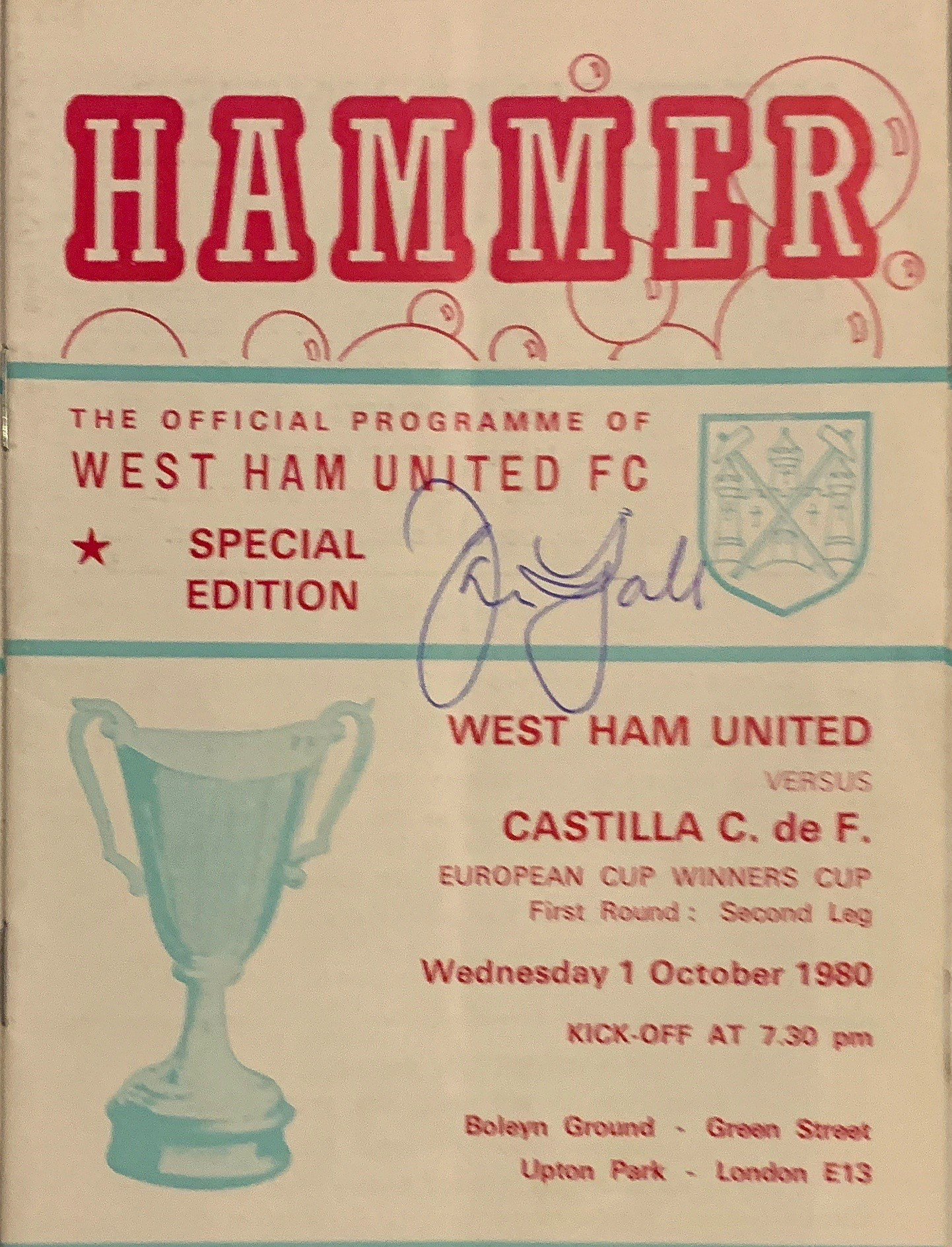 Very Rare 80/81 West Ham v Castilla Football Ticket: Incredibly rare ticket for the match behind closed doors at Upton Park. This was issued to Lyalls son Murray who attended and both the programme and ticket are signed by John. (2)