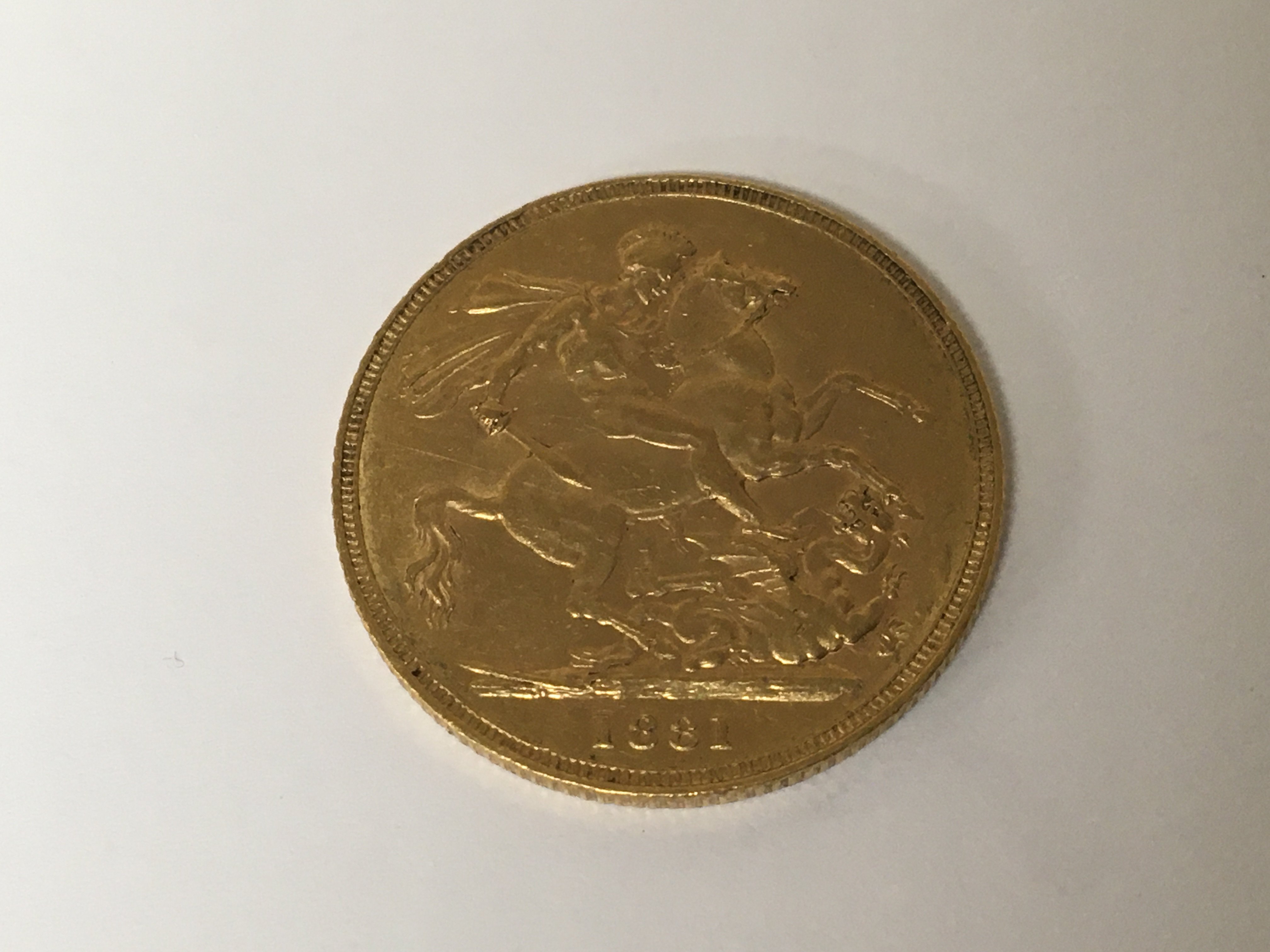 A Victorian gold full sovereign with Victorian younger side profile image 1881.