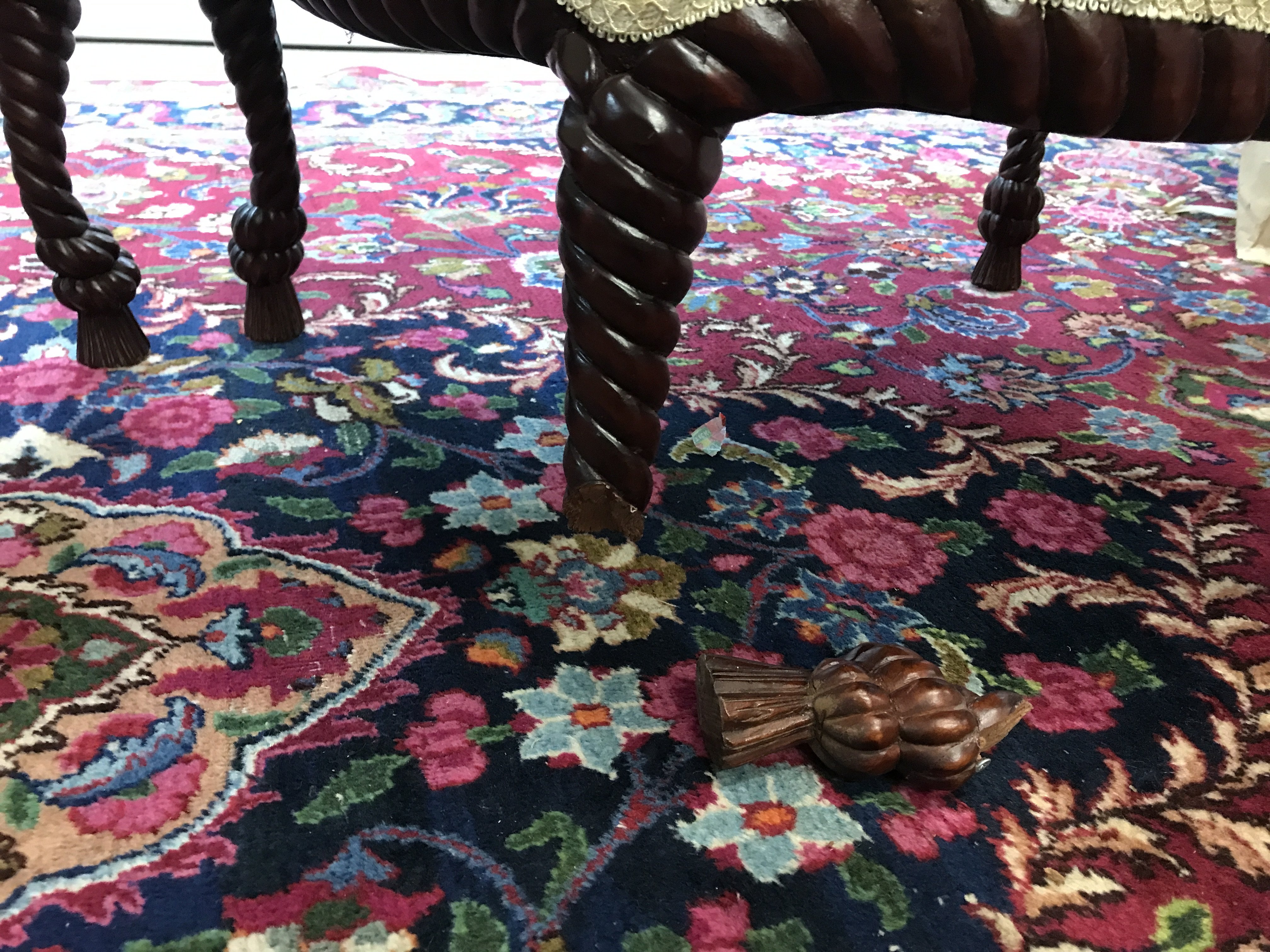Rope twist Napoleon III style Chairs, back legs on one chair restored and damaged . 76 cm tall, 70cm wide