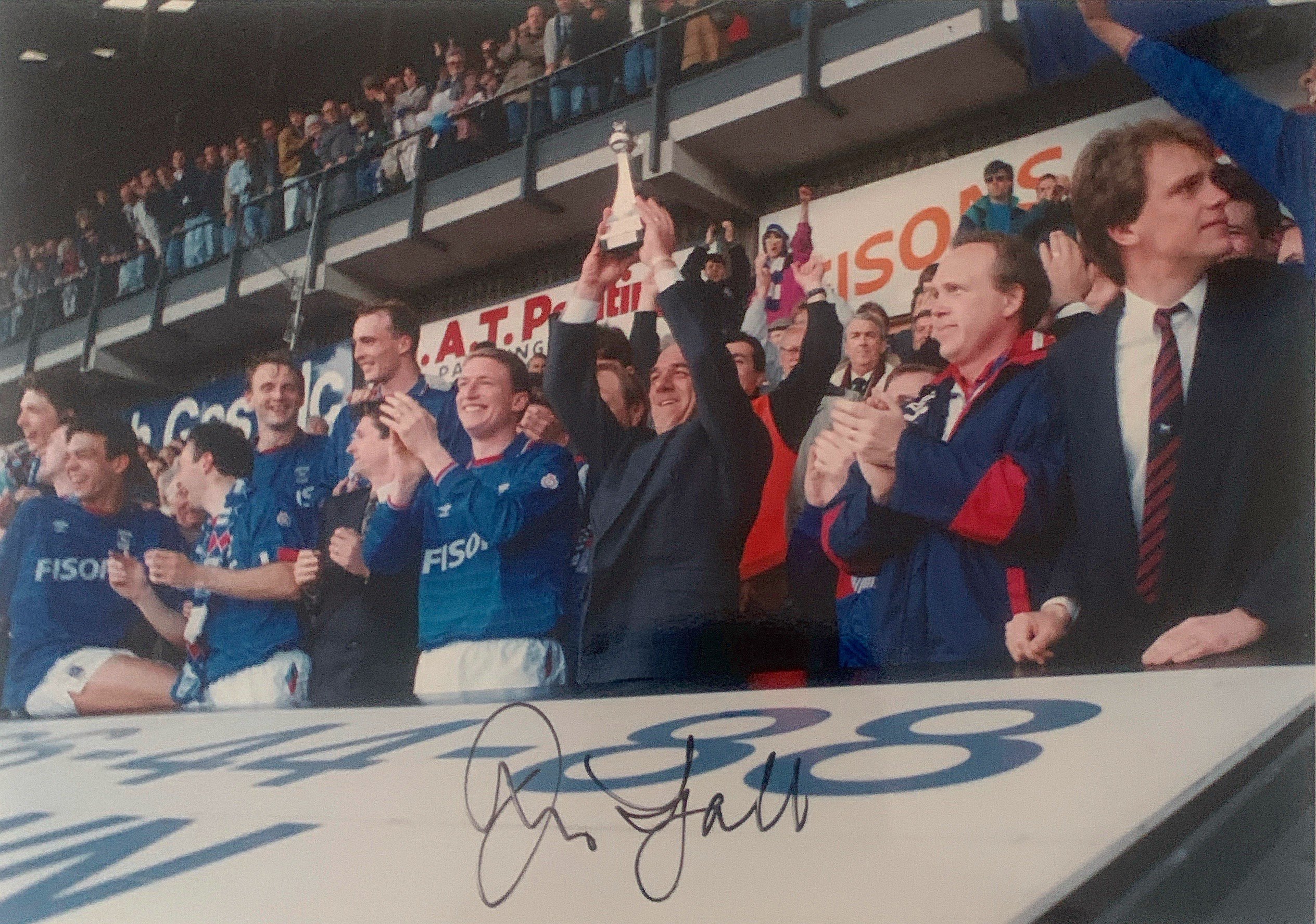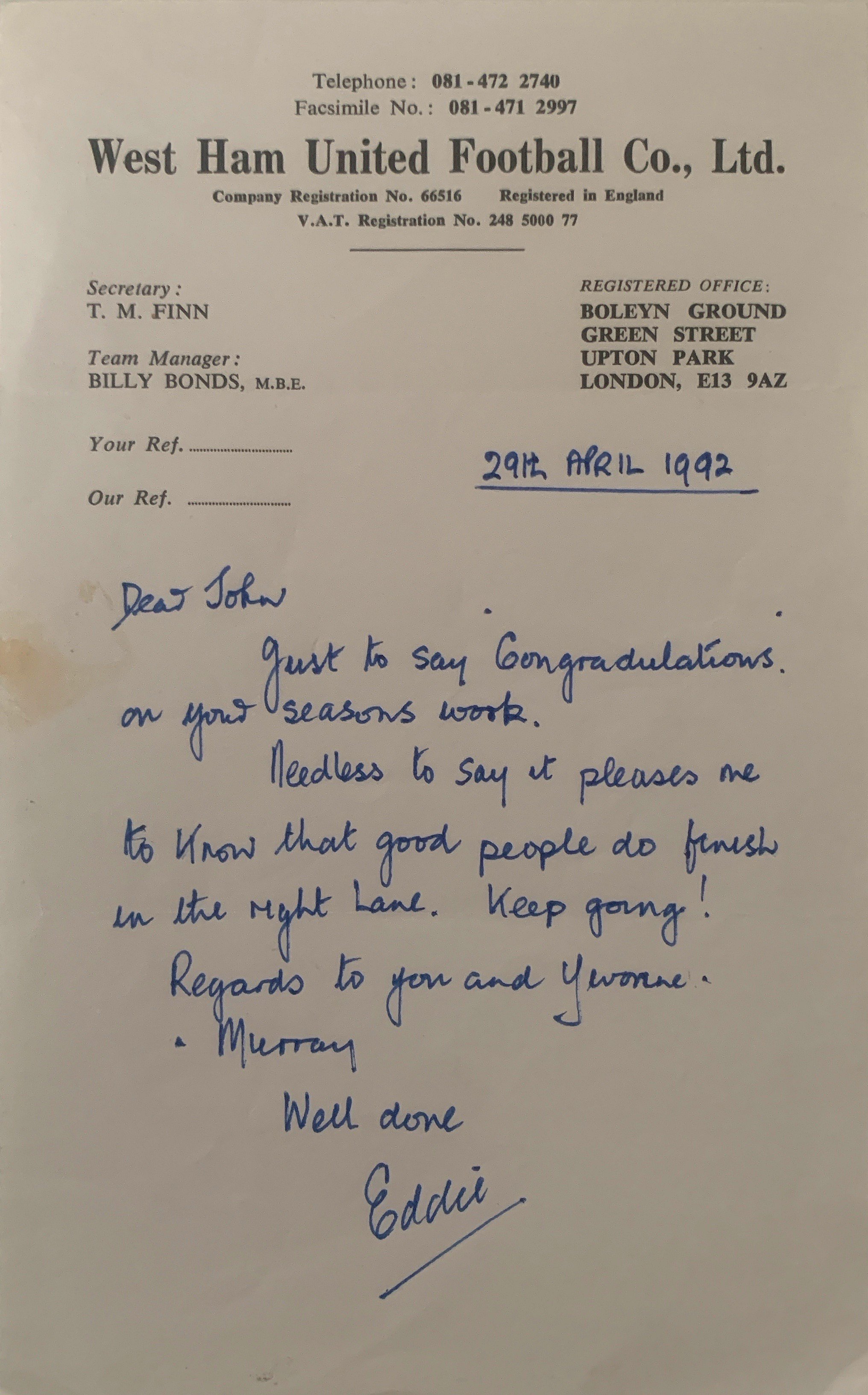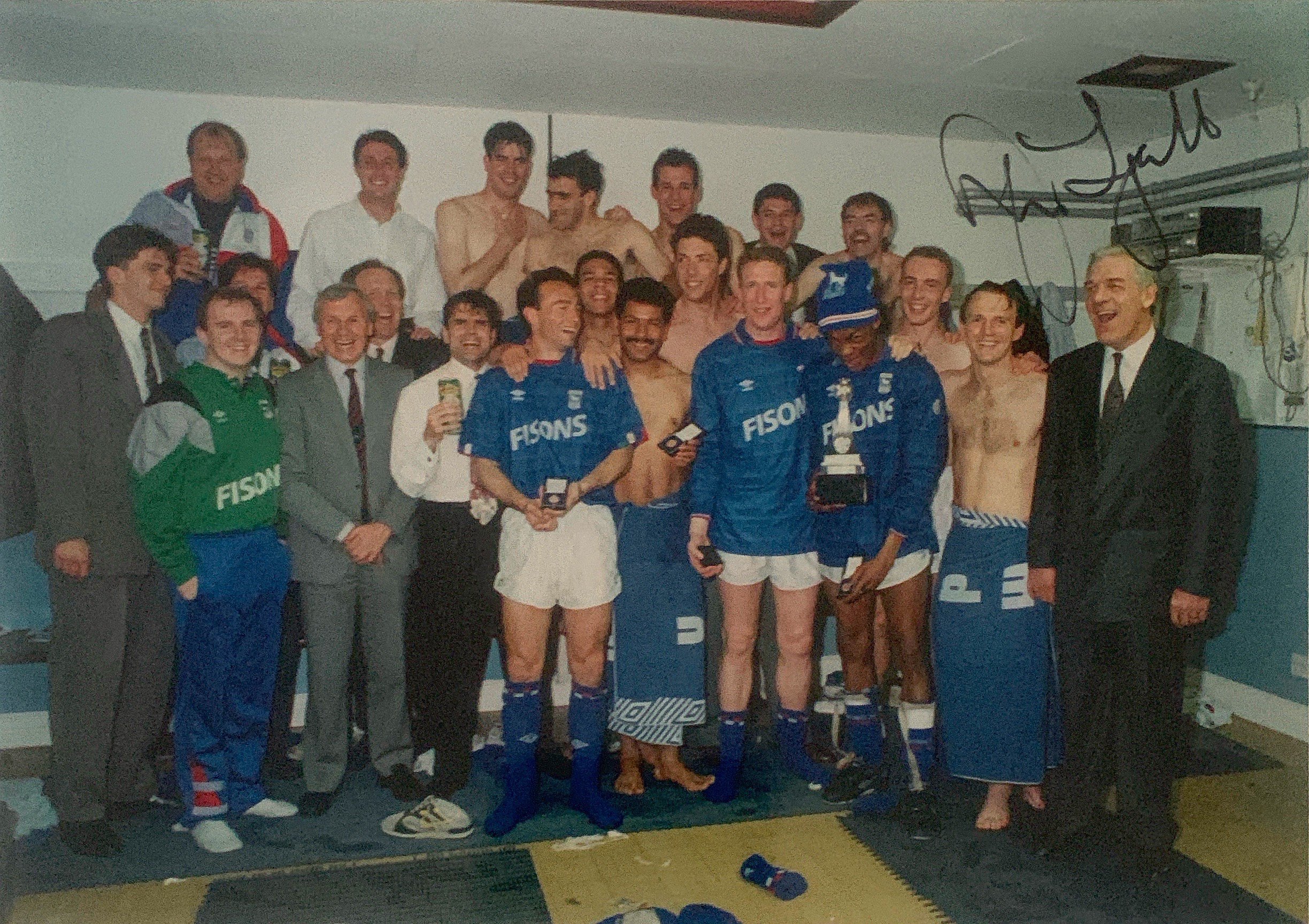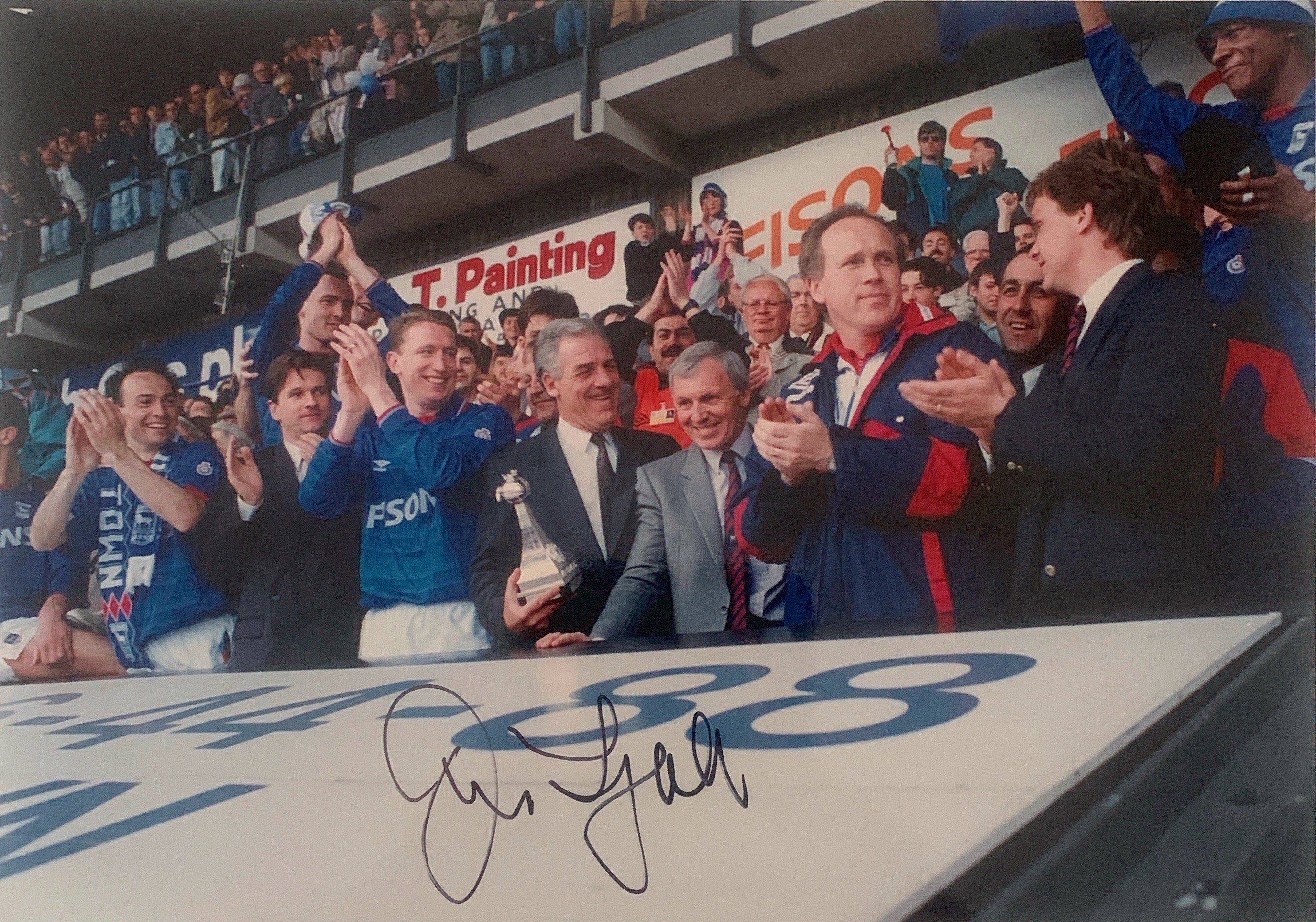 John Lyalls Ipswich Town Football Memorabilia: Includes letters from Martin Cearns and Eddie Chapman from West Hams board congratulating him on his appointment. Signed photos including last match of the season v Brighton with trophy in 1992. Civic reception from Town Hall also signed by Lyall. There are family congratulations cards, ties and other items with his signature including books. Tribute programme from 22 4 2006 which was given to the family which is multi signed. Nice lot.