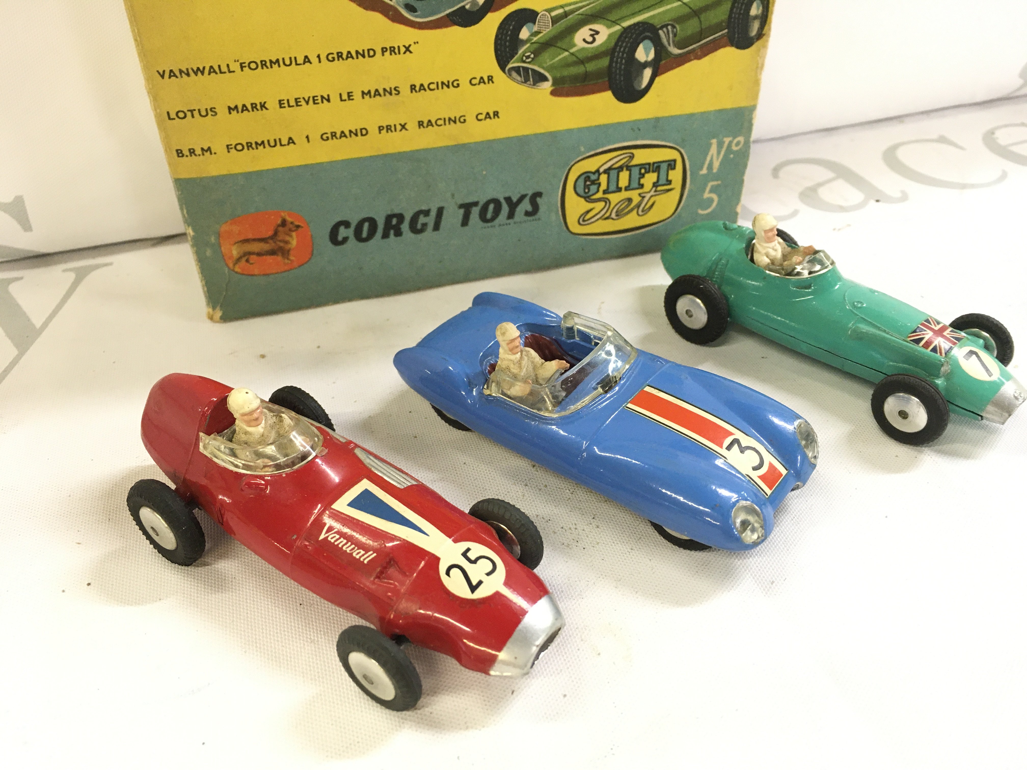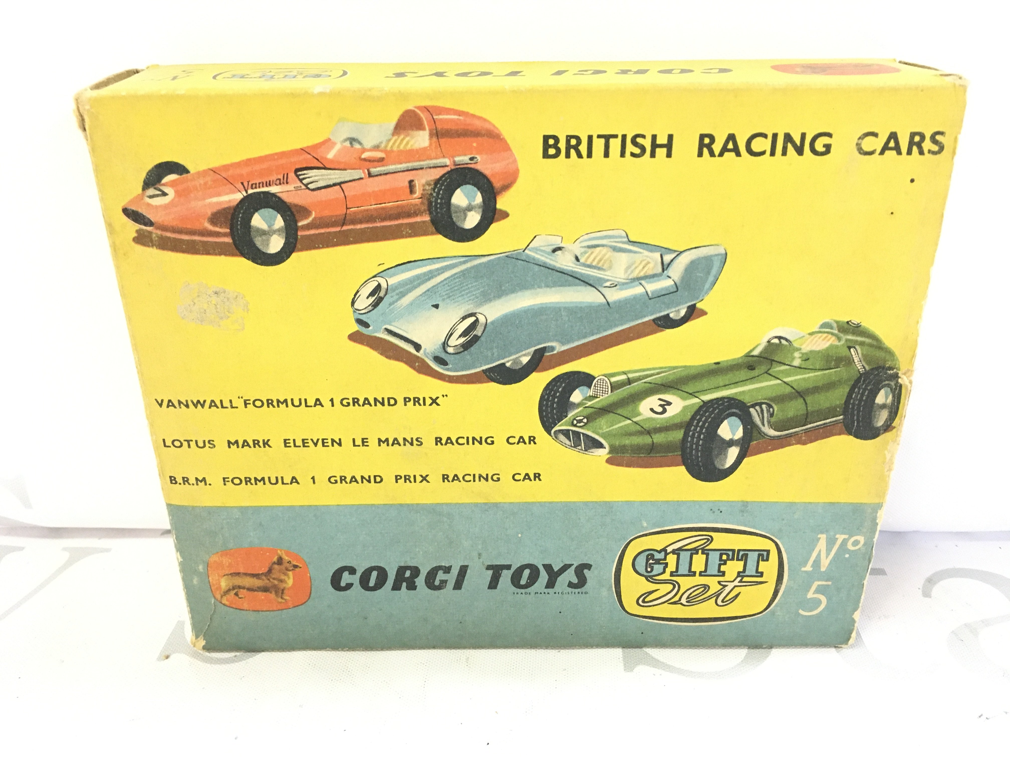 A Boxed Gorgi Gif Set #5 British Racing Cars. Vanwall Formula 1 Grand Pric. Lotus Mark Eleven Le Mans Racing Car. B.R.M Formula 1 Grand Prix Racing Car.