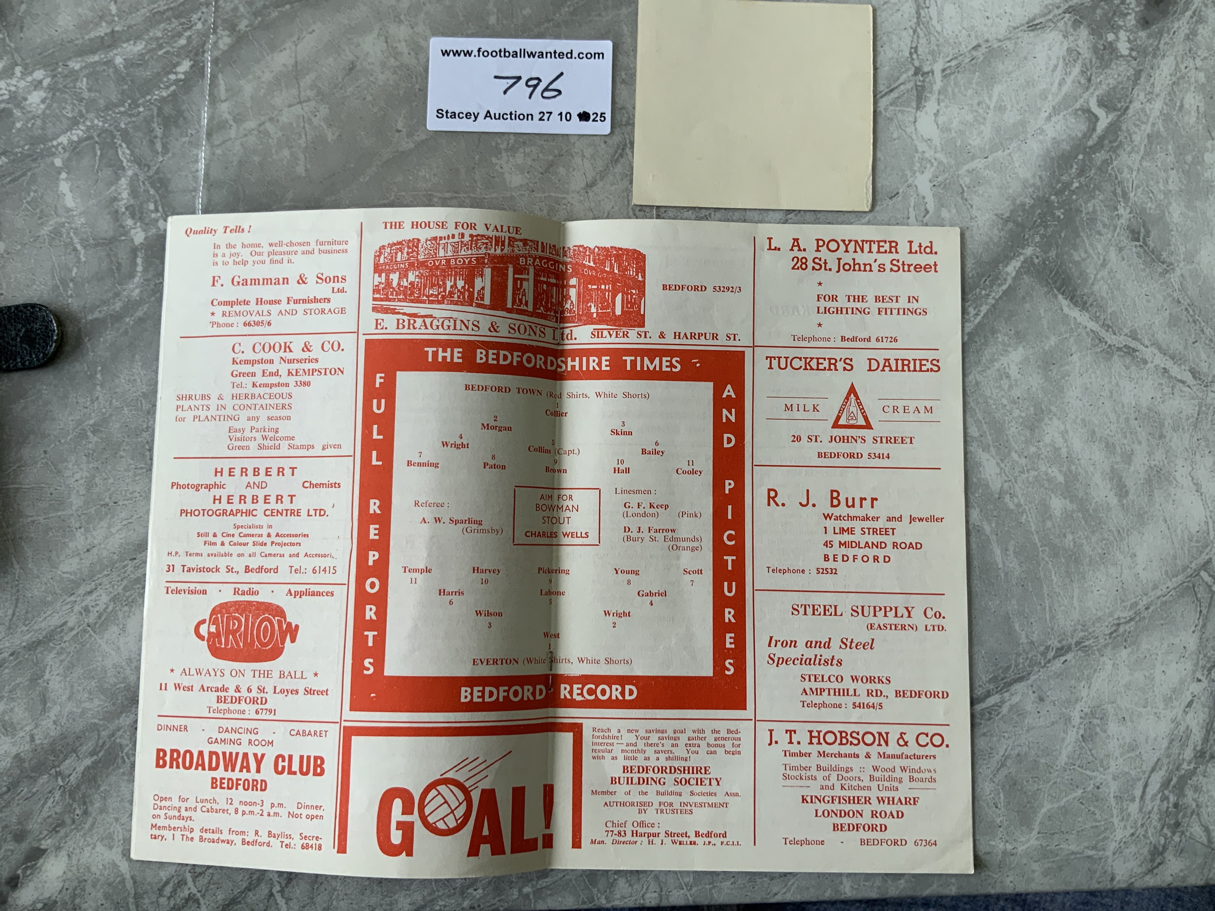 65/66 Bedford Town v Everton FA Cup Programme + Ticket: Rare ticket for the match at Bedford in the season Everton went on to win the FA Cup. Excellent with no writing to either. (2)