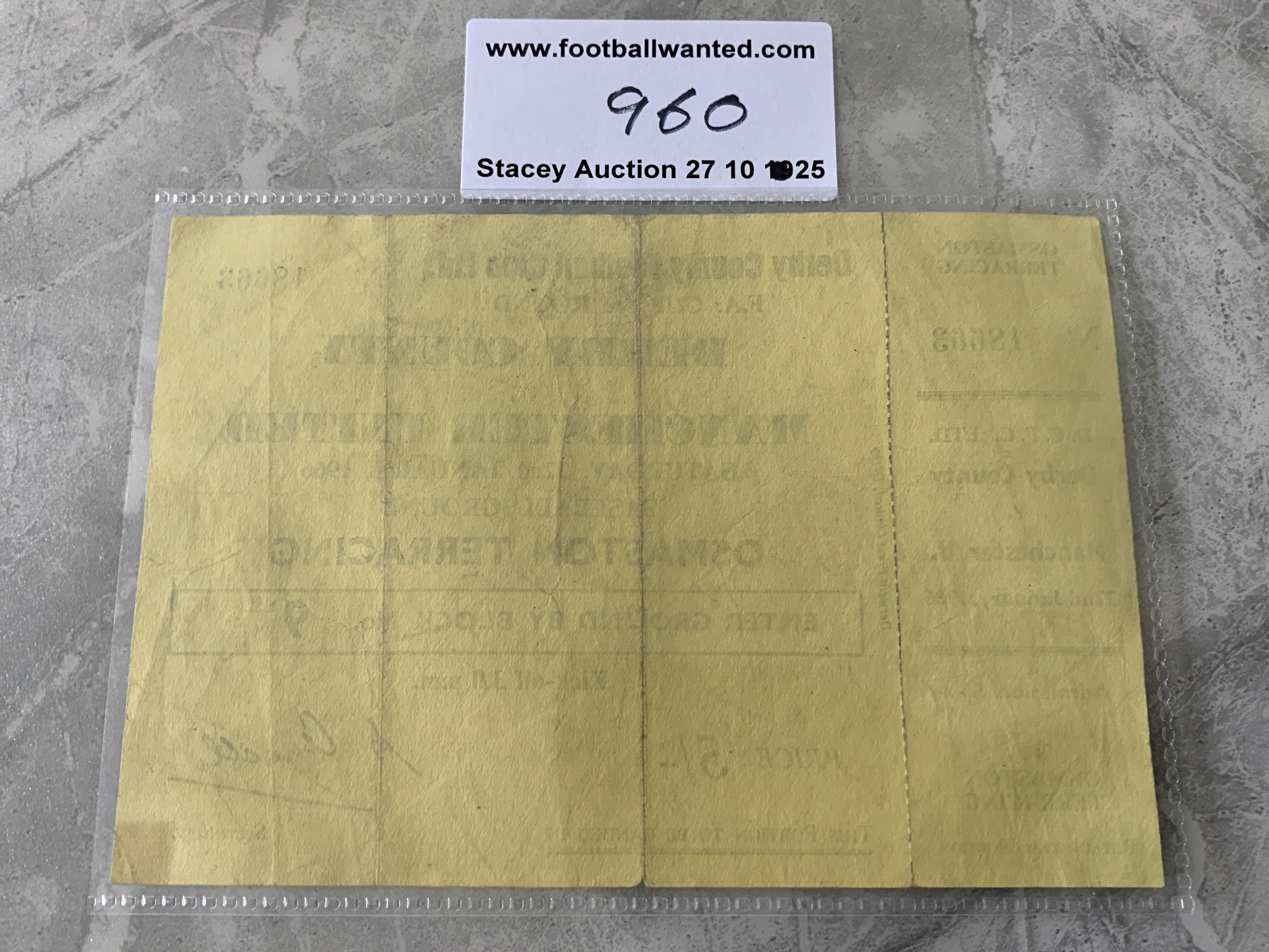 65/66 Derby County v Manchester United Football Ticket: Unused FA Cup match at Derby with counterfoil still attached. Good with fold.