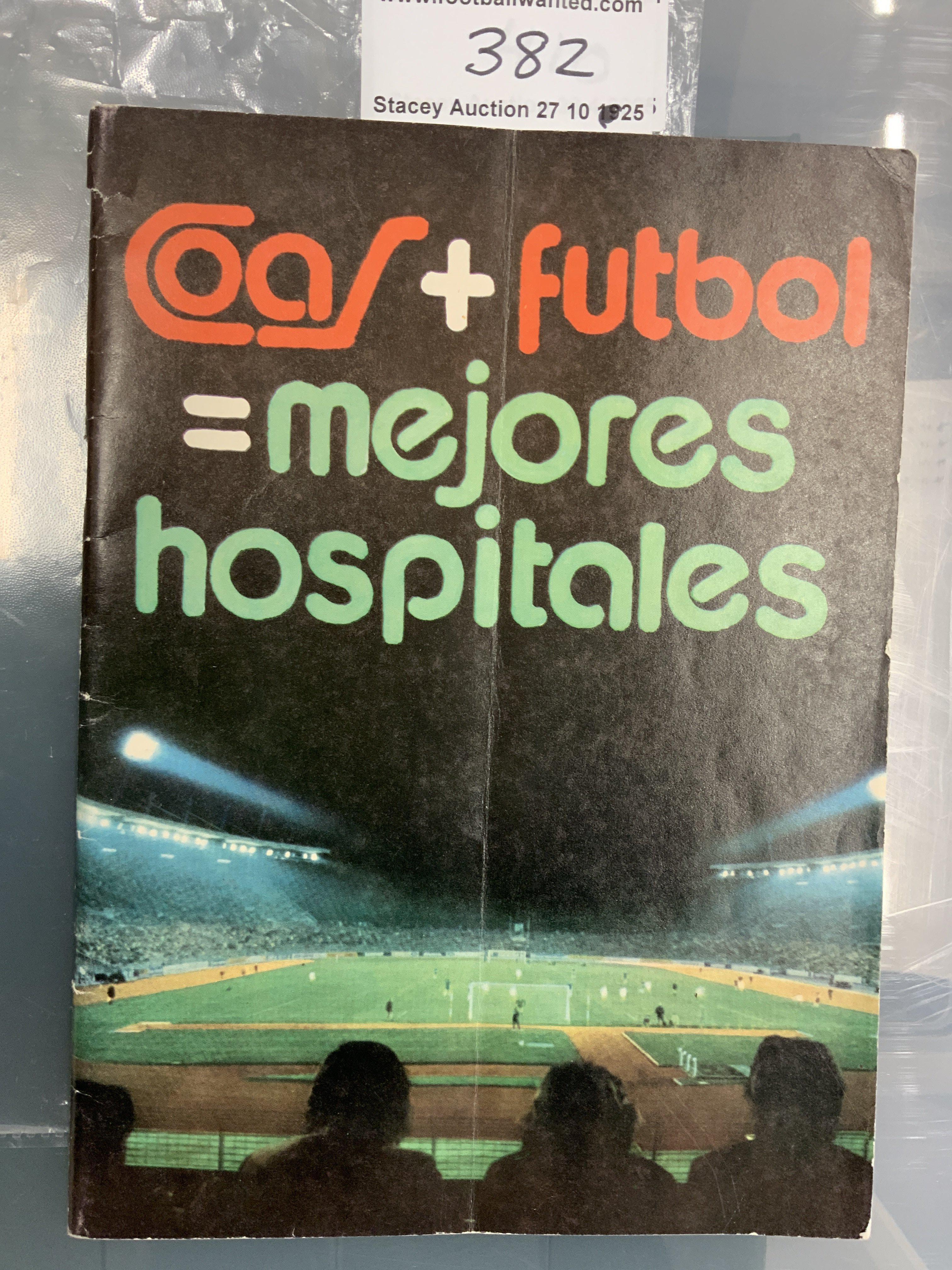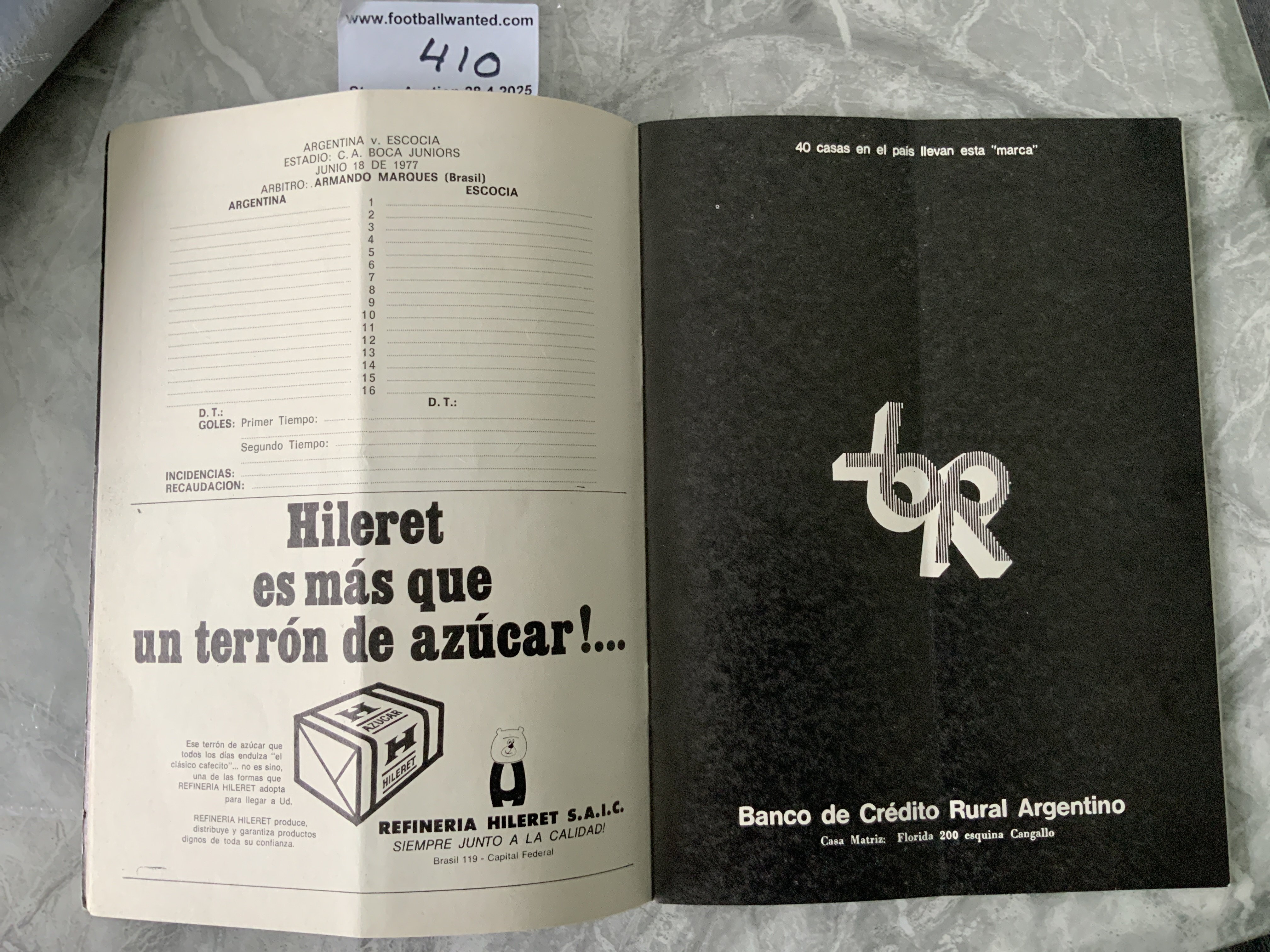1977 Argentina v Scotland + England Football Programme: Friendlies played in June 1977 which was a dress rehearsal for forthcoming World Cup tournament. Covers all of Argentinas matches v France Yugoslavia Scotland England Poland and East + West Germany. 48 page tournament programme has fold and small tear at top of spine but no writing. Please note there were also individual programmes for matches which are not included.