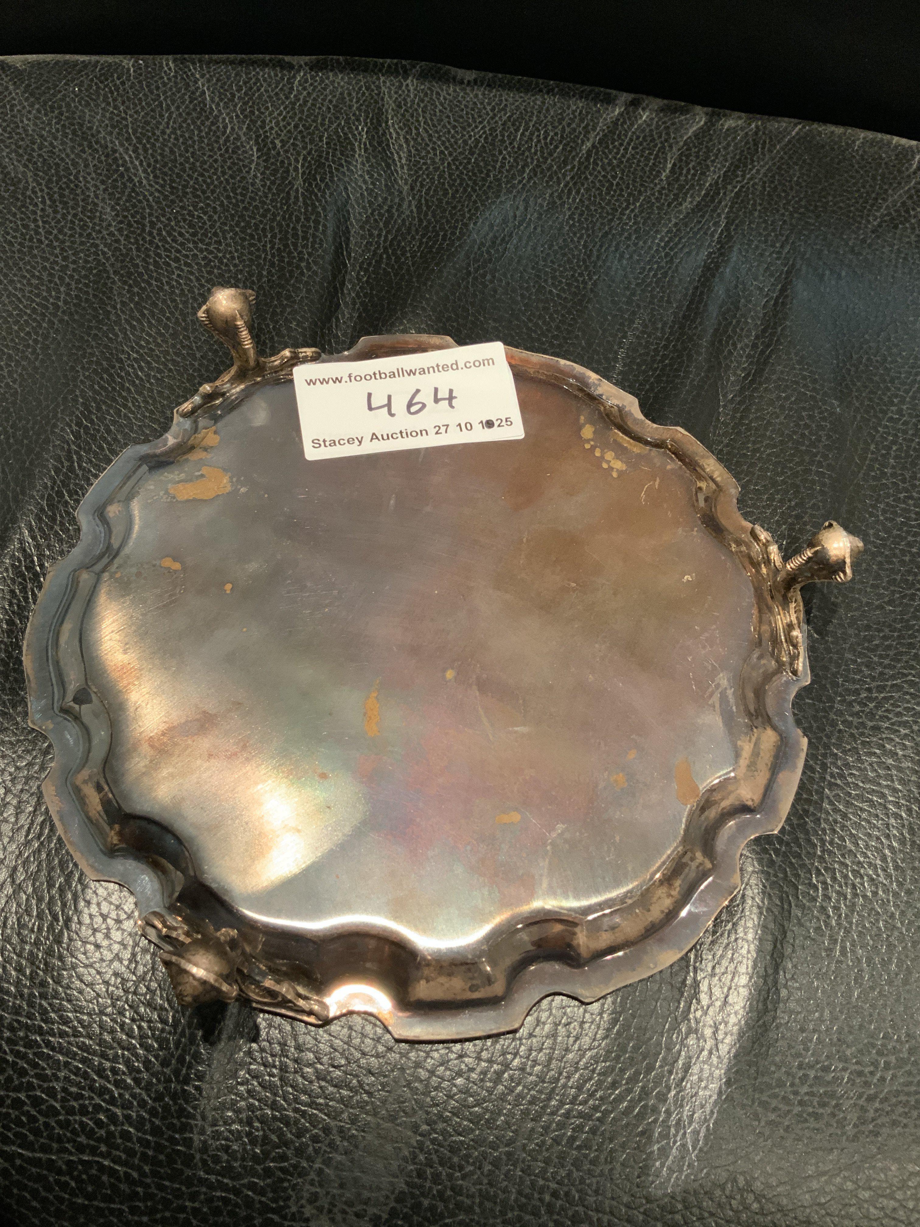 Tottenham 1989 Football Gift: Footed salver with the words presented by Tottenham Hotspur FC Saint Brieuc France April 1989. Been used as a tea pot stand and showing discolouration. Youth tournament near Brittany.