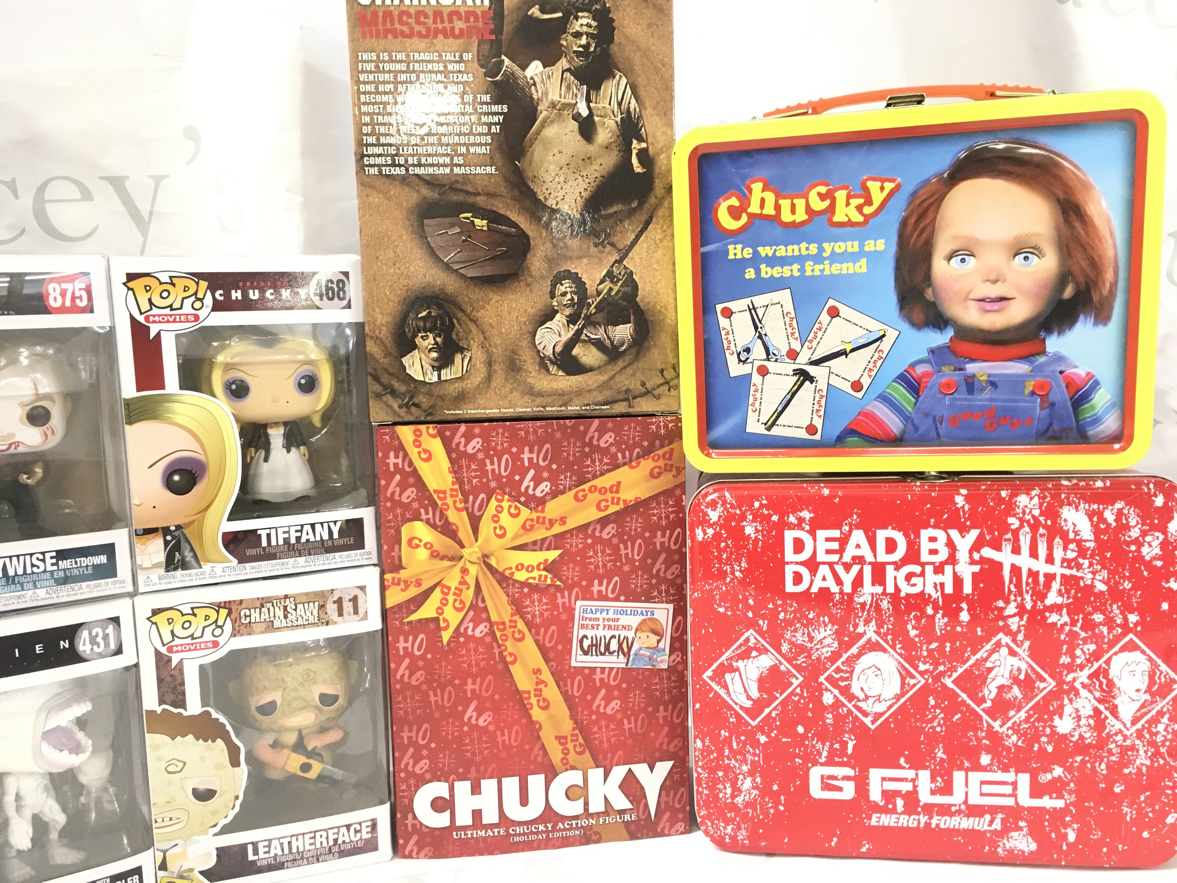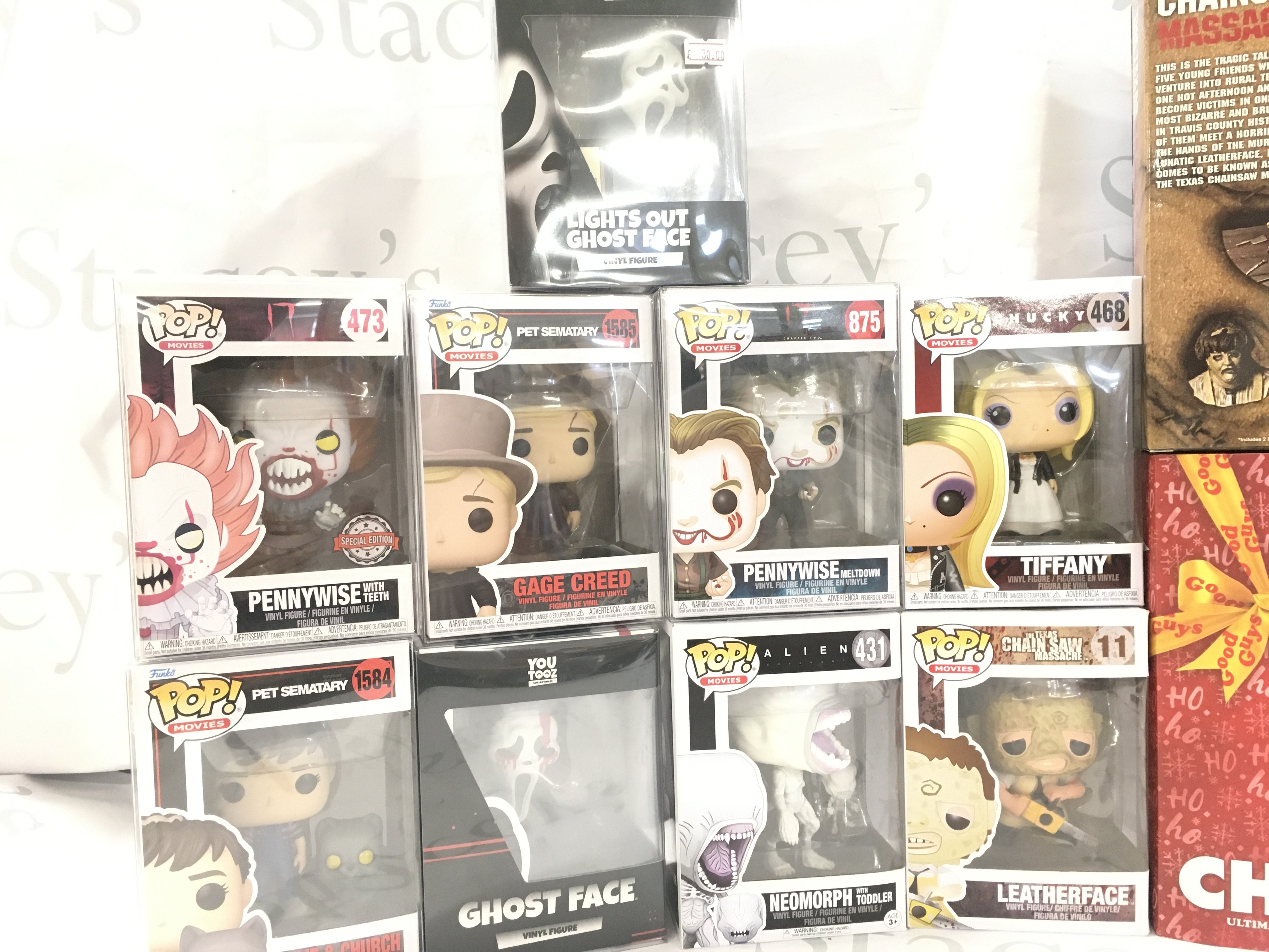 A Collection of Horror movie Funko Pop Figures. Soft Toys And Others.