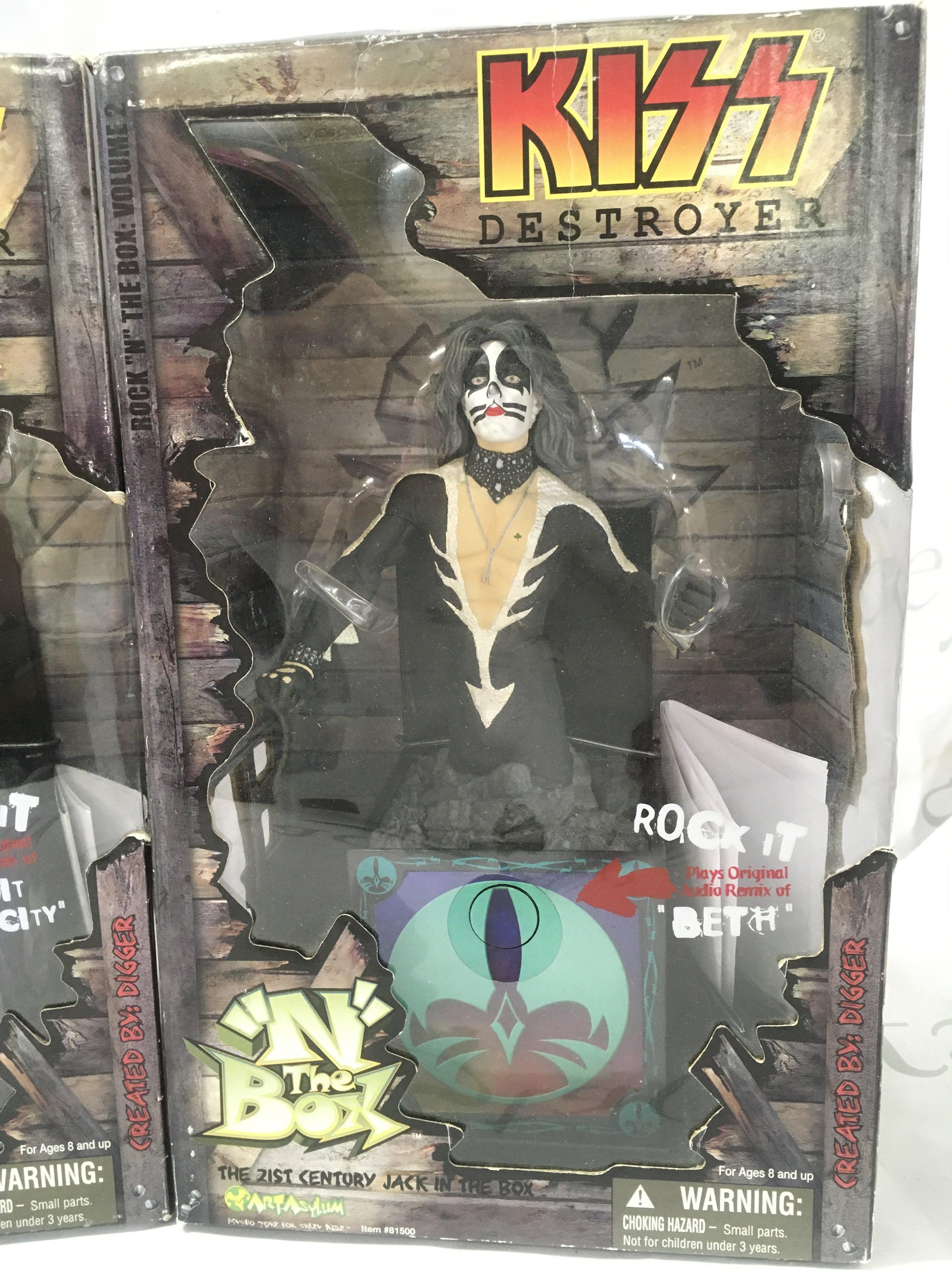 3 X Boxed Art Asylum Kiss Destroyer Jack In The Box Figures.(3).