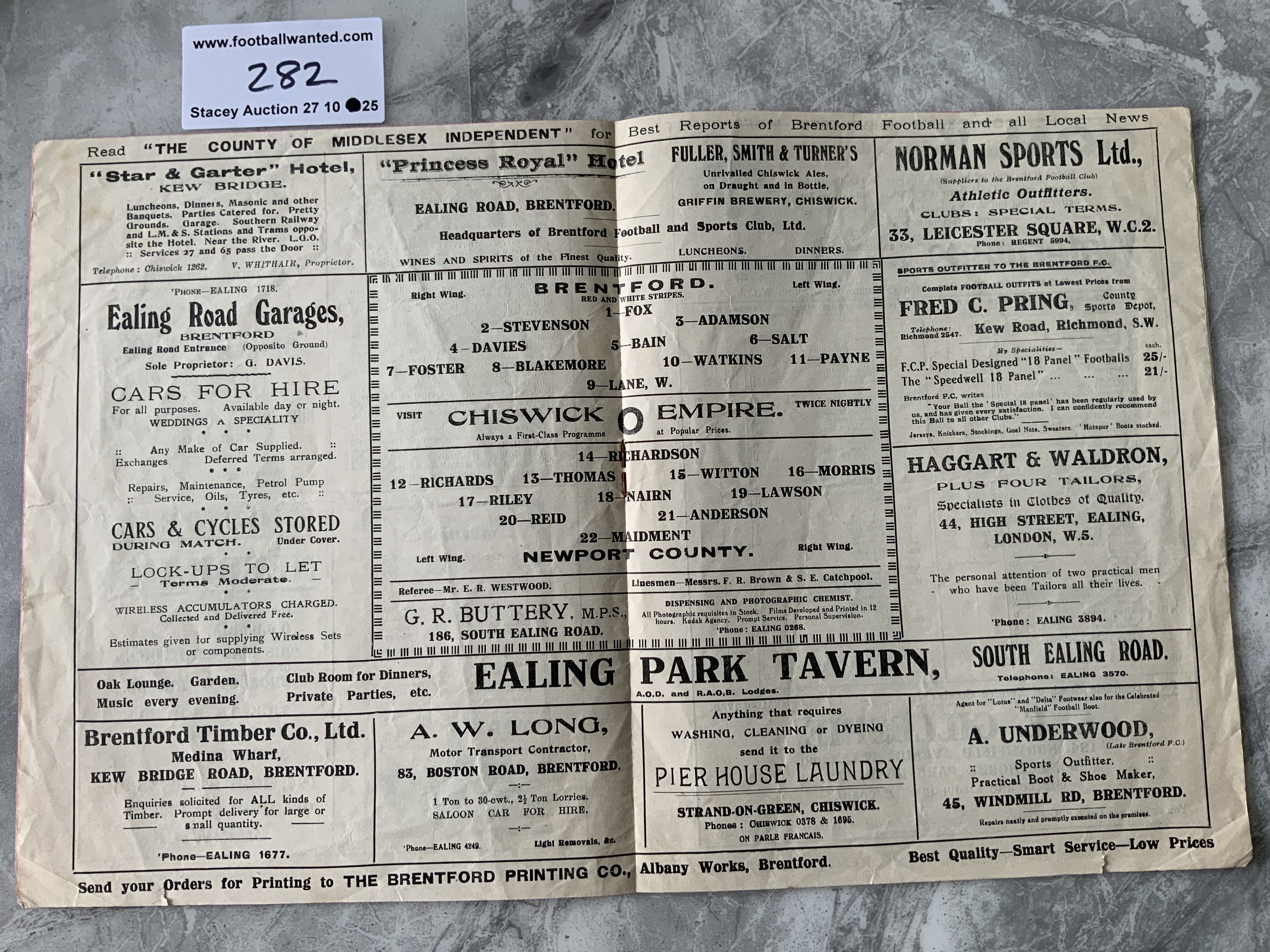29/30 Brentford v Newport County Football Programme: Good condition division three programme with no team changes.
