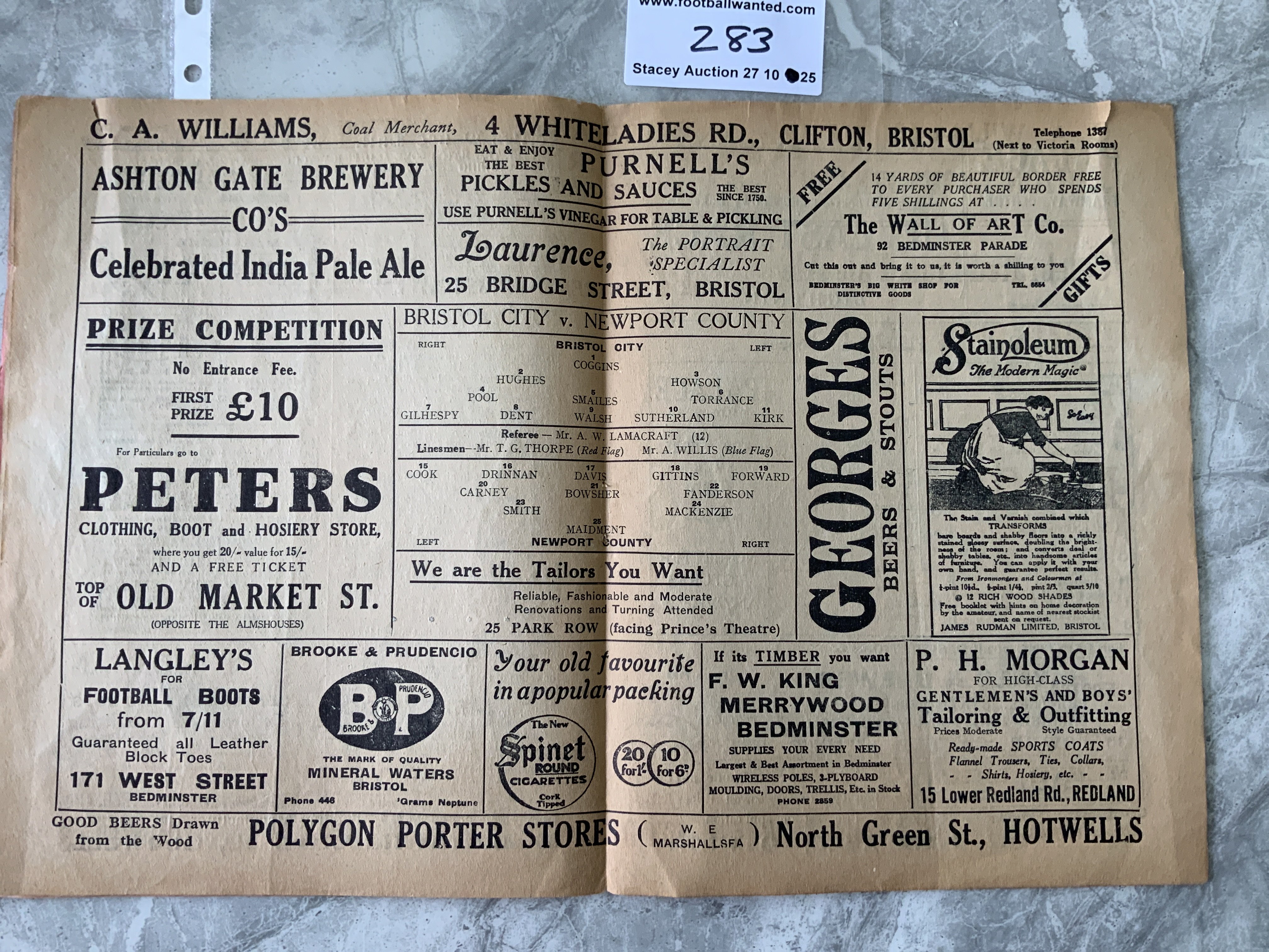 1925 - 1926 Bristol City v Newport County Football Programme: Good condition division three programme with no team changes. Bit of wear to spine.