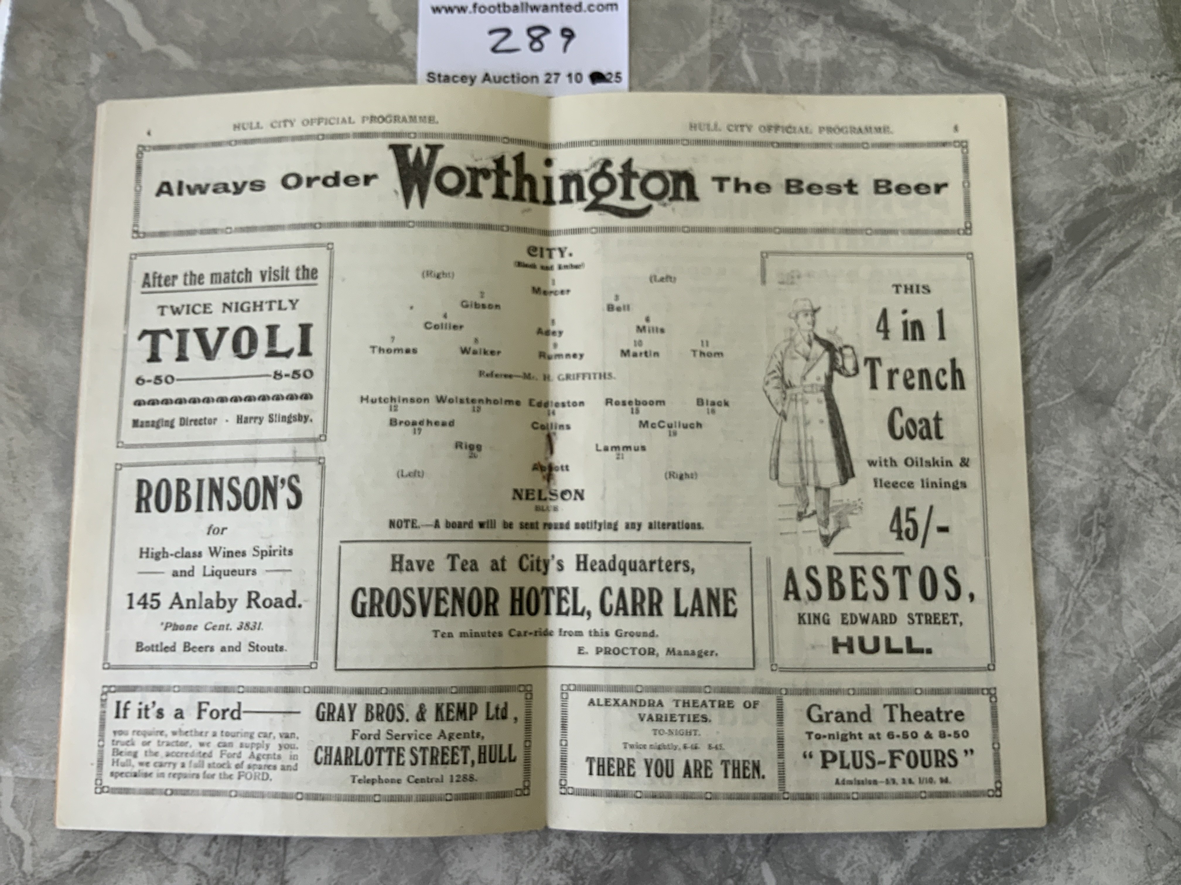 1923 - 1924 Hull City v Nelson Football Programme: Excellent condition division two programme with no team changes. Spine professionally repaired.