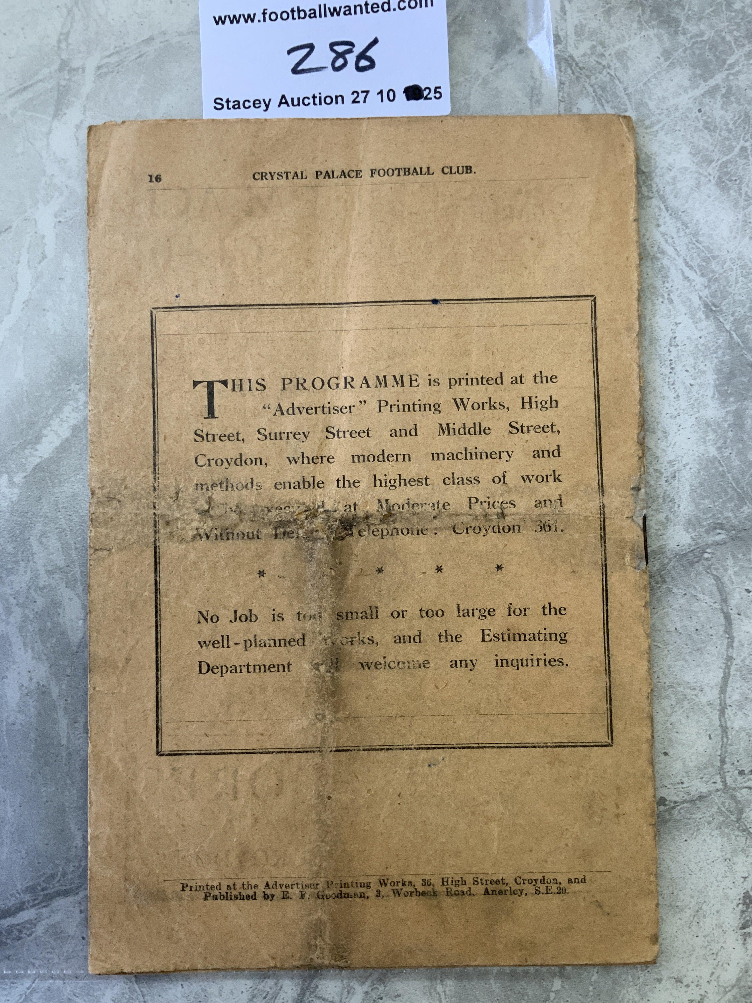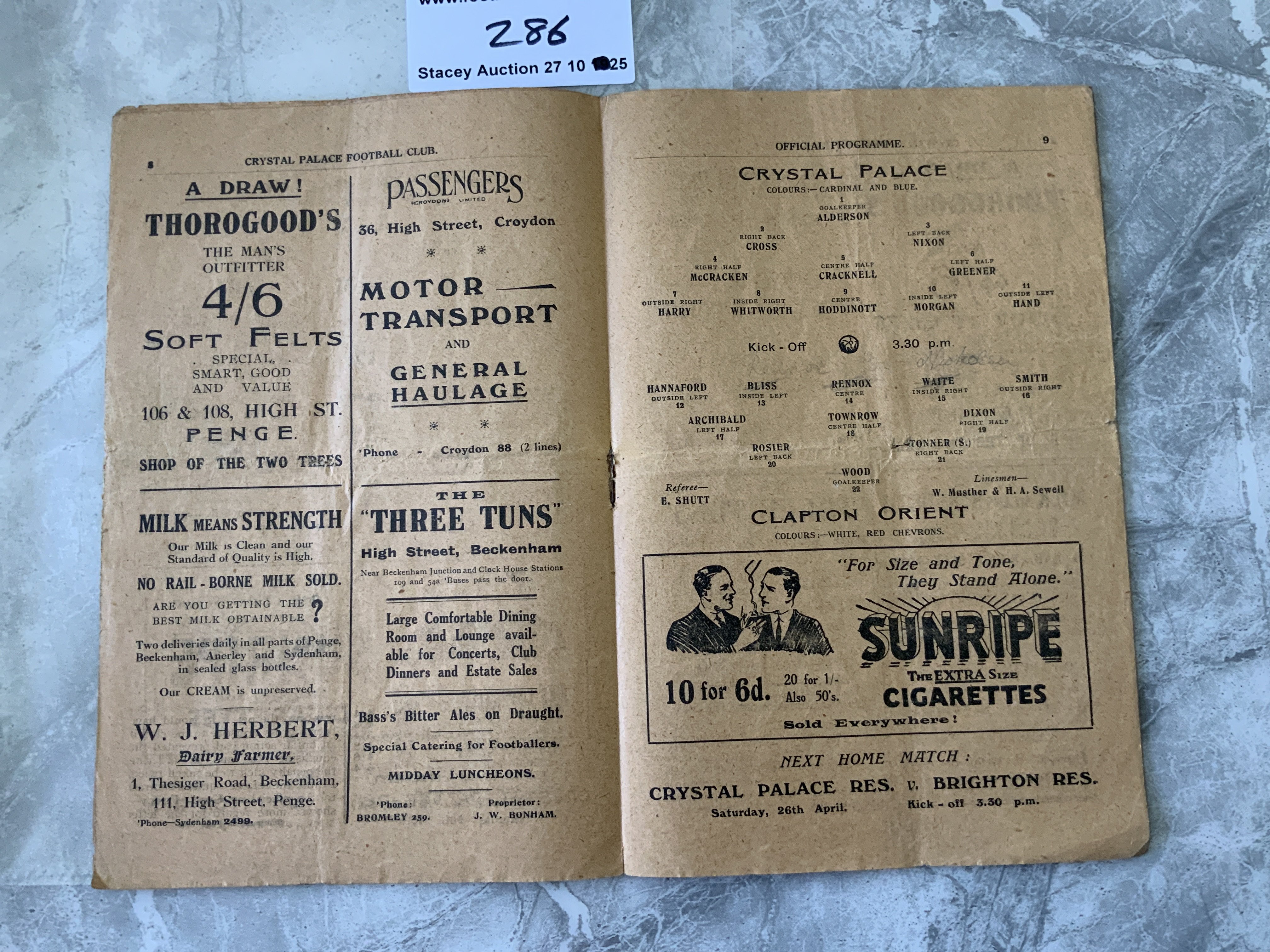 1923 - 1924 Crystal Palace v Orient Football Programme: Good condition division two programme with no team changes. Folding which is more evident to rear.