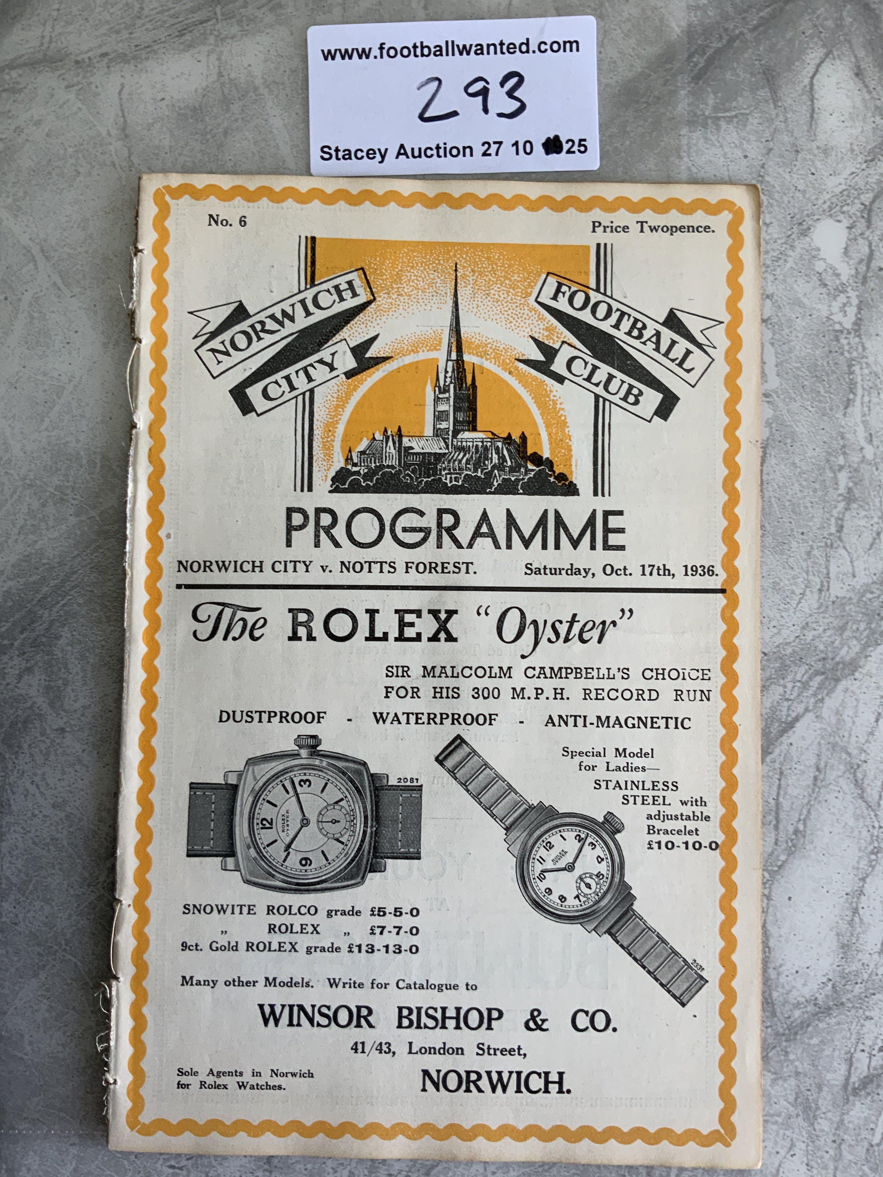 36/37 Norwich City v Nottingham Forest Football Programme: Excellent condition ex bound with covers division two programme with no team changes.
