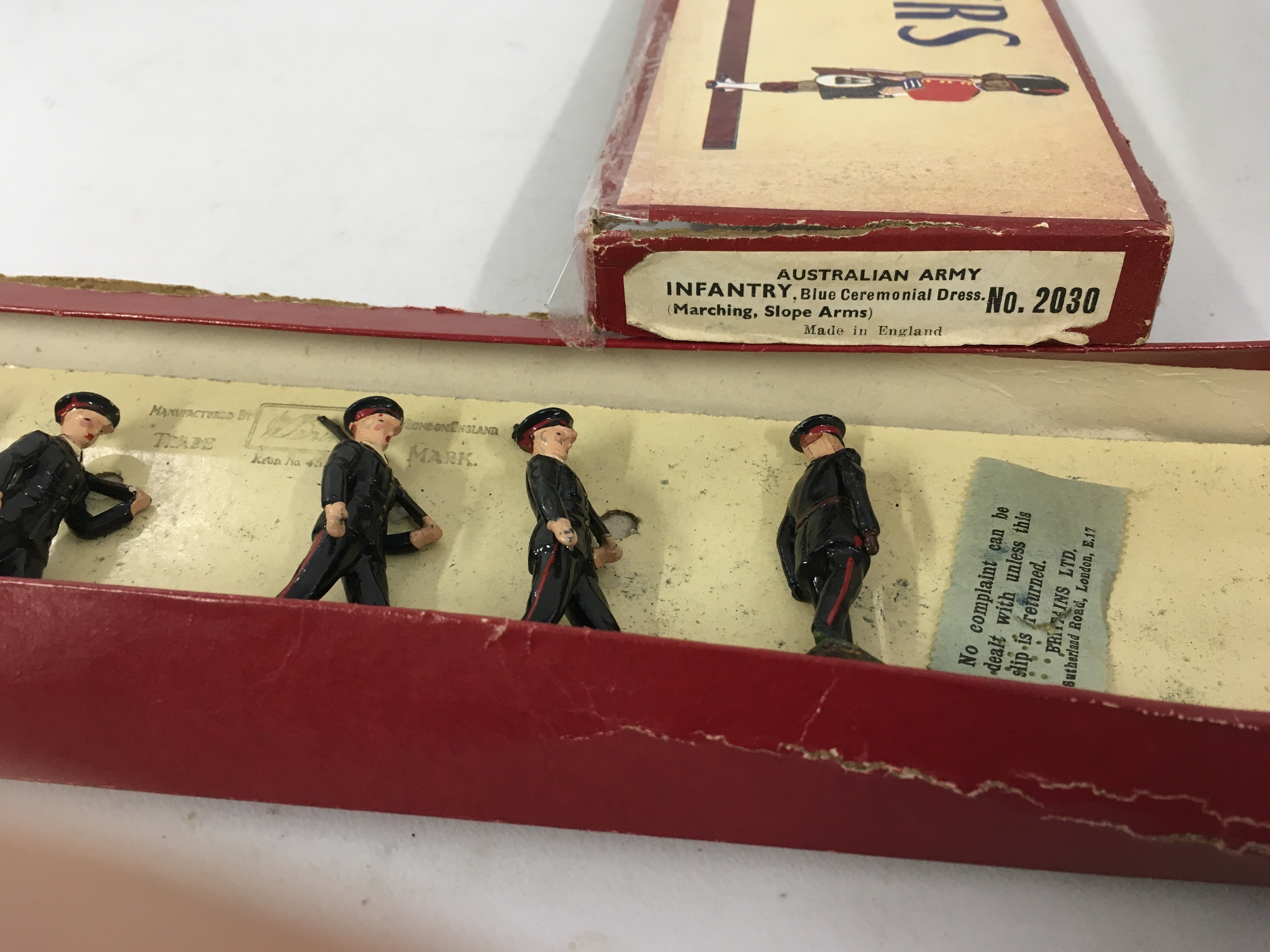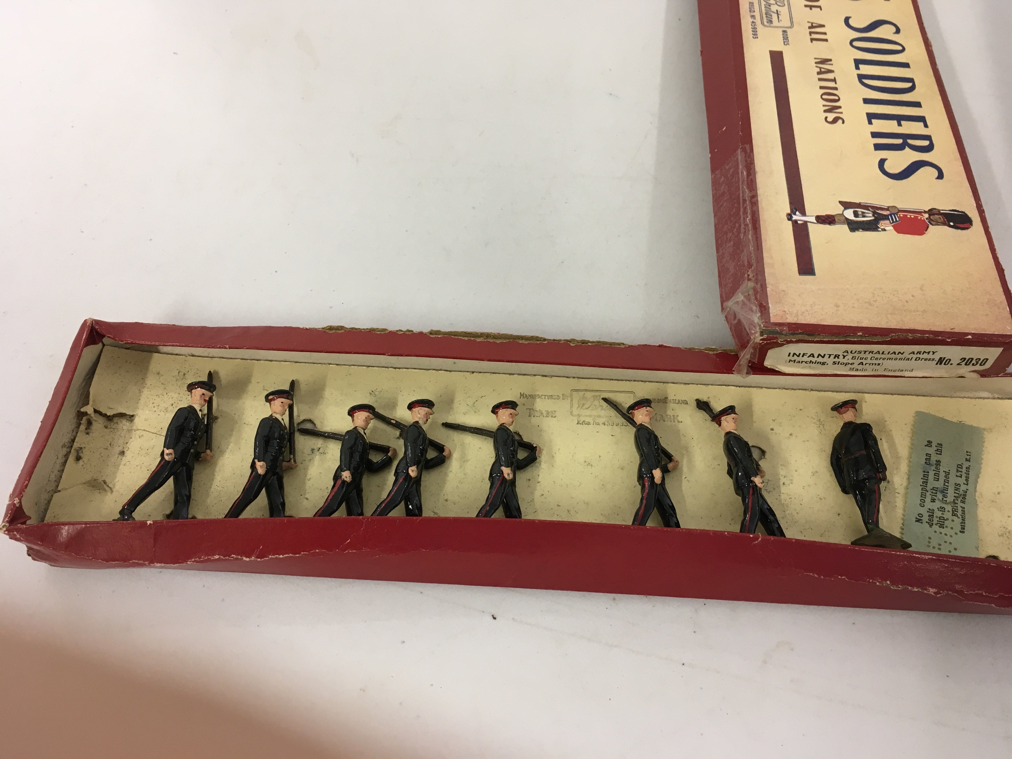 A boxed WBritain collection of metal minature soldiers from the Regiments of all Nations series. Features Australian Army Infantry no.2030
