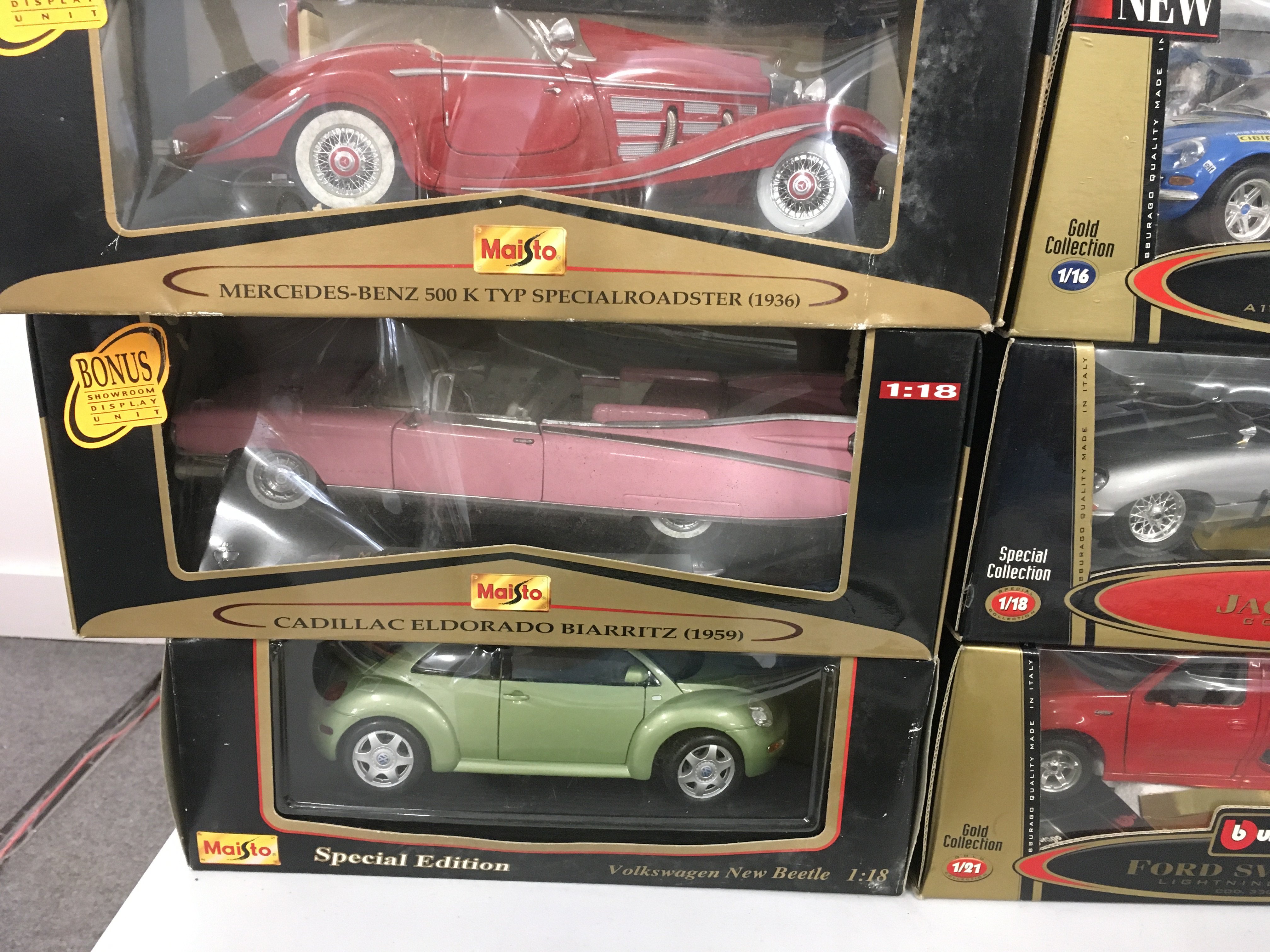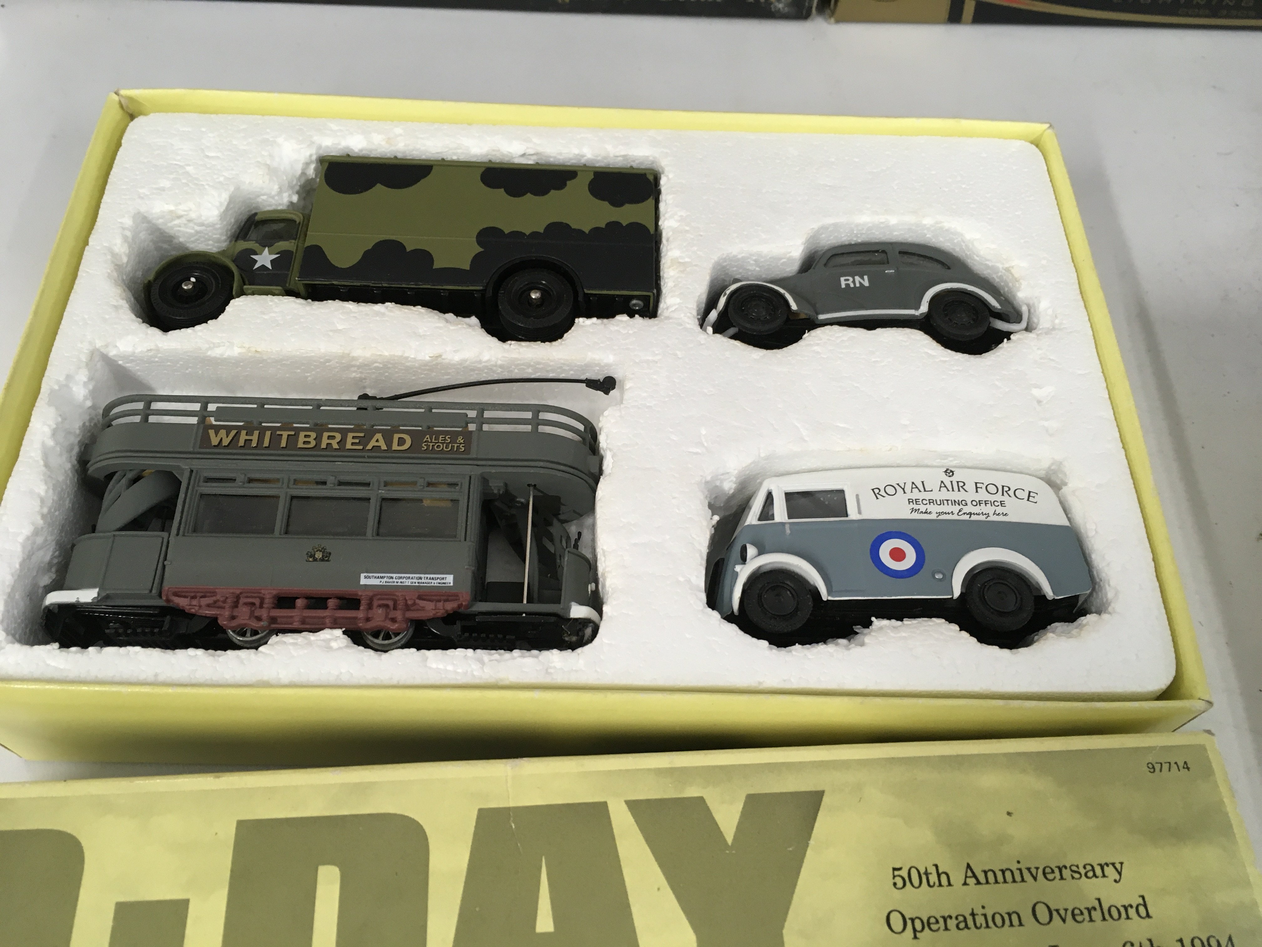 A collection containing burago and Maisto 1..18 scale model cars. Also Corgi D Day set . Includes Model Avro Lancaster. No reserve.