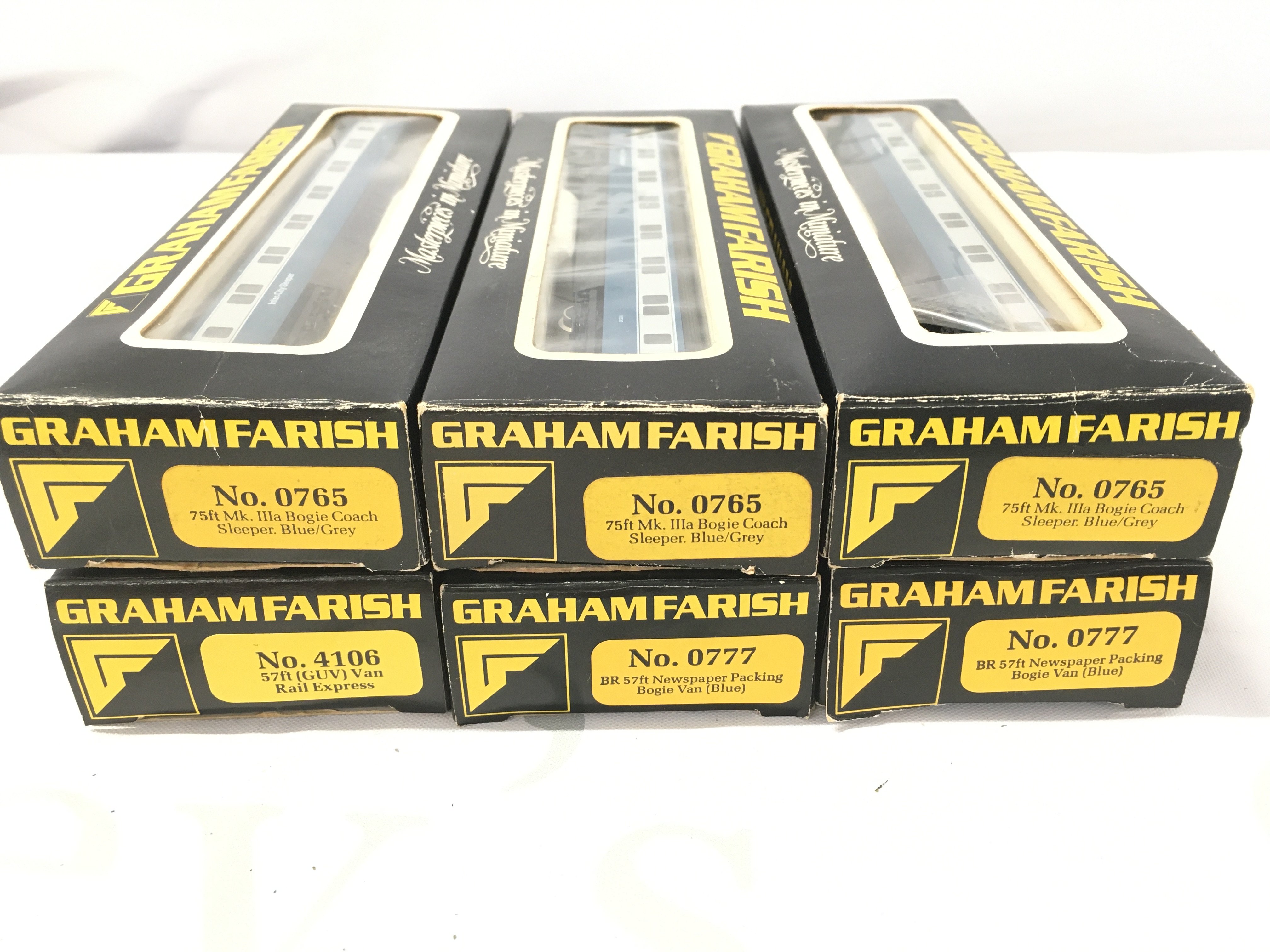 6 Boxed Graham Farish N Gauge Coaches. Mark 3 Sleepers and Newspaper packing. No Reserve.
