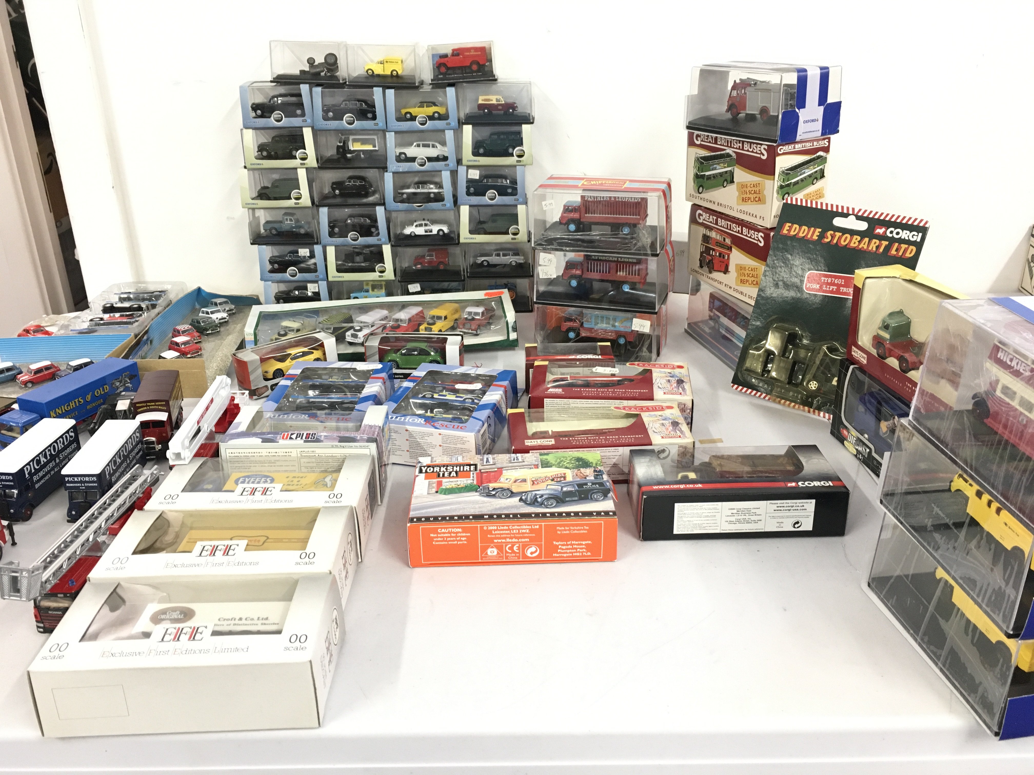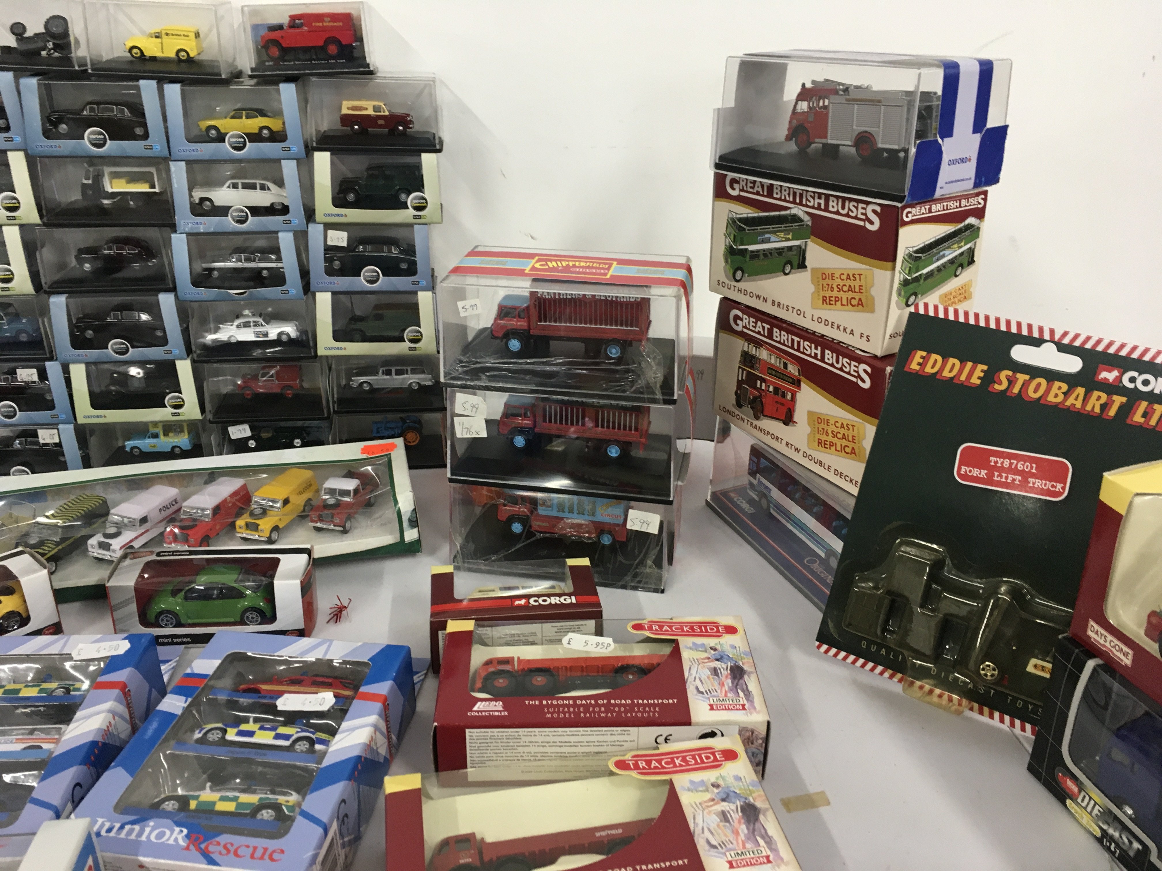 An assorted collection in excess of 60 of diecast model vehicles by Corgi..Oxford..Lledo etc. 00 and N scale. No reserve