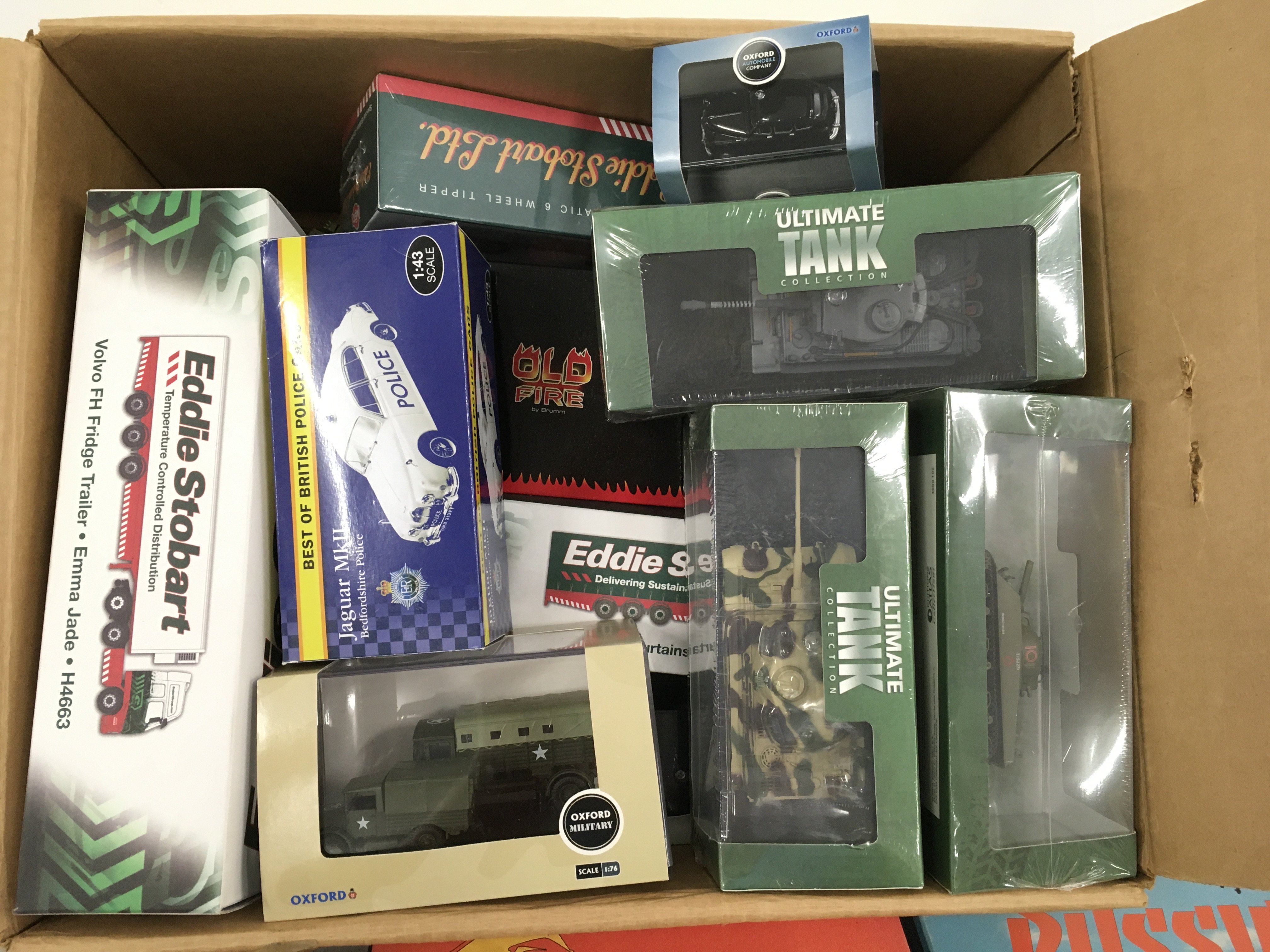 A collection of boxed diecast model vehicles by Atlas..Oxford etc which includes some military includes several loose Playworn vehicles. Also 3 boxed war games. No reserve