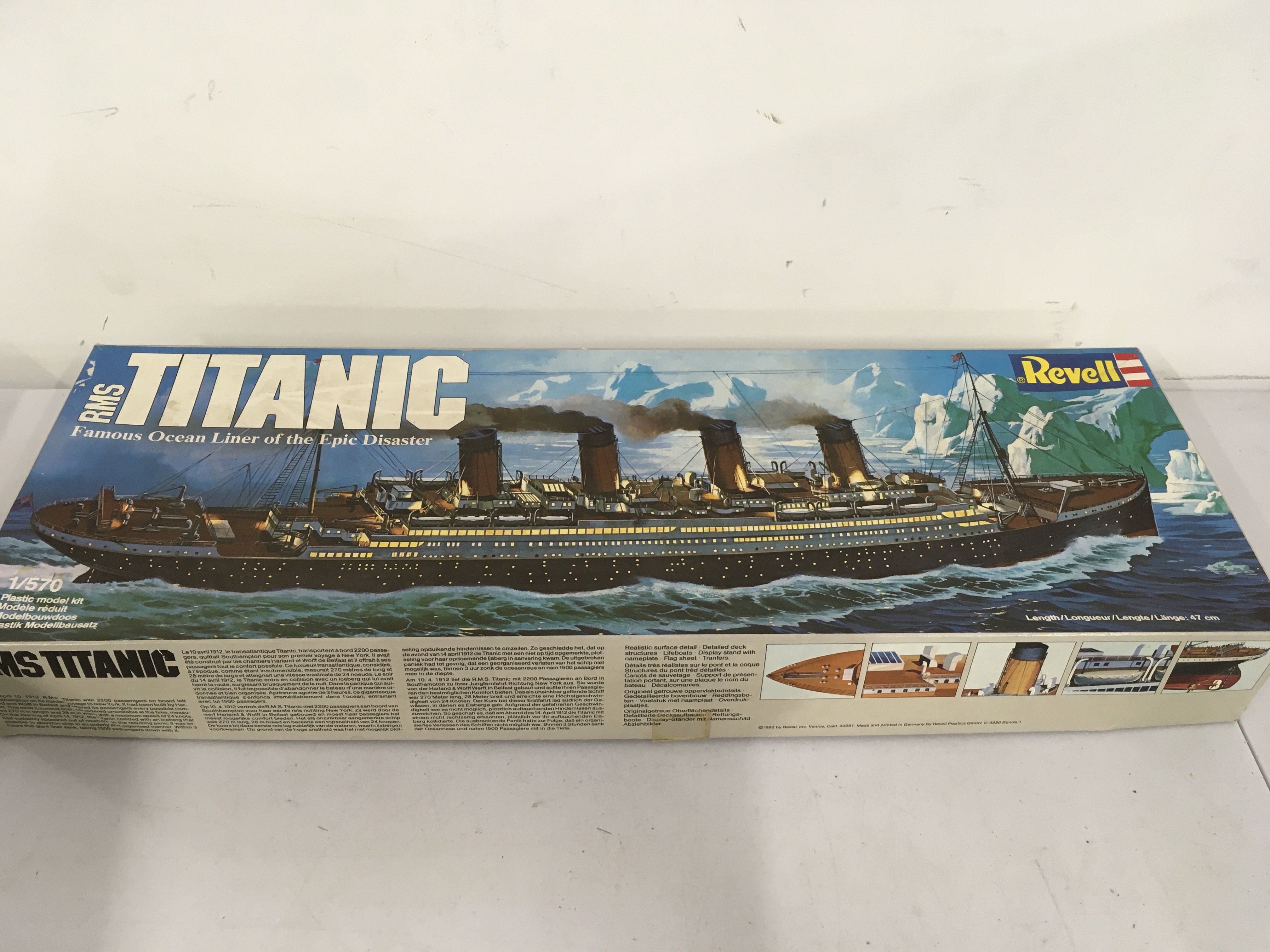 A collection of 6 unstarted model kits by Airfix..Revell and Matchbox featuring military aircraft and RMS Titanic various scales 1:32. 1:48. 1:72 etc. no reserve
