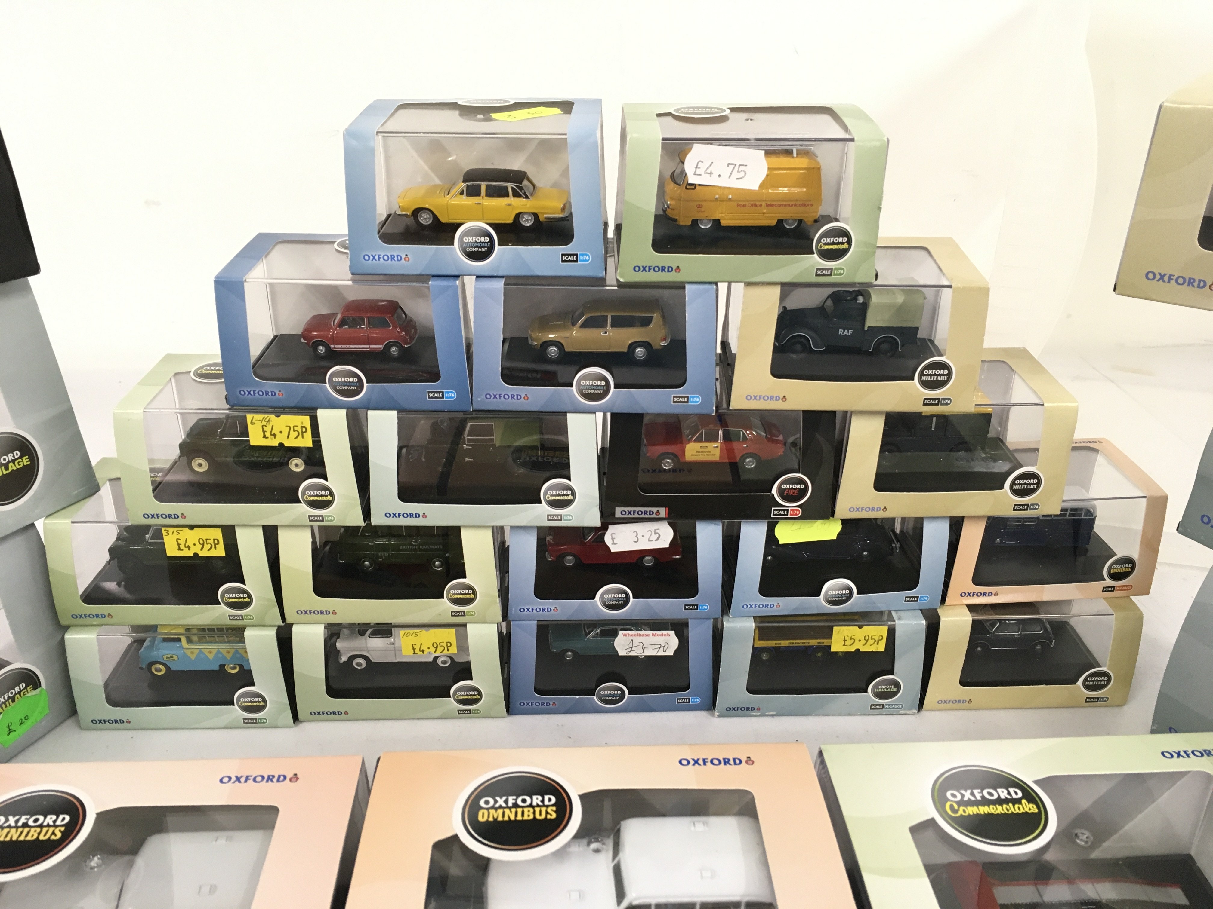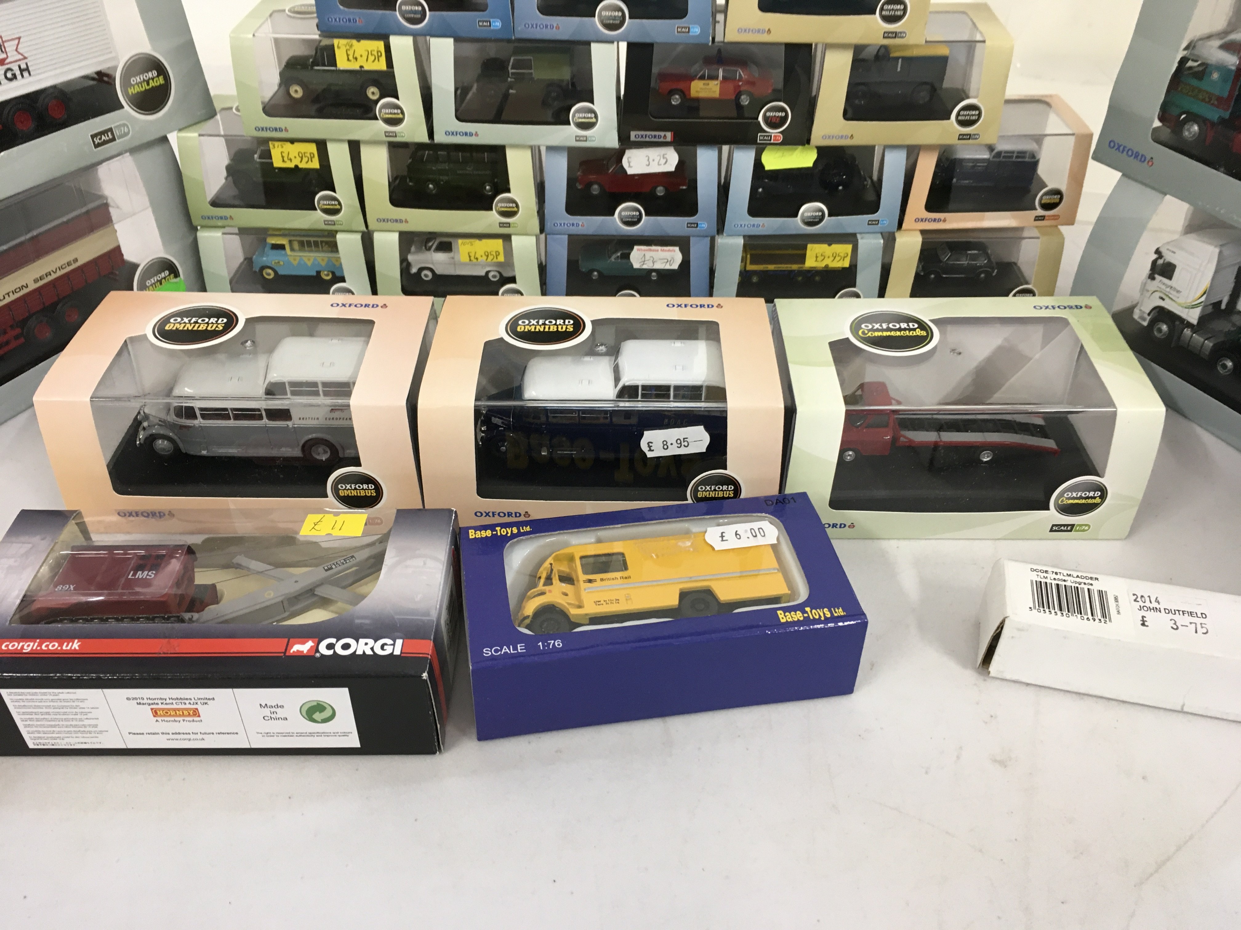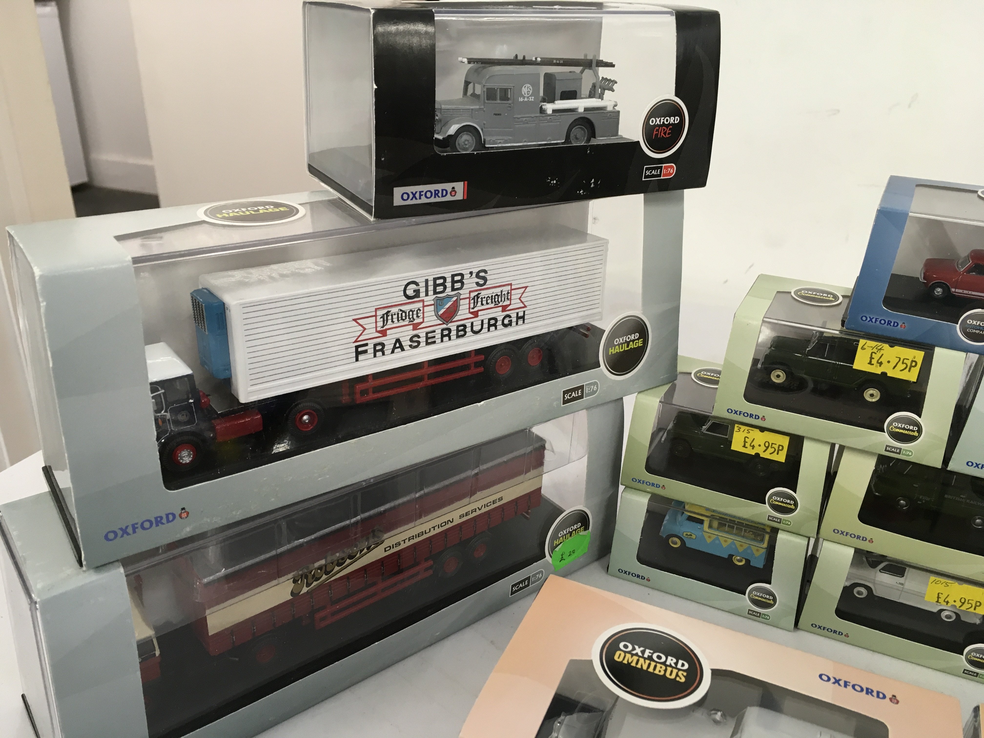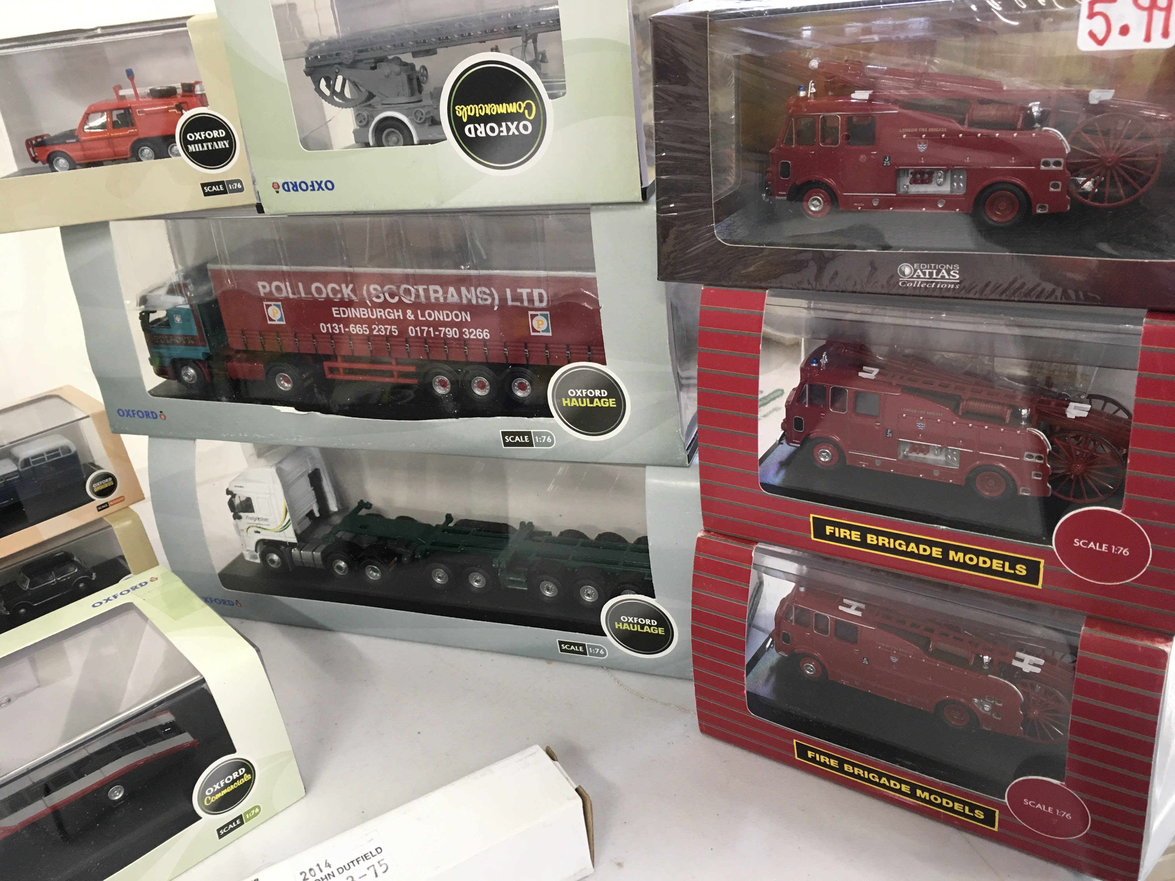 A collection of Oxford diecast model vehicles in display boxes featuring fire engines..buses..cars etc. no reserve