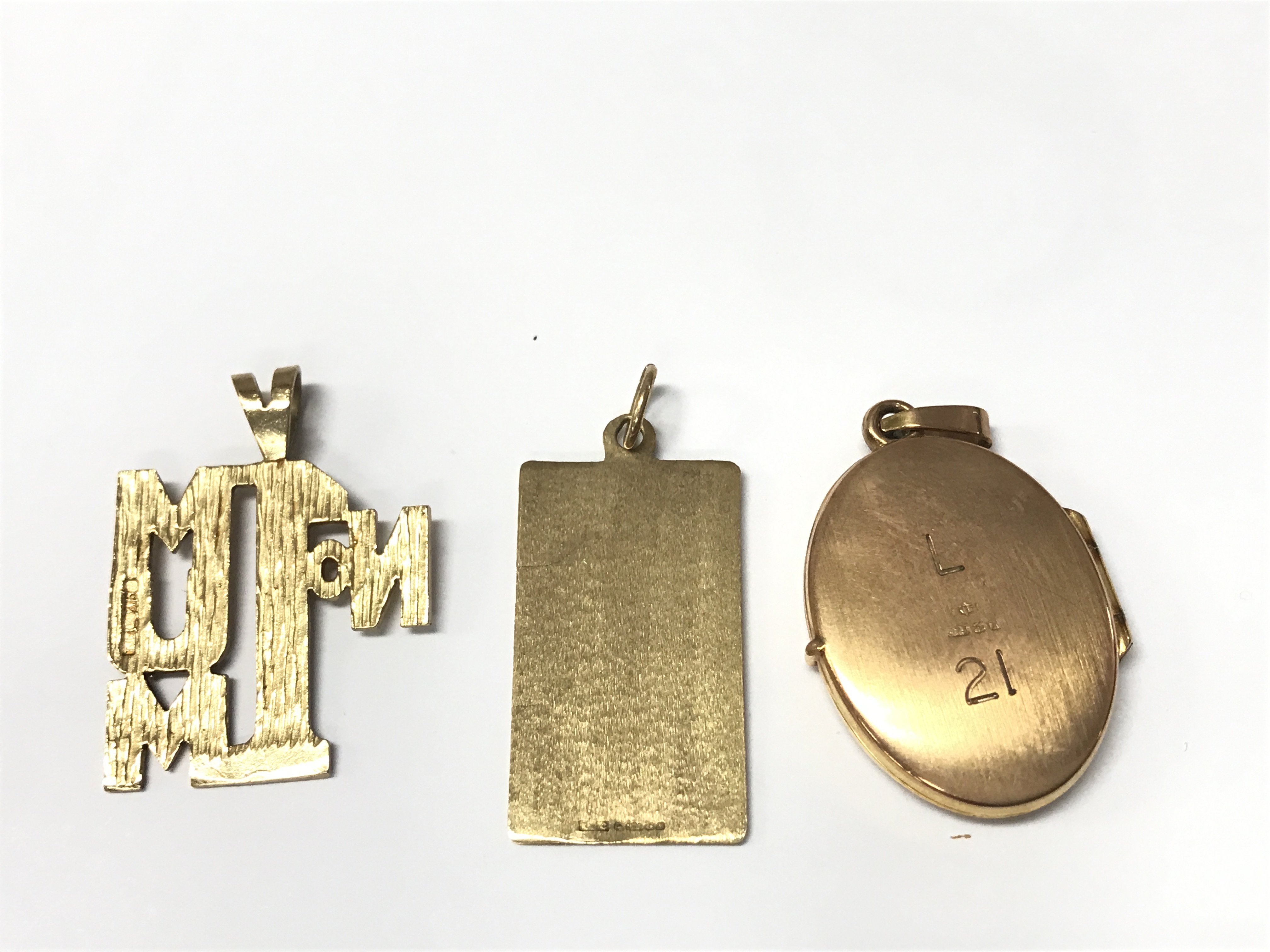 Two 9ct gold pendants and a 9ct gold locket. 6.39g