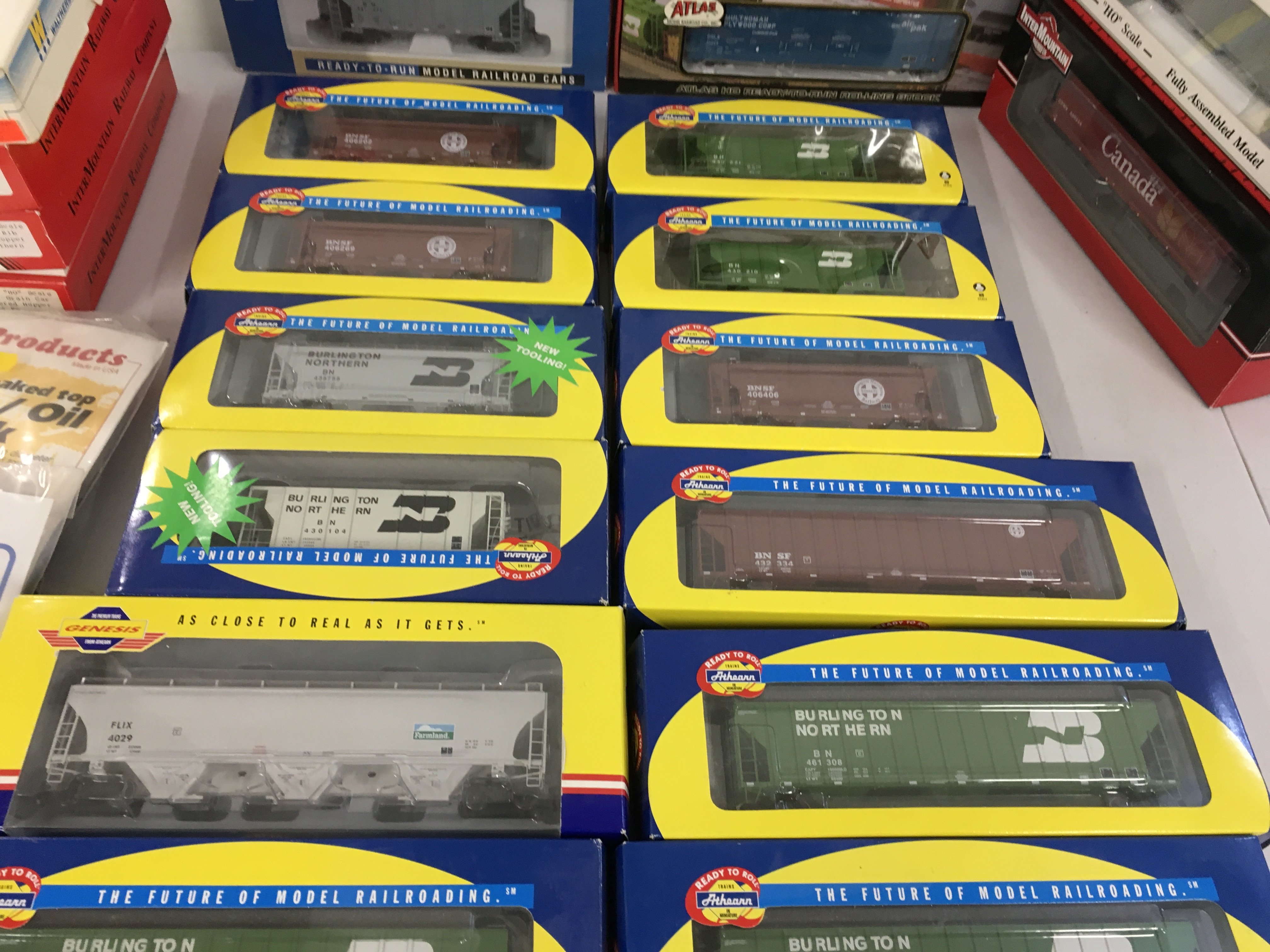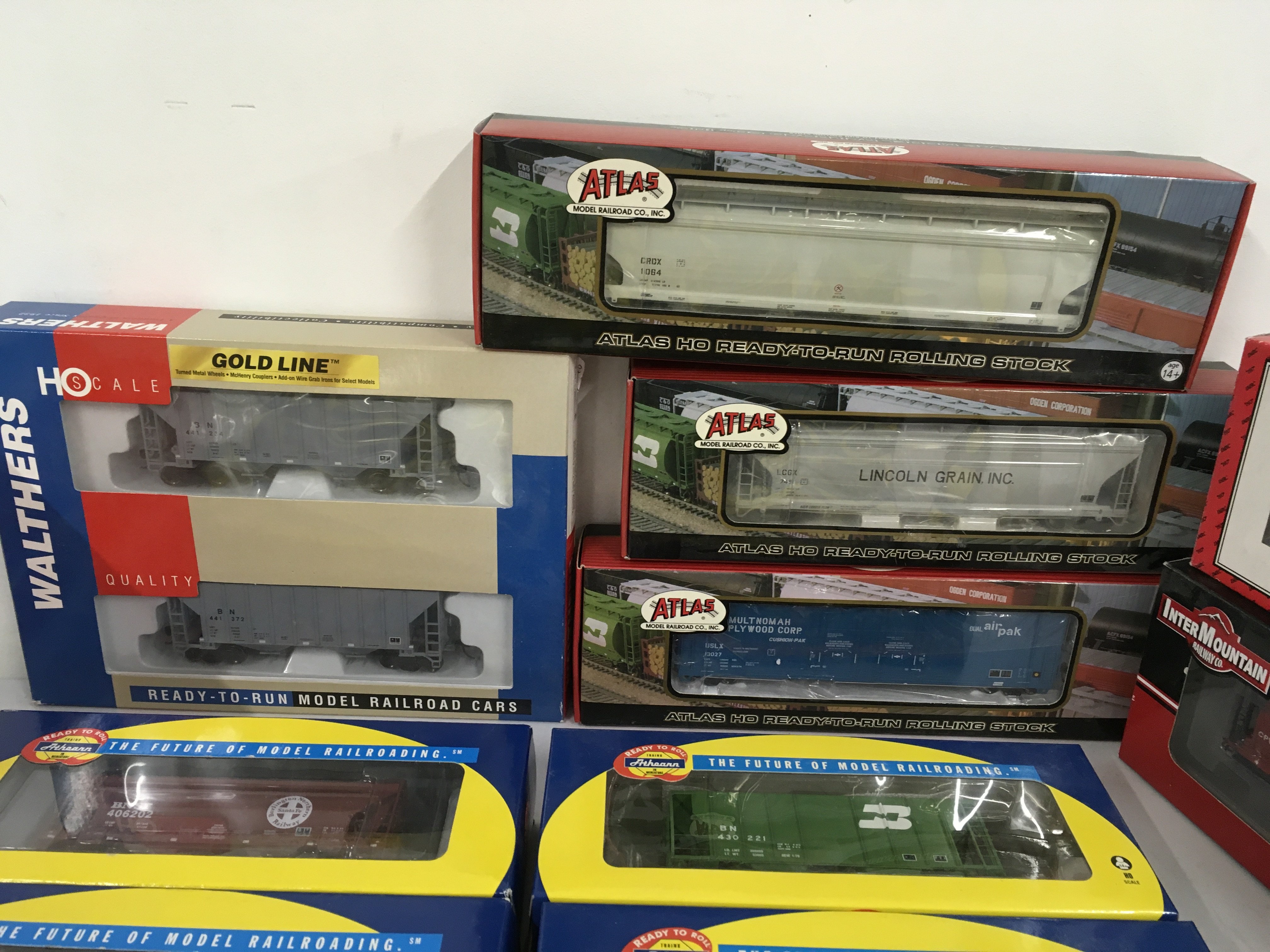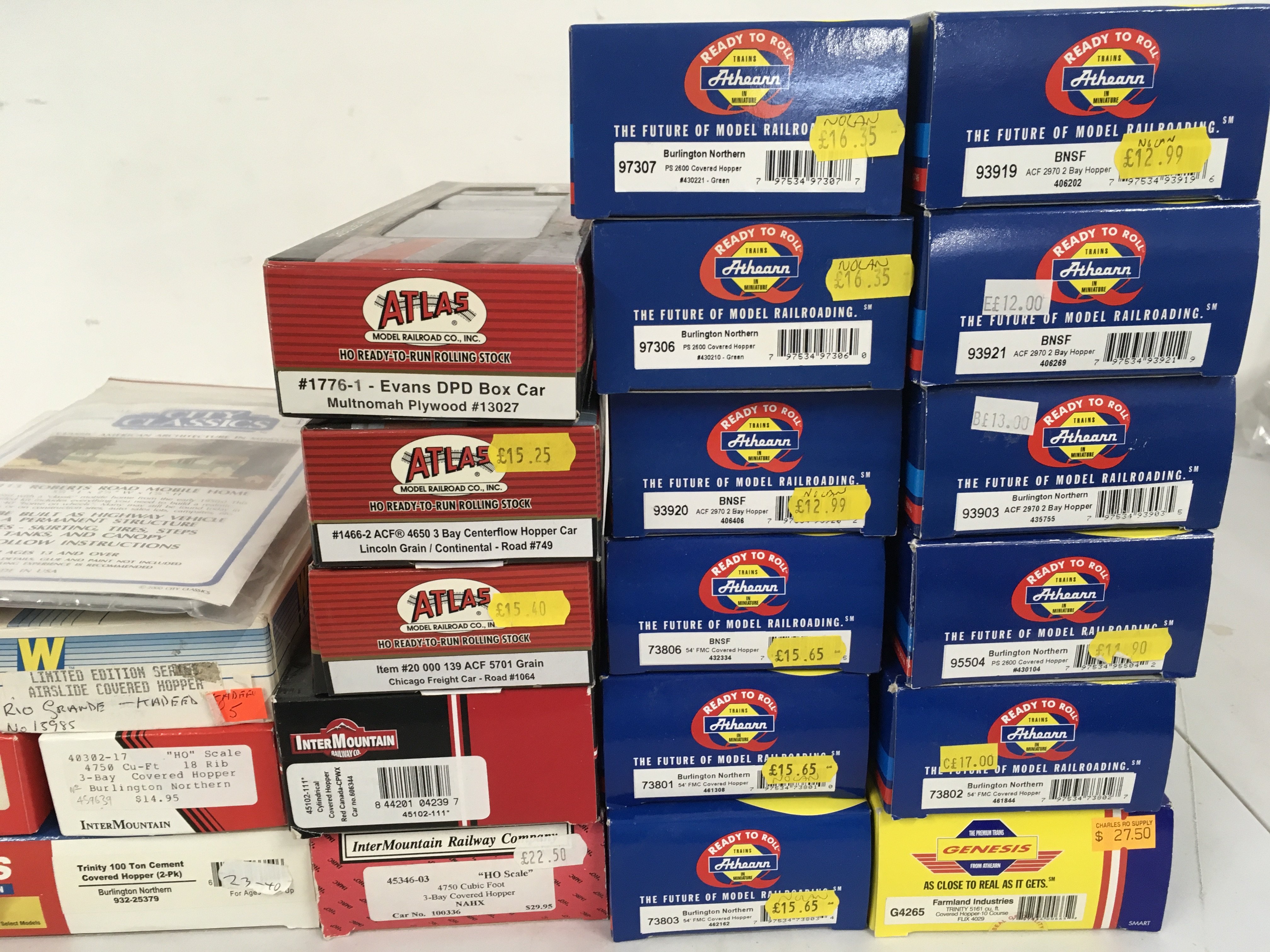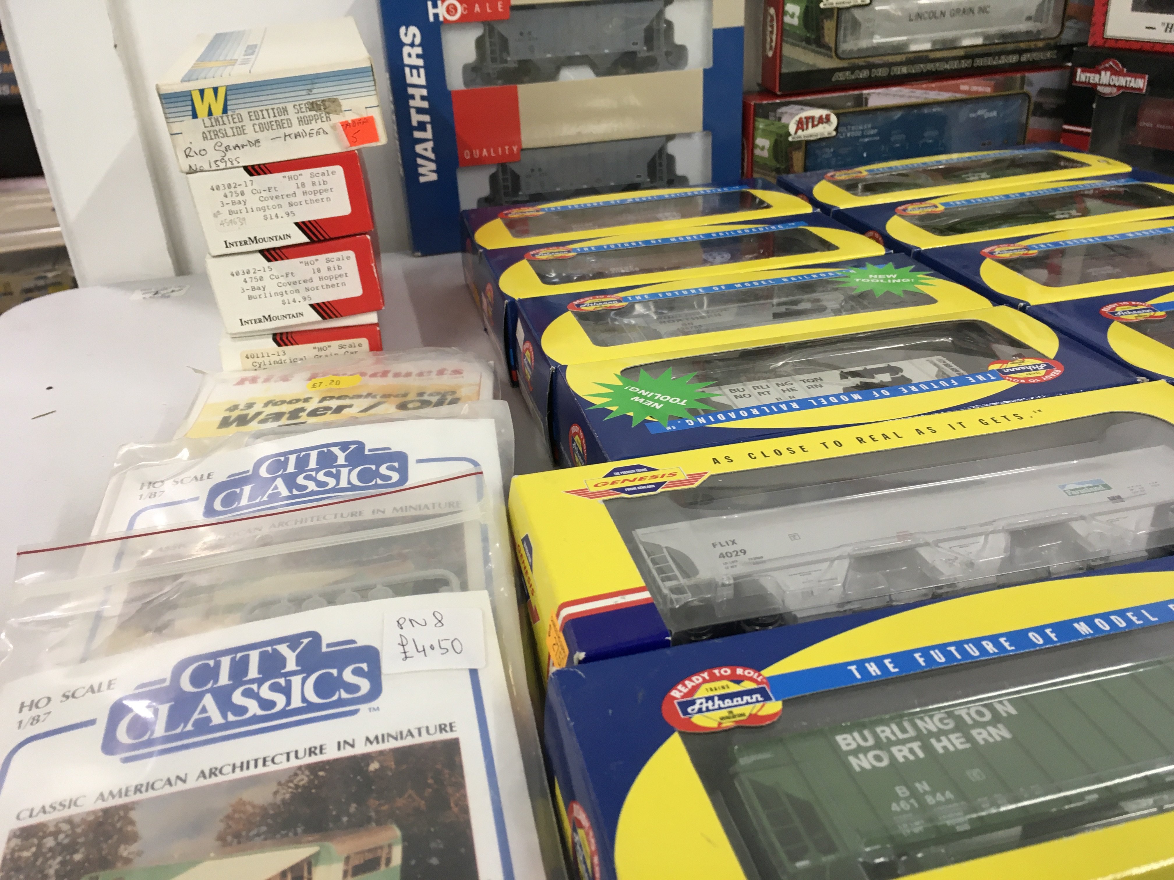 A collection of boxed HO gauge railway model kits . Also includes Ready to run rolling stock by Athearn..Atlas..Walthers..Inter Mountain etc. no reserve