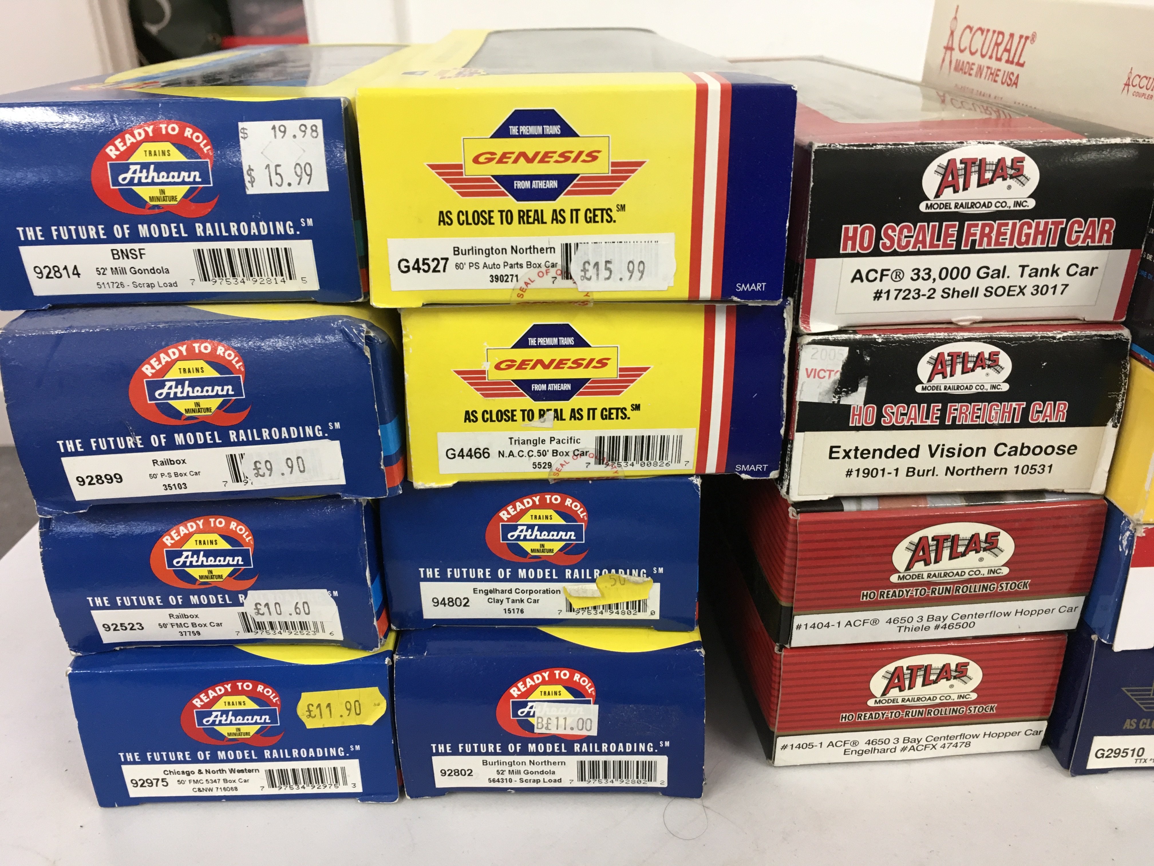 A collection of boxed HO gauge railway rolling stock including kits and ready to roll by Athearn..Atlas etc. no reserve.