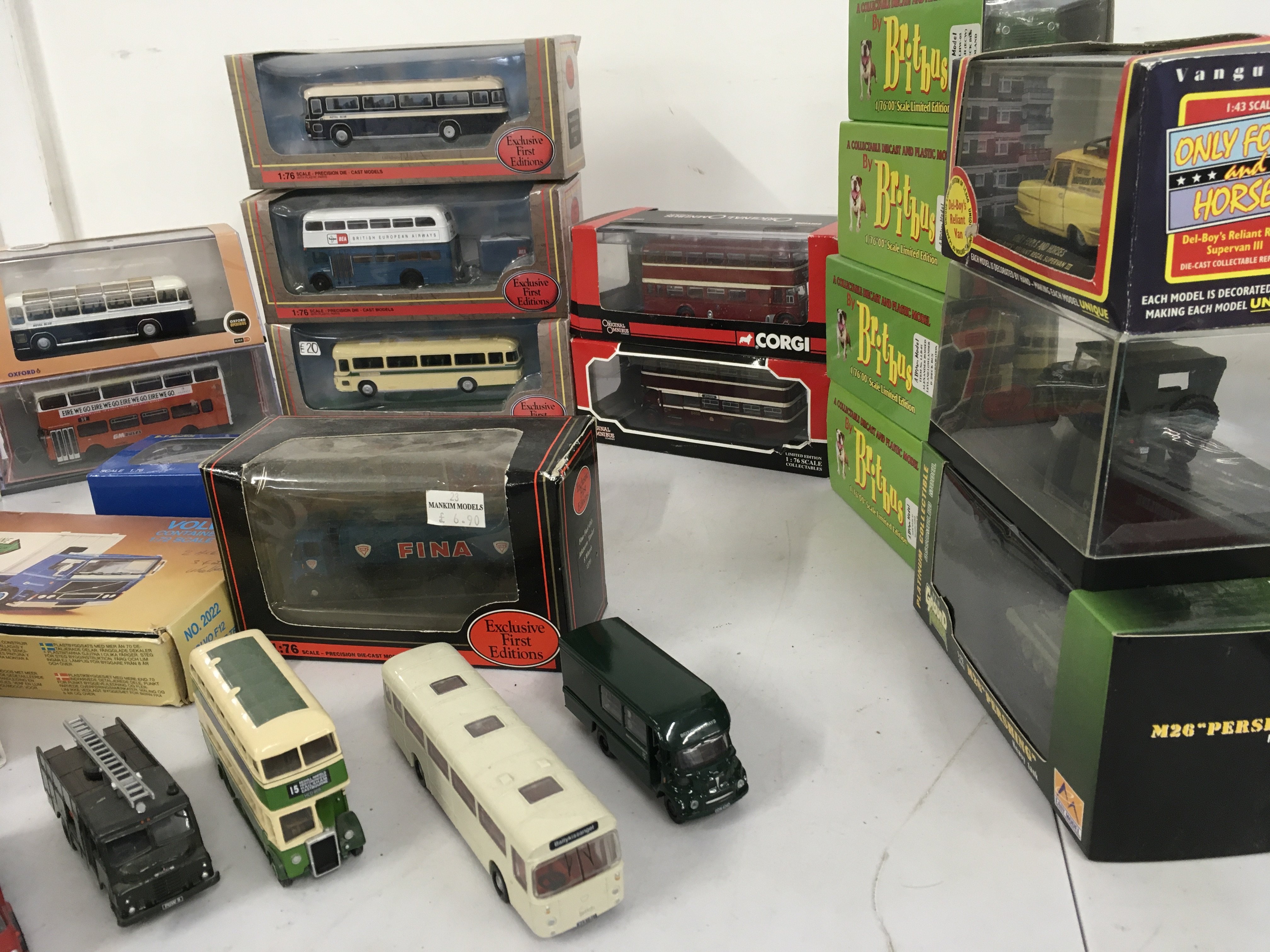 A collection of boxed diecast motor vehicles by Oxford..Corgi..EFE and others. Features buses..fire engines etc. No reserve