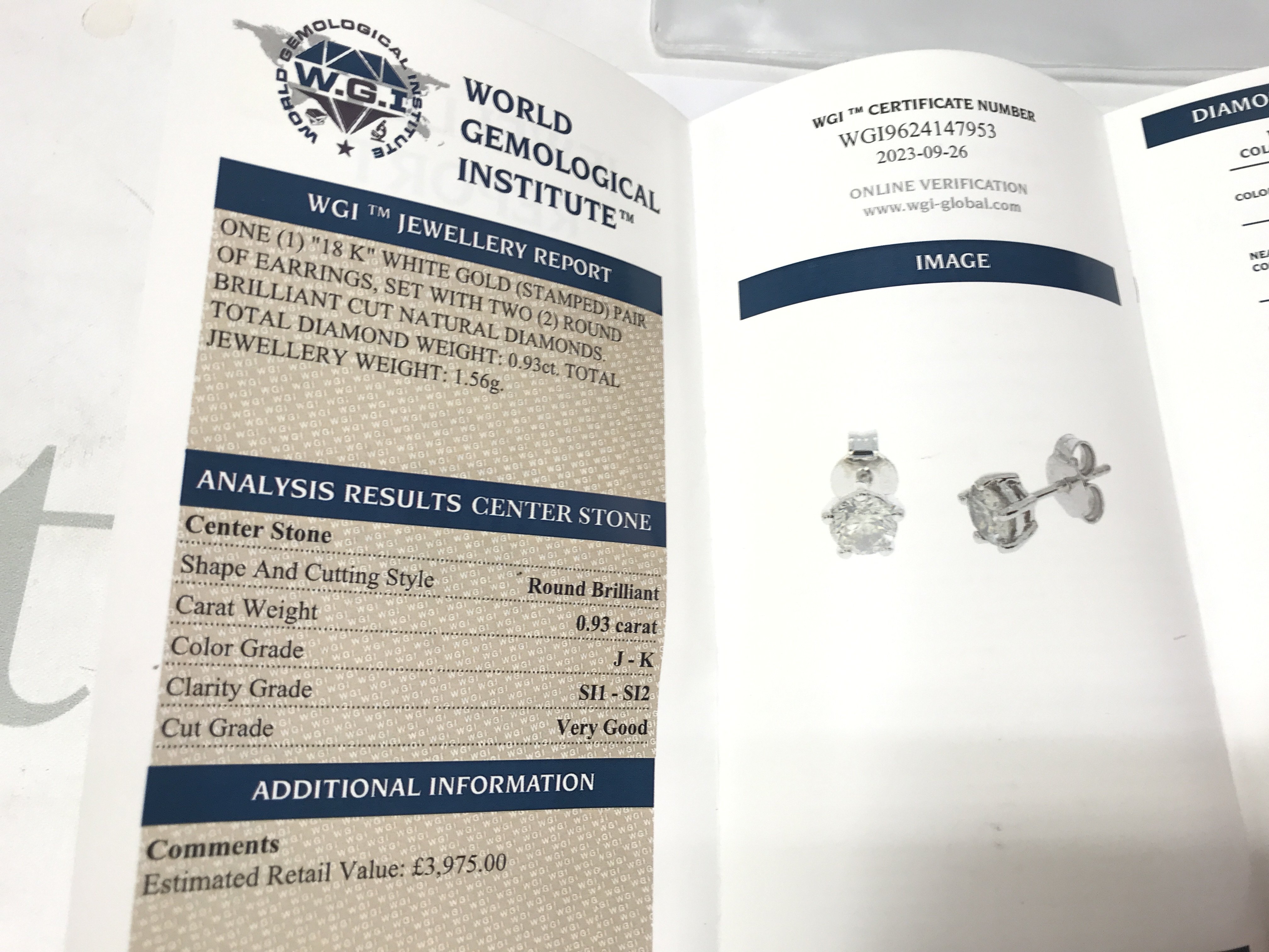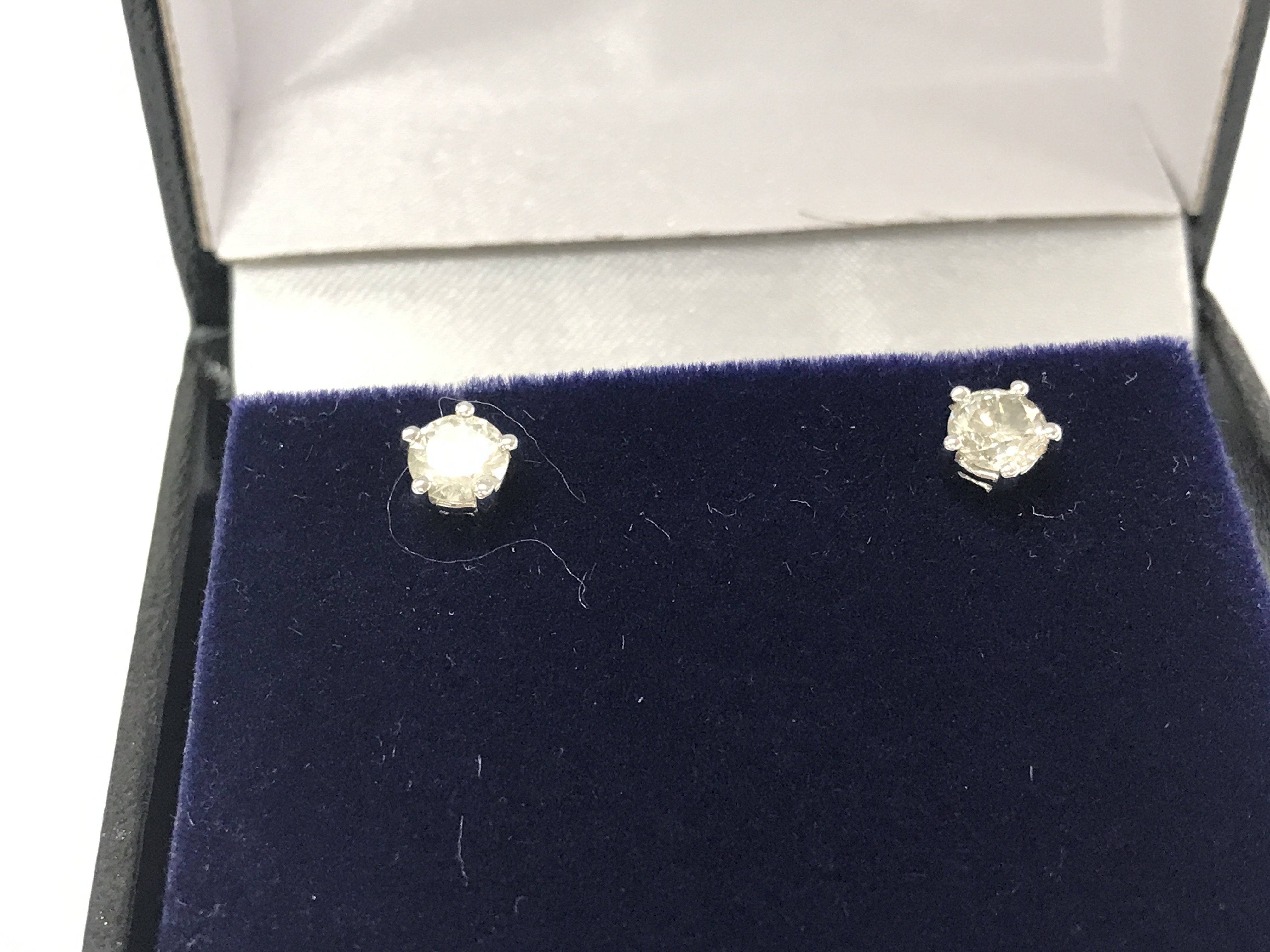 A pair of 18ct white gold 5 claw set diamond solitaire studs. Comes with gemological report. Postage B
