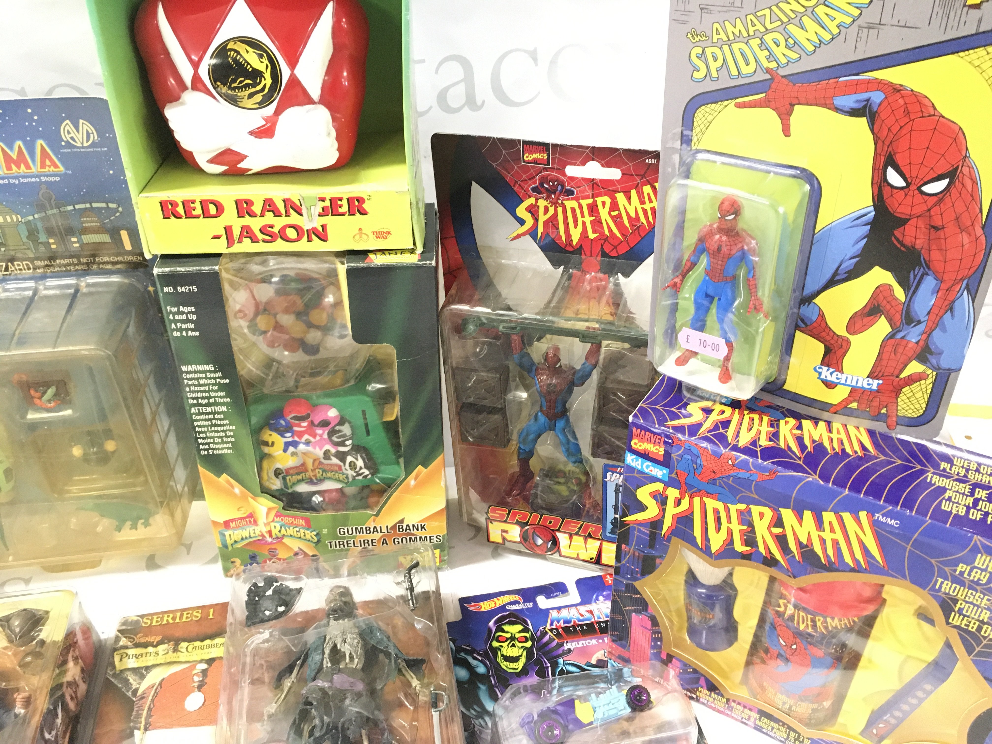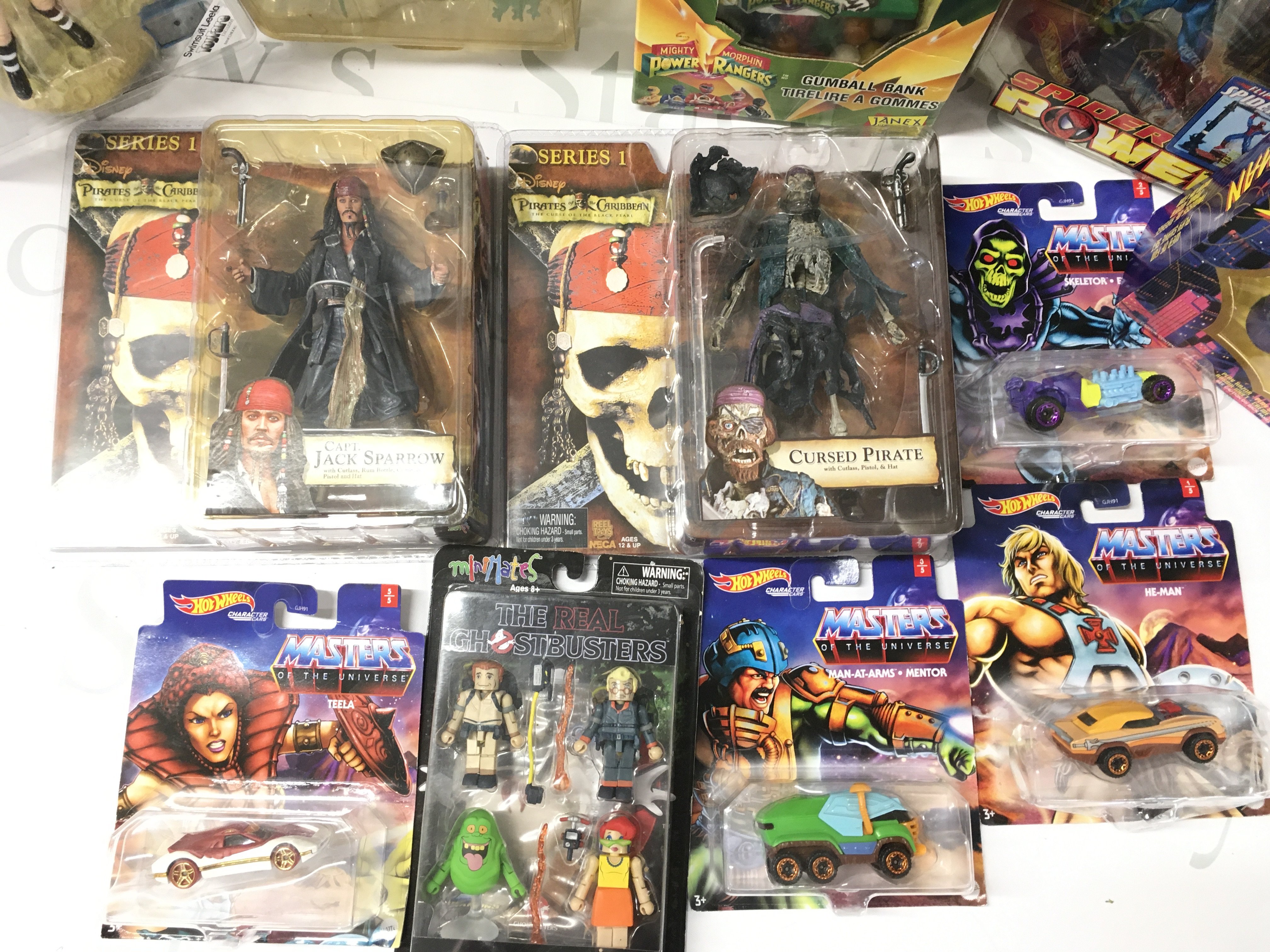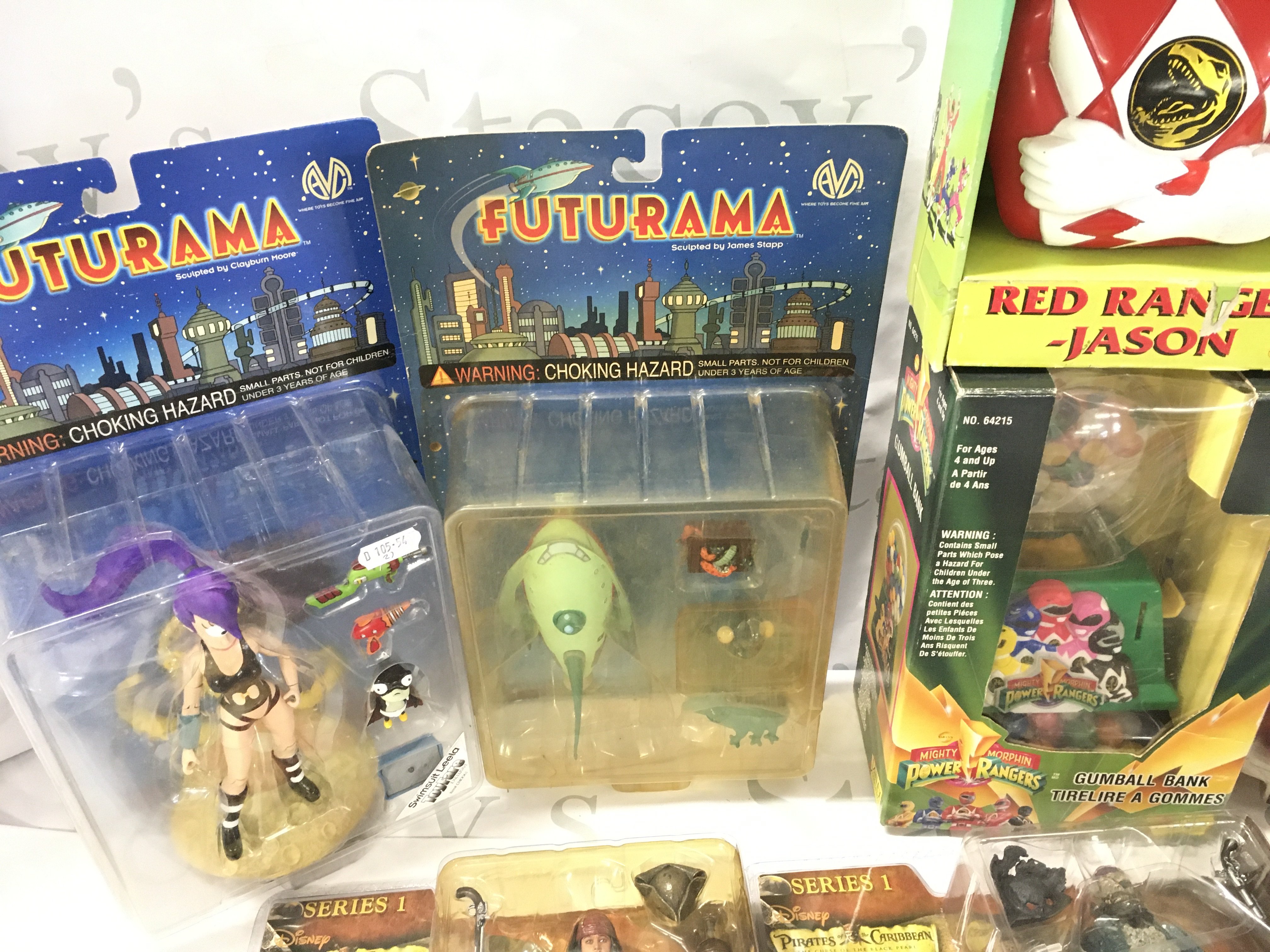 A Collection of Boxed Toys Including Futurama. pirates Of The Caribbean. Power Rangers. Spider-Man. Masters Of The Universe And Ghostbusters.