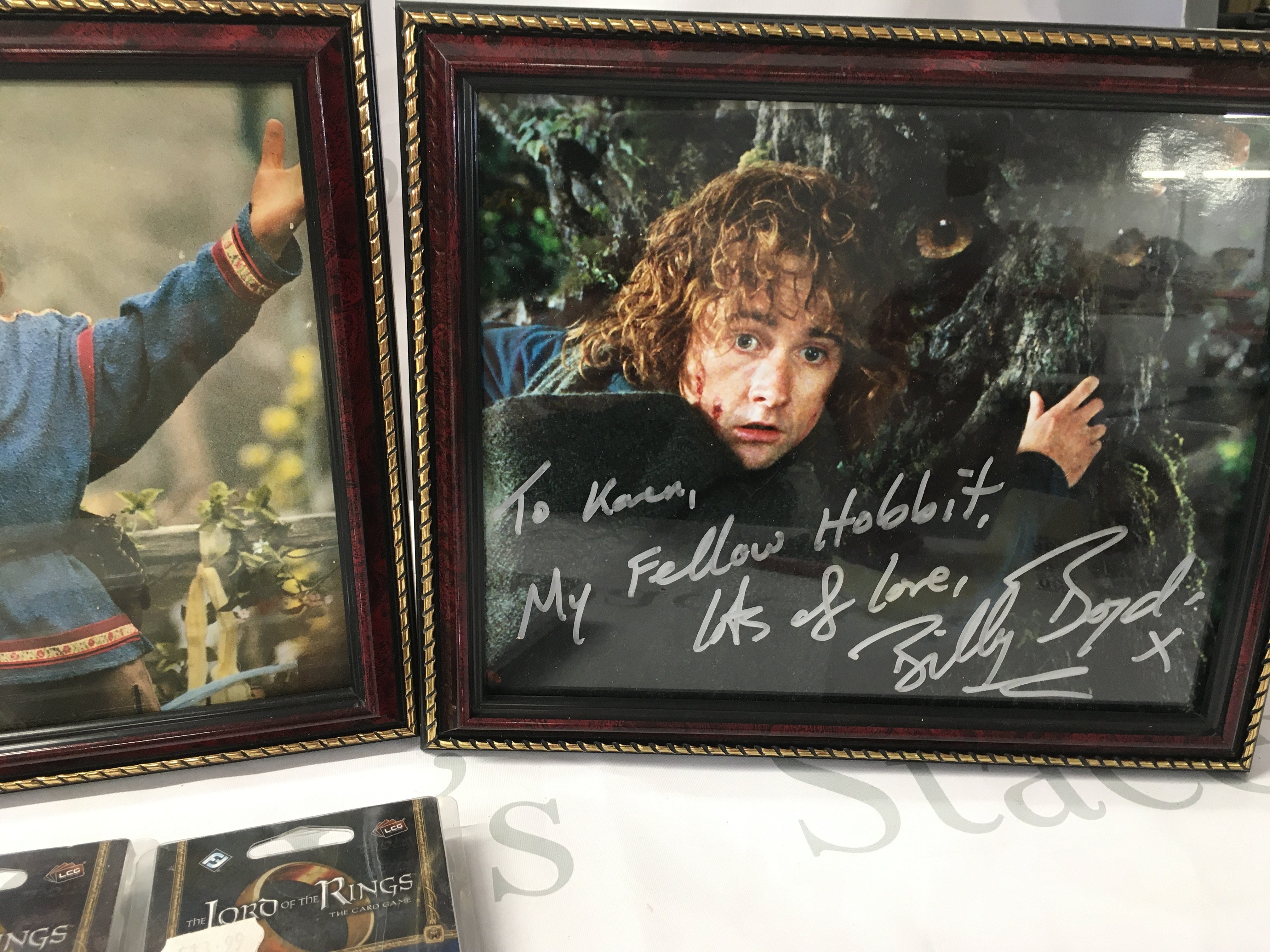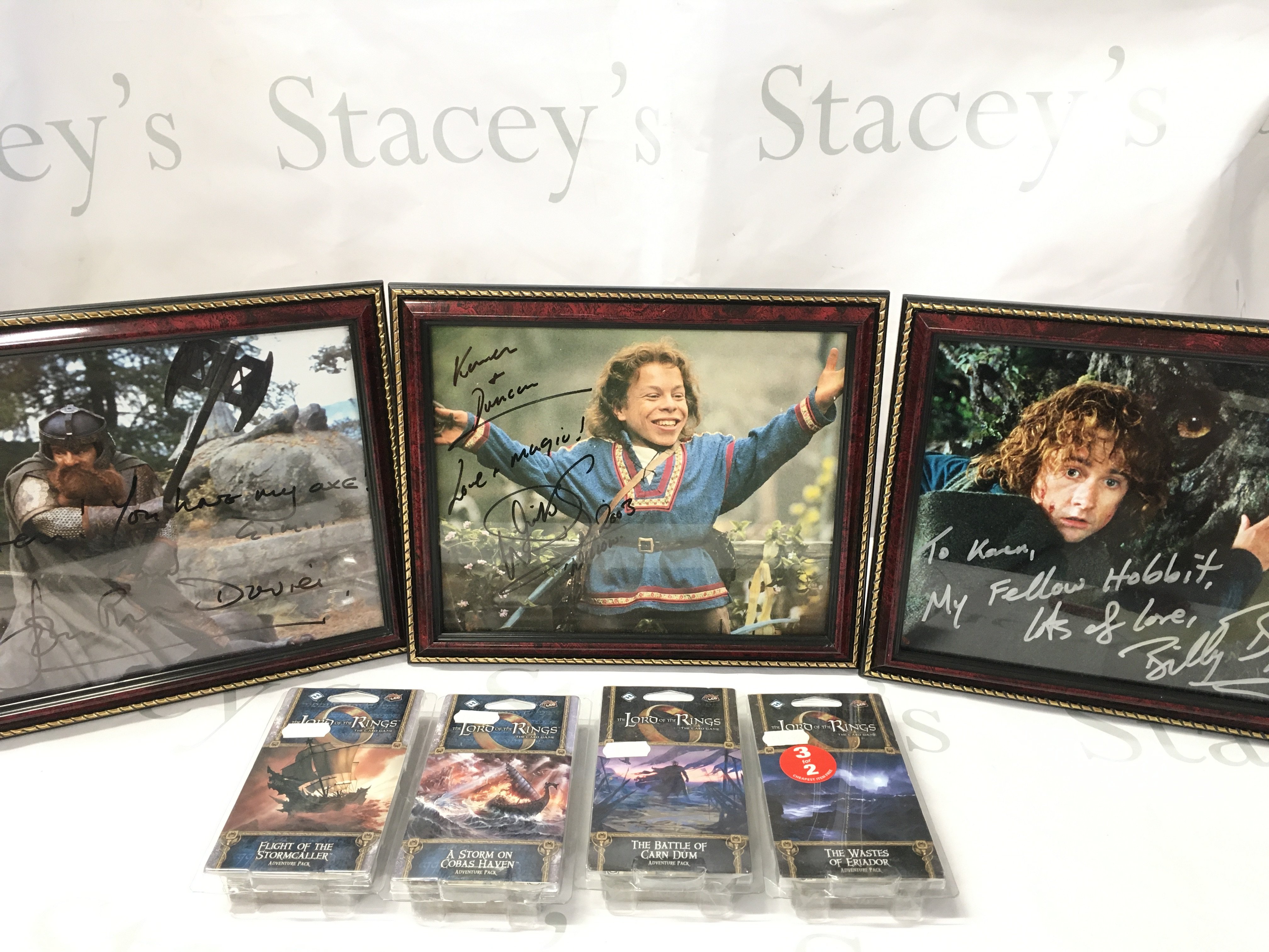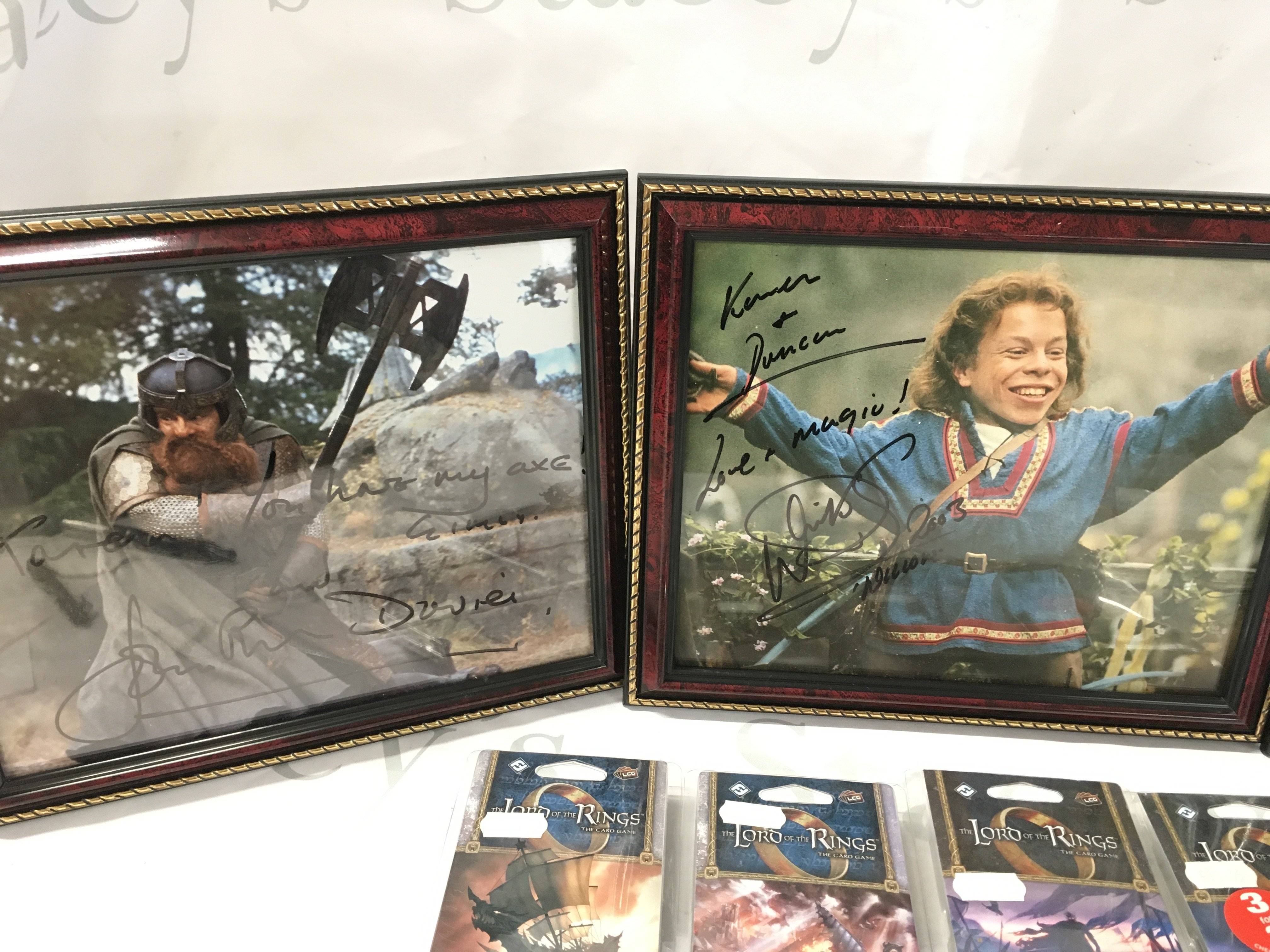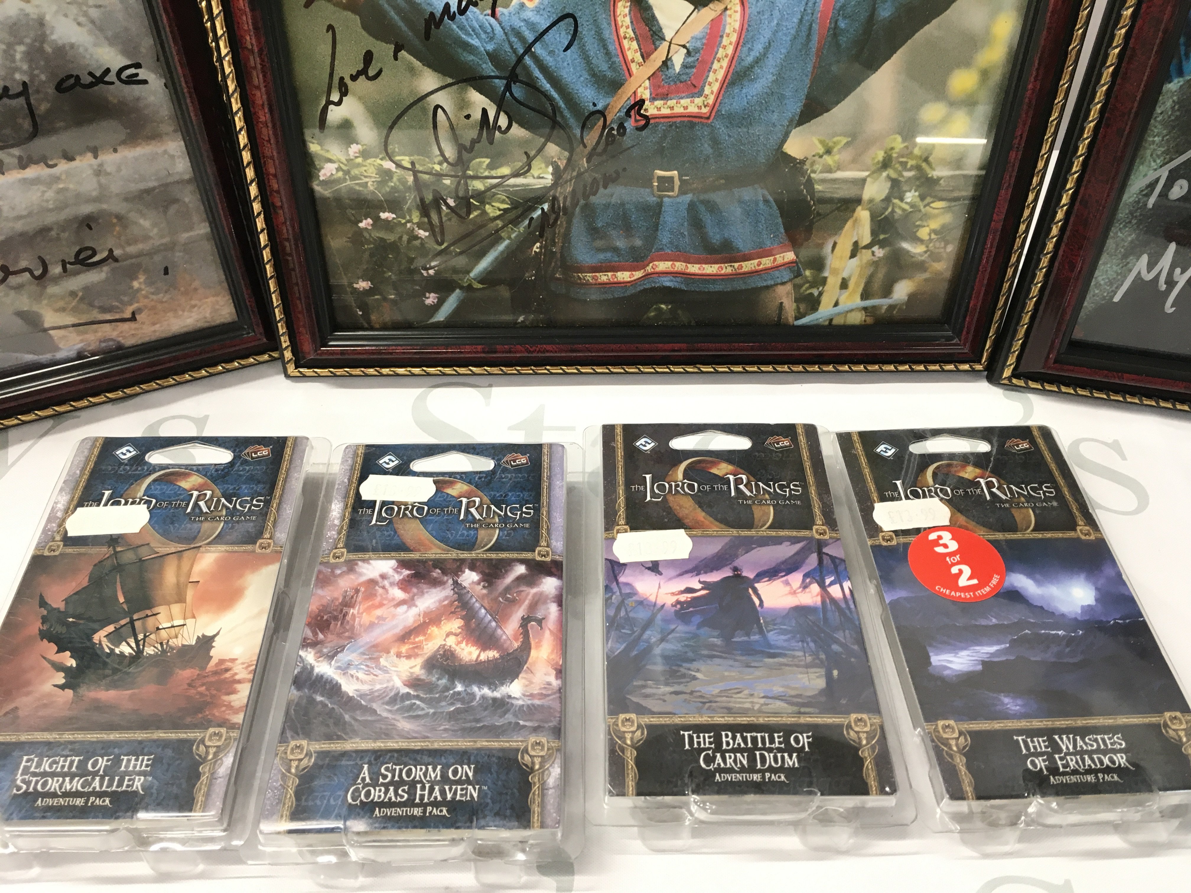 2 Framed Lord Of The Rings Pictures. A Warwick Davies Singed Picture. And 4 Sealed Lord Of The Rings Card Games.