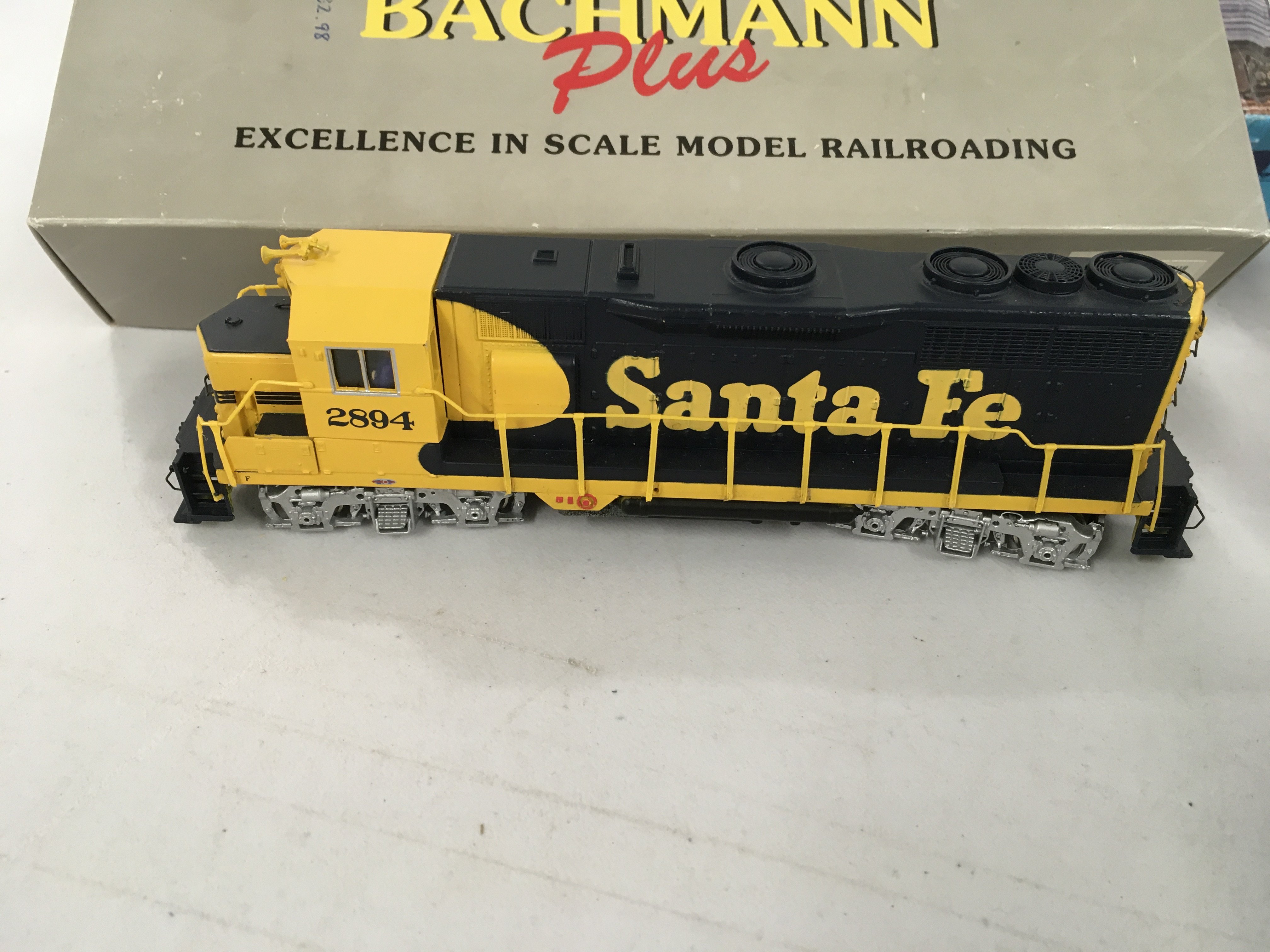 3 boxed HO gauge model railway locomotives by Bachmann plus. Santa Fe 2894. No. 11504 and Athearn. 4751 and 4940. No reserve