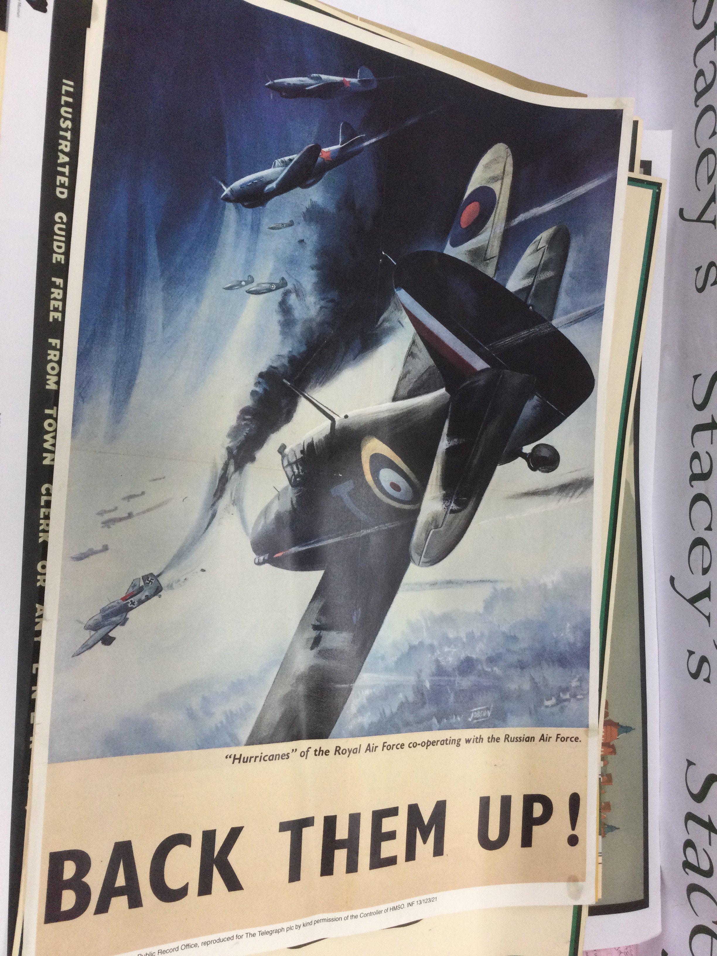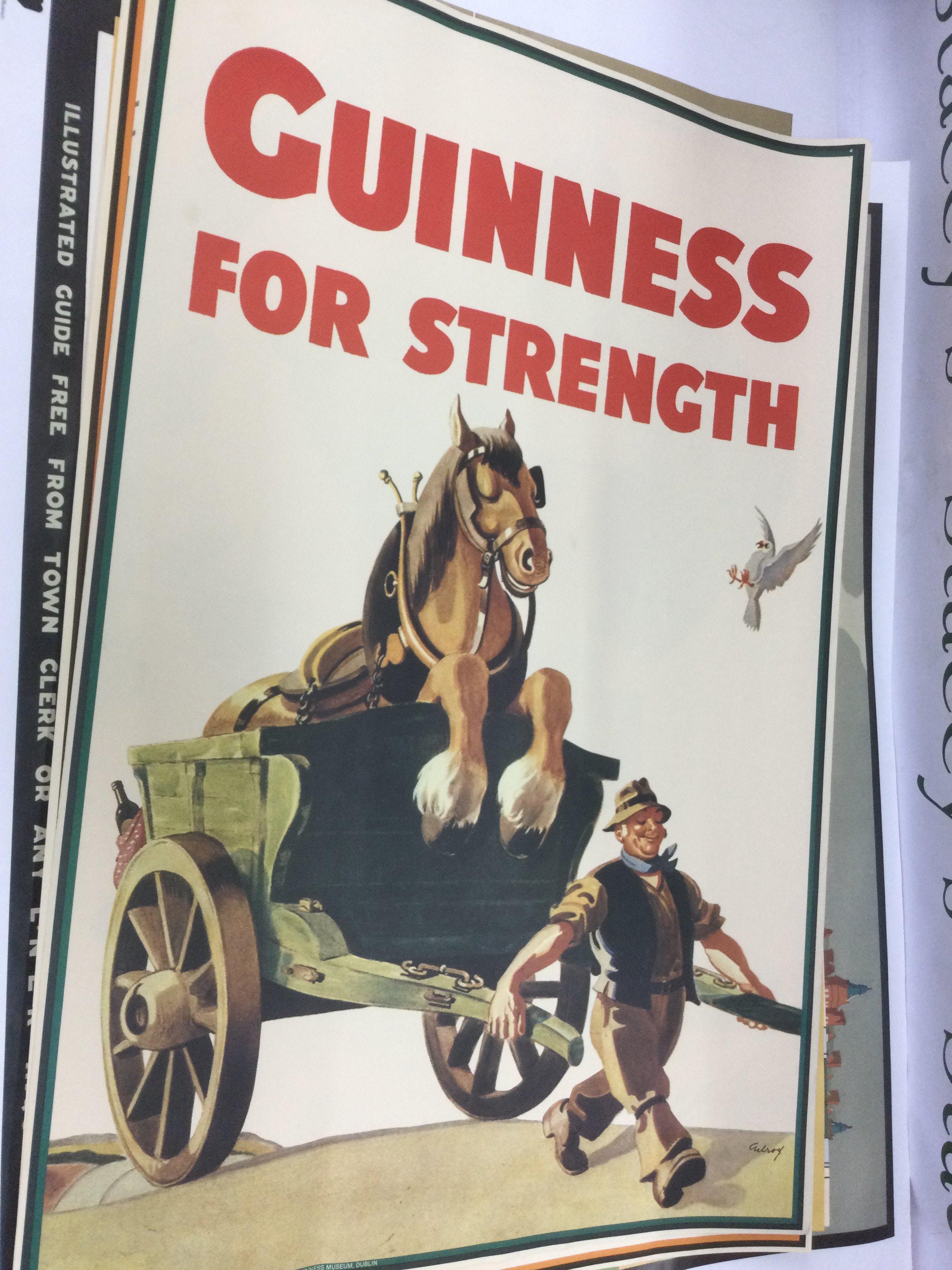 A collection of posters comprising reproduction WW2 era military posters, Guiness advertising posters etc. Shipping category C.