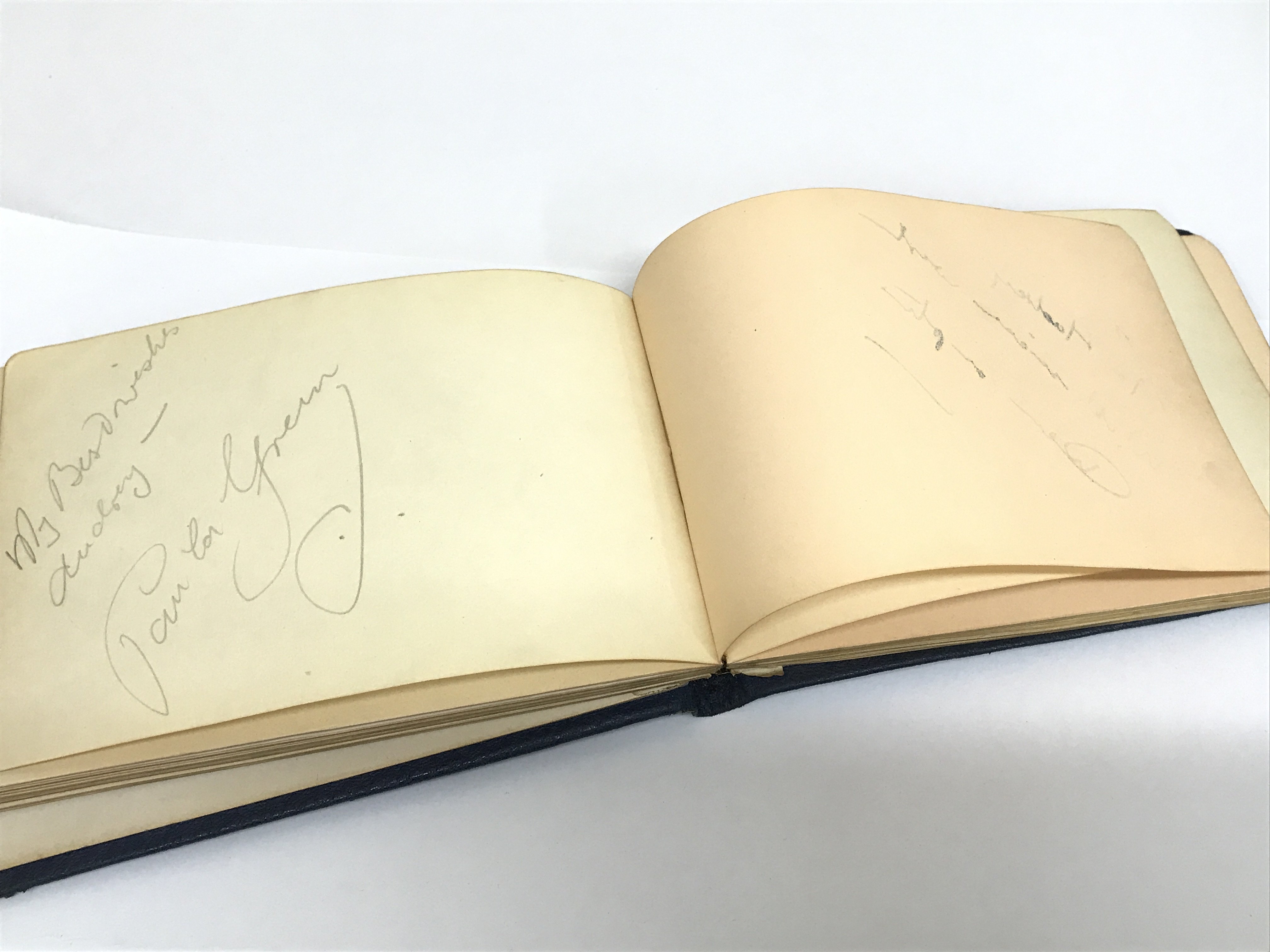 An autograph book including Sydney Lee (snooker), Tom Newman (snooker), Guy Gibson ( RAF WW2 bomber pilot), Horace Lindrum (snooker) etc. Postage category B