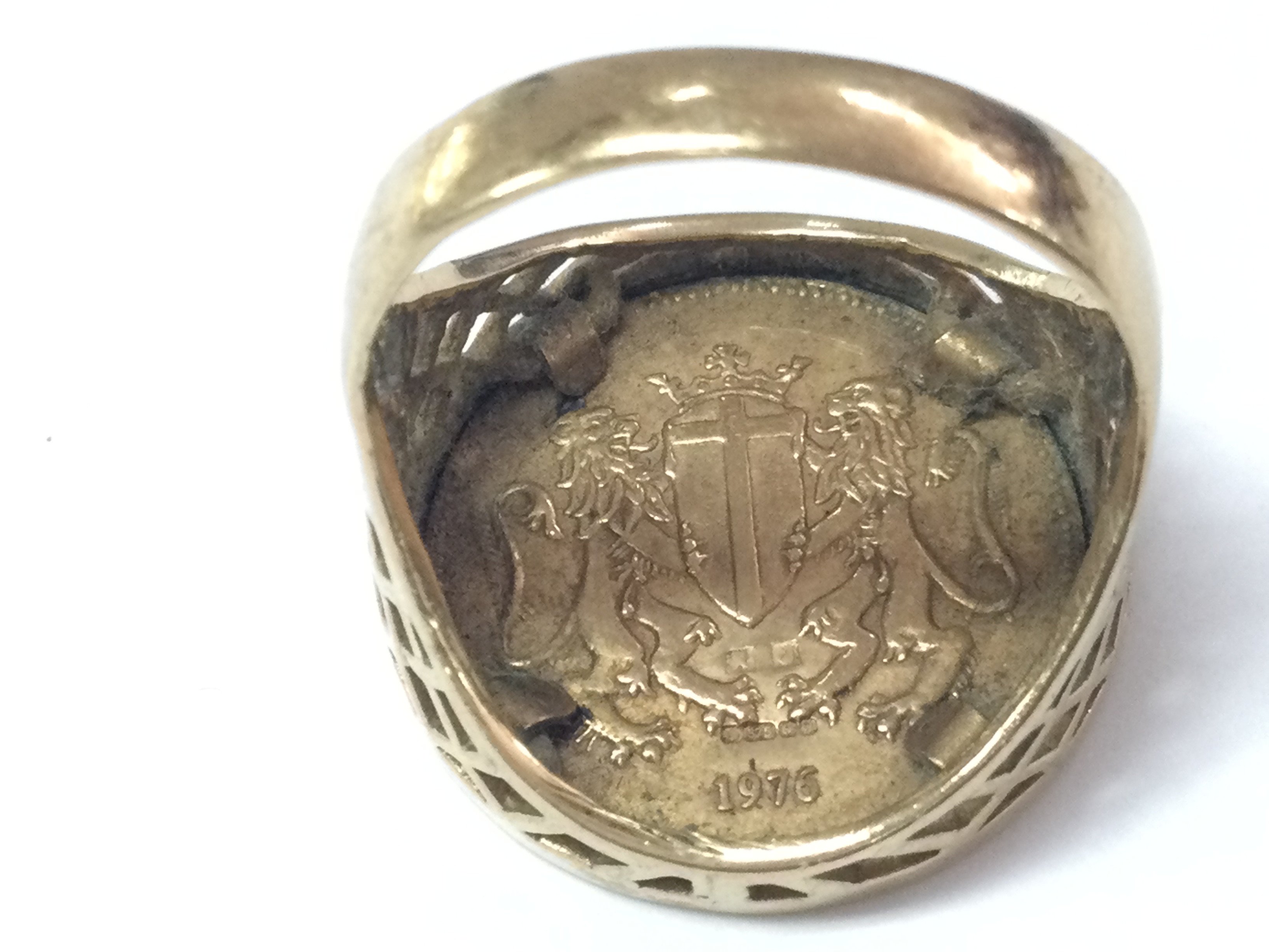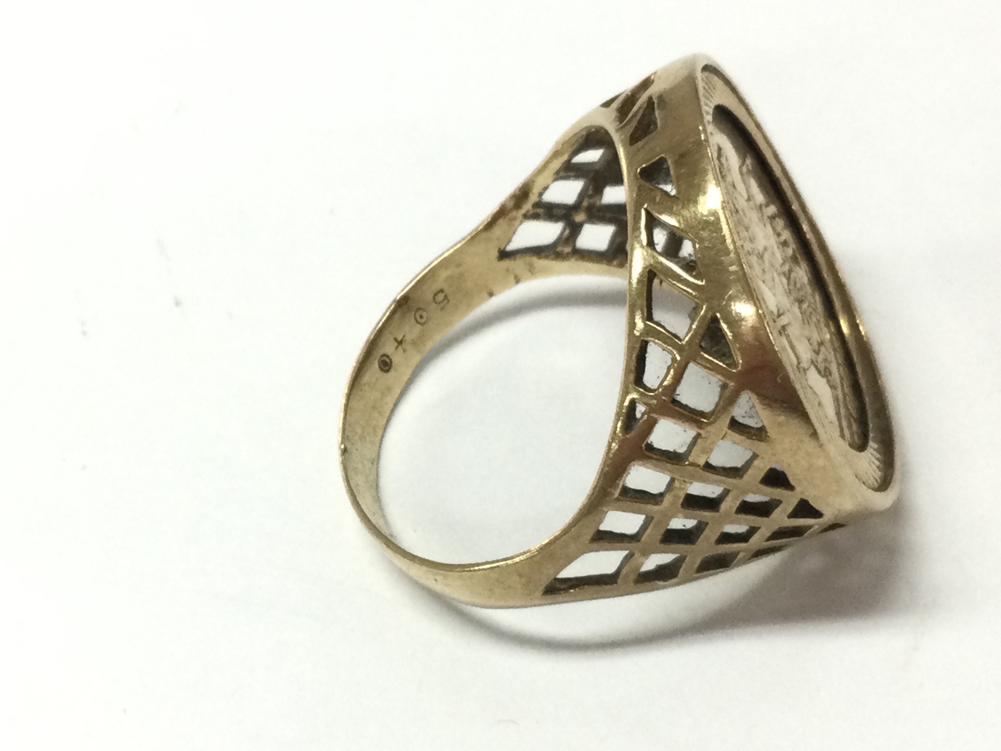A 9ct gold sovereign style ring. Size R and 6.77g