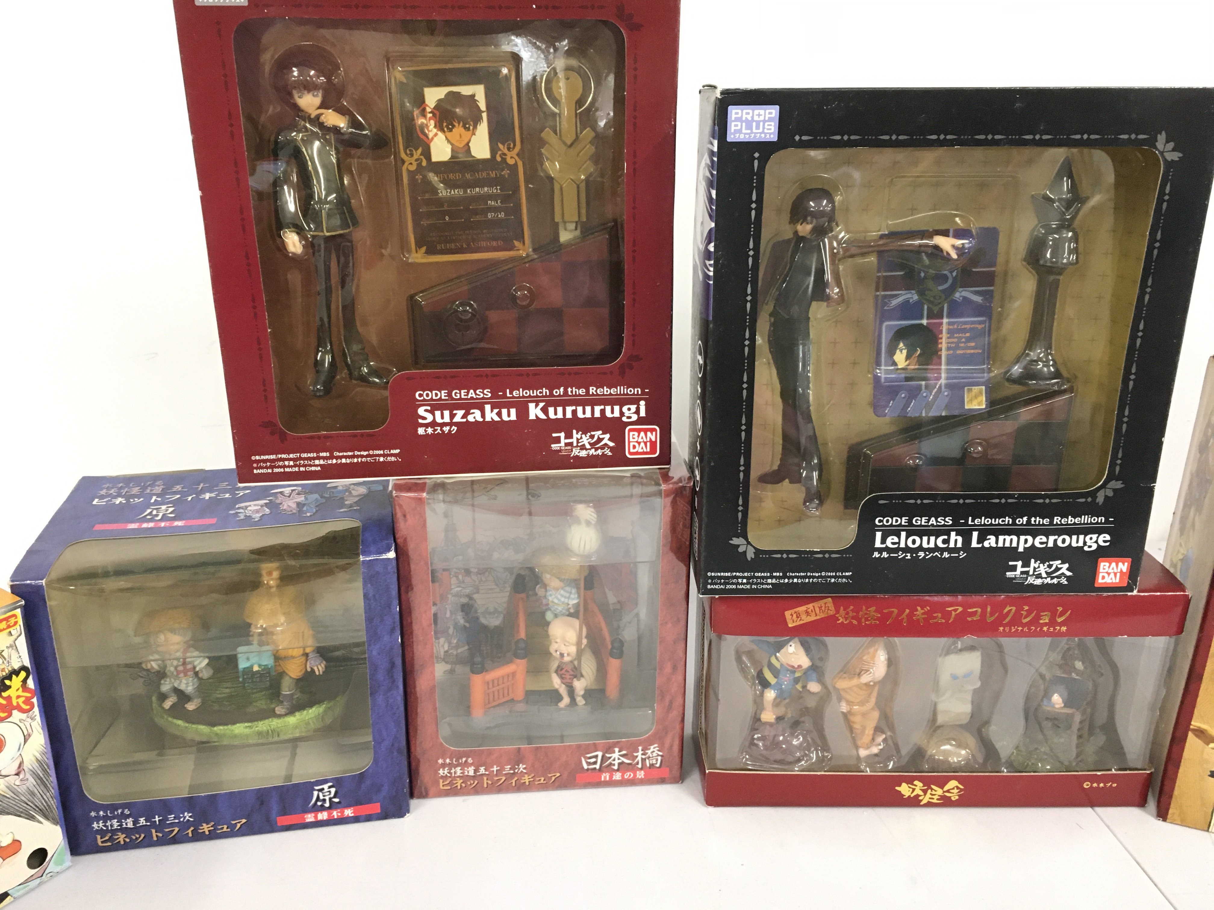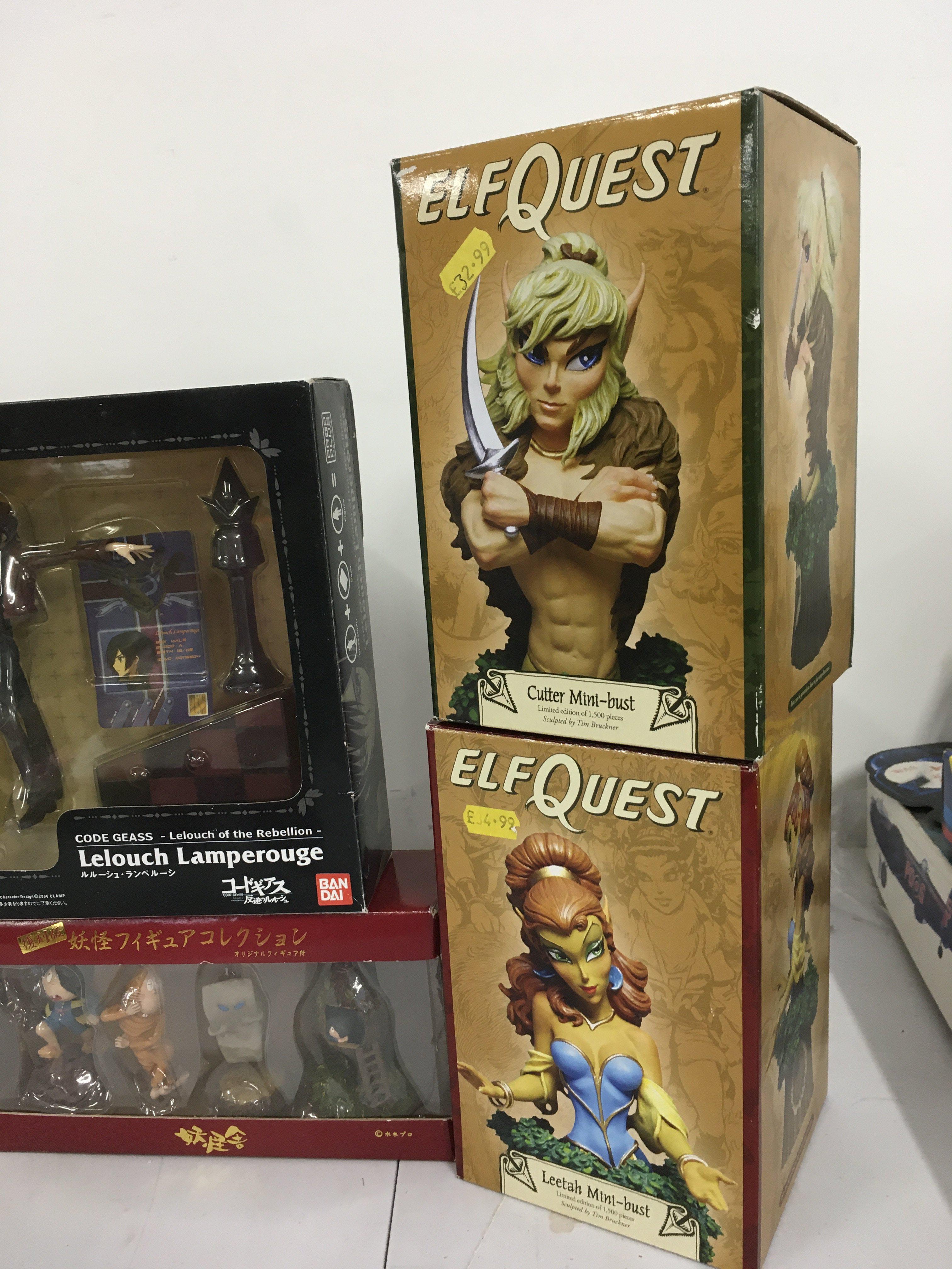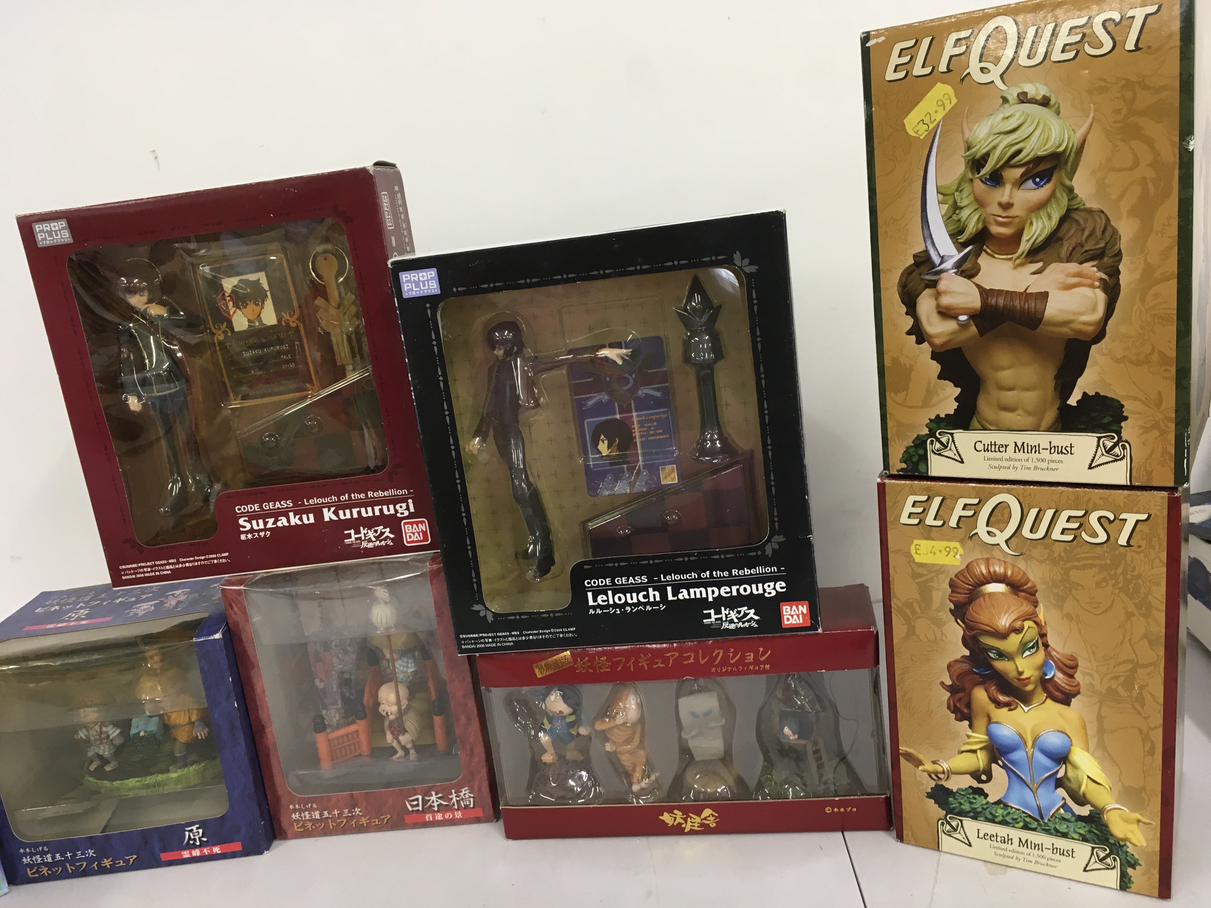 A Lot Of Anime Figures And Statues Including Code Geass. Gegege No kitaro. And Elf Quest Limited Edition Busts.