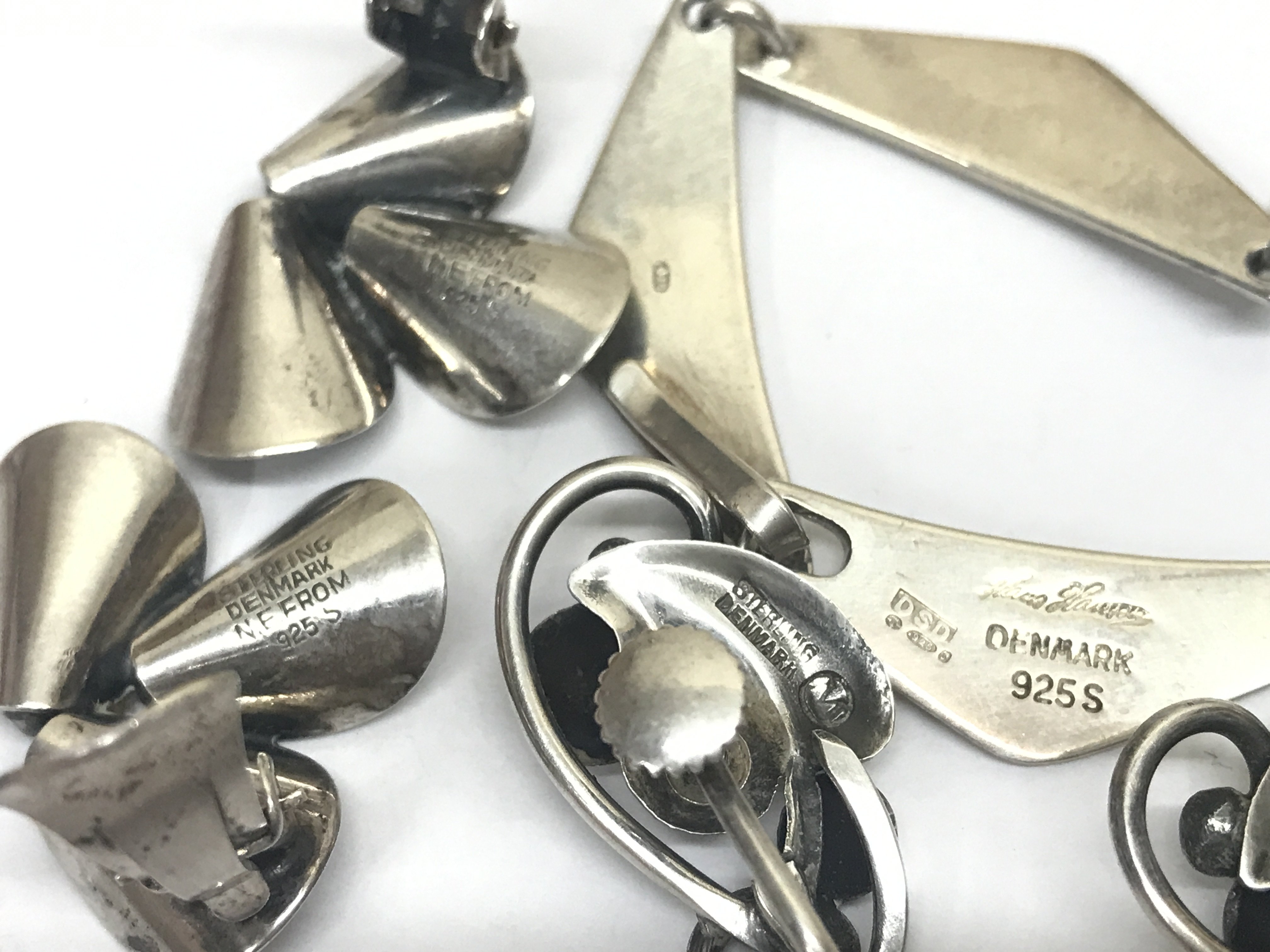 Two pairs of modern Danish silver earrings and a Hans Hanson Danish silver bracelet . Postage category A