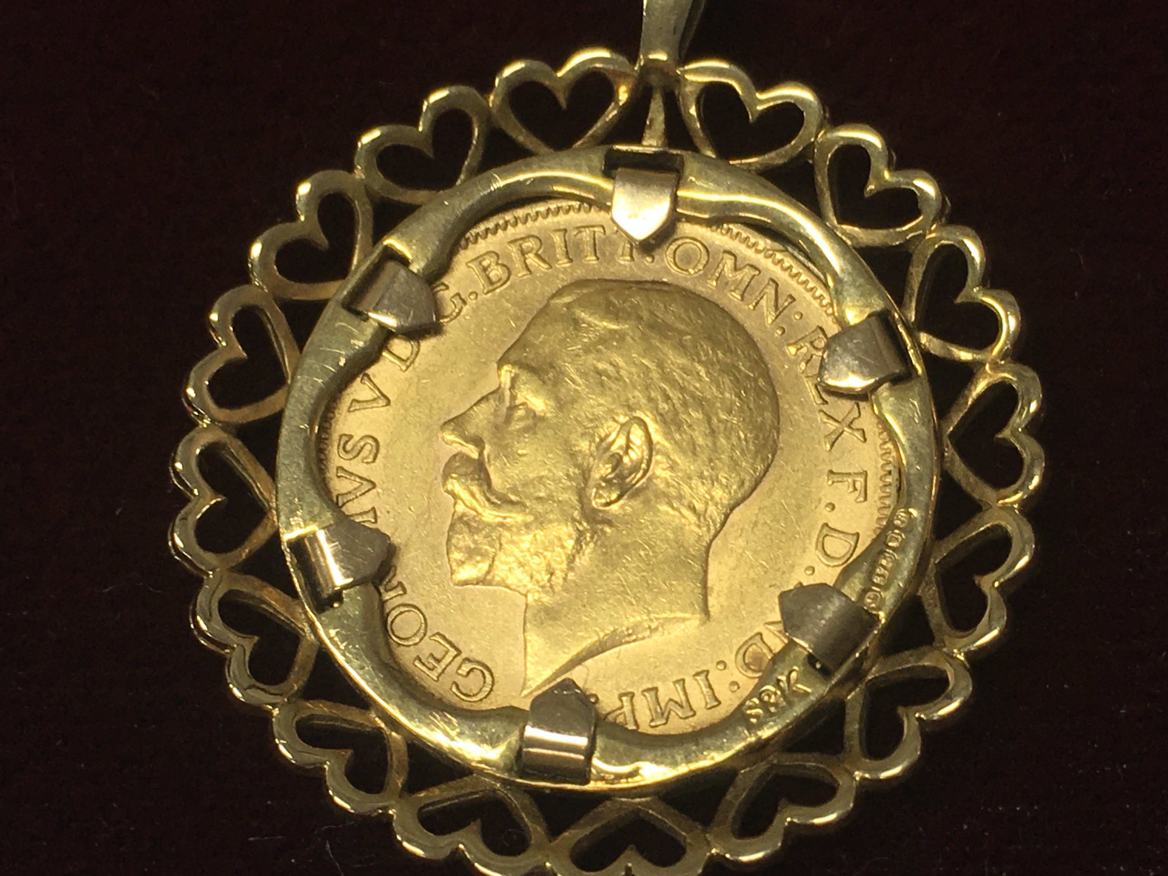 A 1912 full sovereign and chain, 14g total weight. Postage category A
