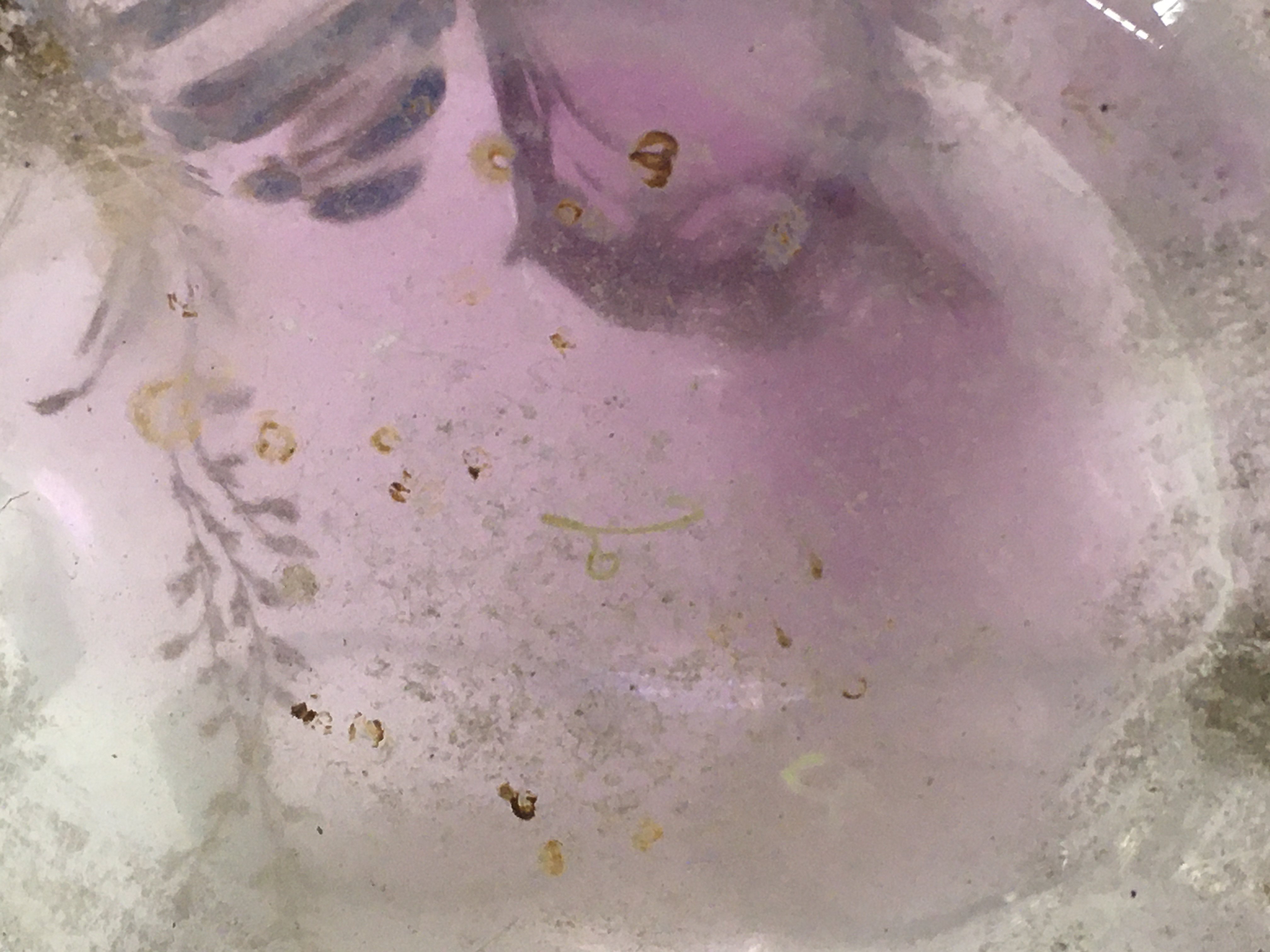 A Victorian glass vase with later enamel and gilt applied decorated , 25cm tall. This lot cannot be posted