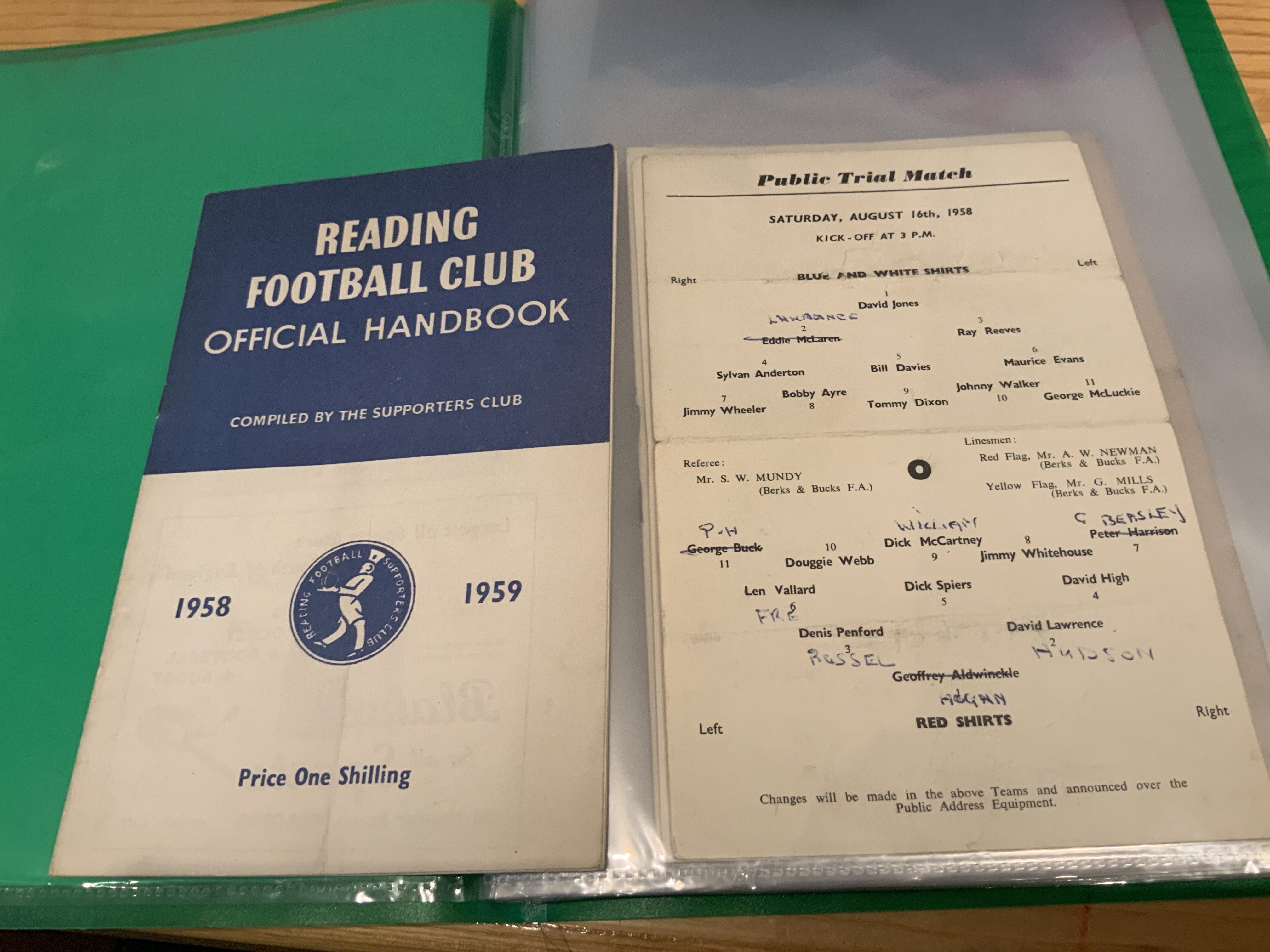 58/59 Reading Home + Away Football Programmes: 27 homes including practice match and 26 aways including Crystal Pace SFC. Good condition with instructions to sell. ( 3 binders )