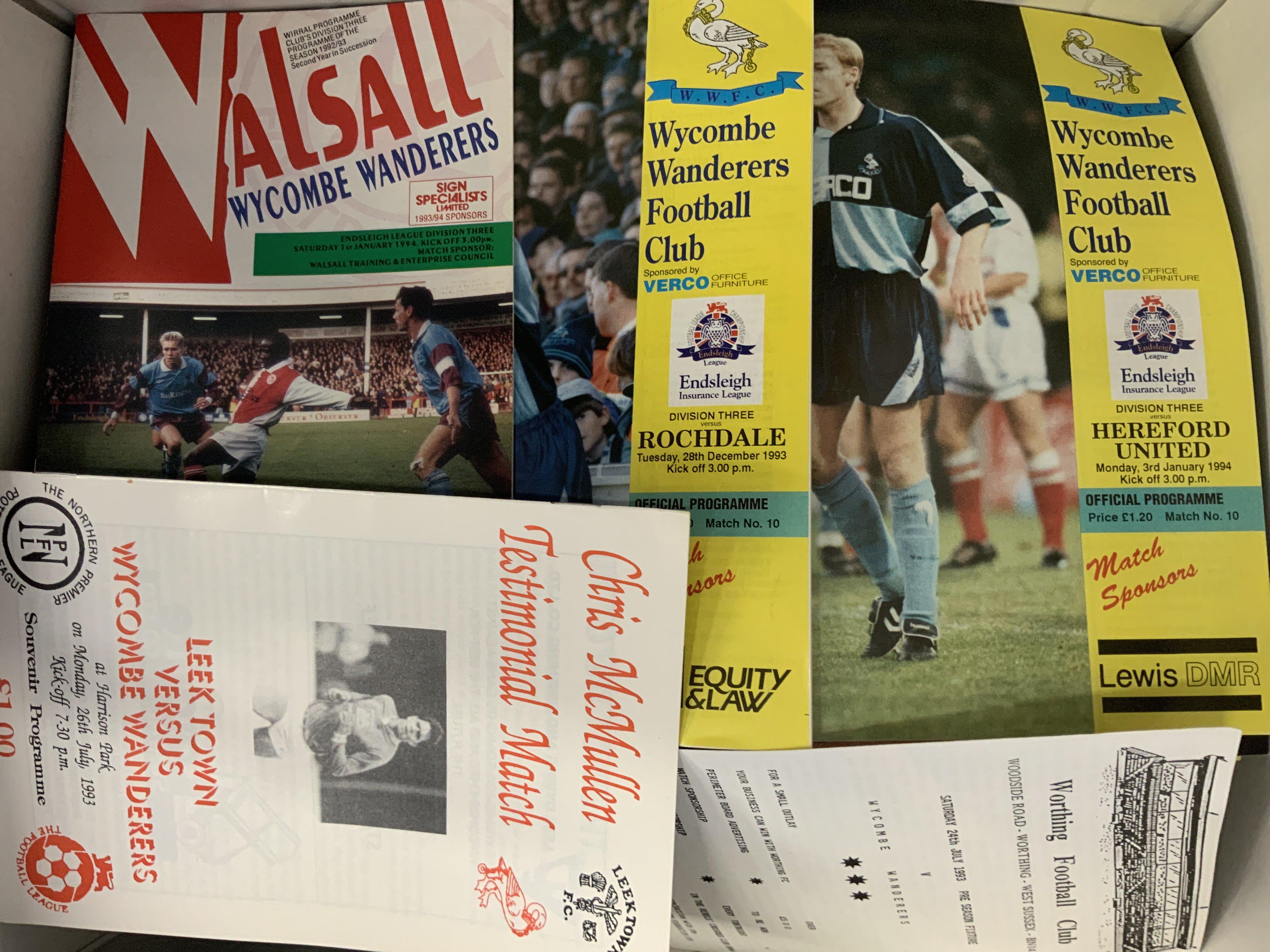 Wycombe Wanderers Football Programme CollectIon: From the 92/93 Conference League season there are 42 league 3 FA Cup, 8 Trophy and 16 reserves. From the first season in the league there are 45 league including play offs 3 FA Cup 4 League Cup, 7 Autoglass and 8 friendlies. Instructions to sell.