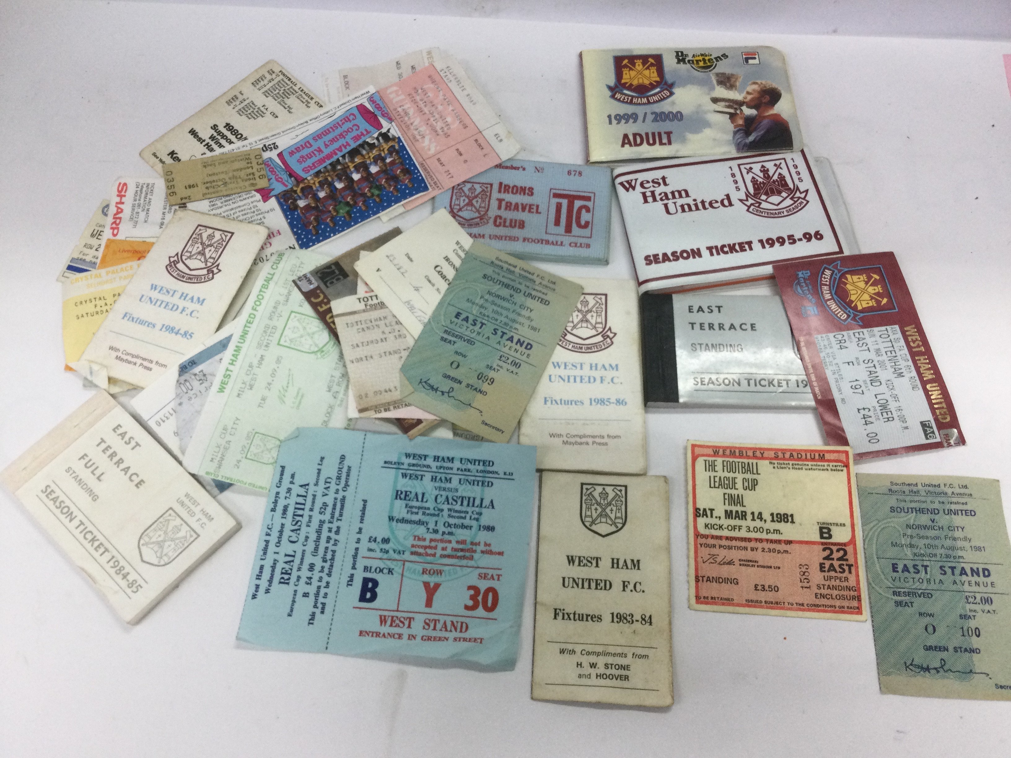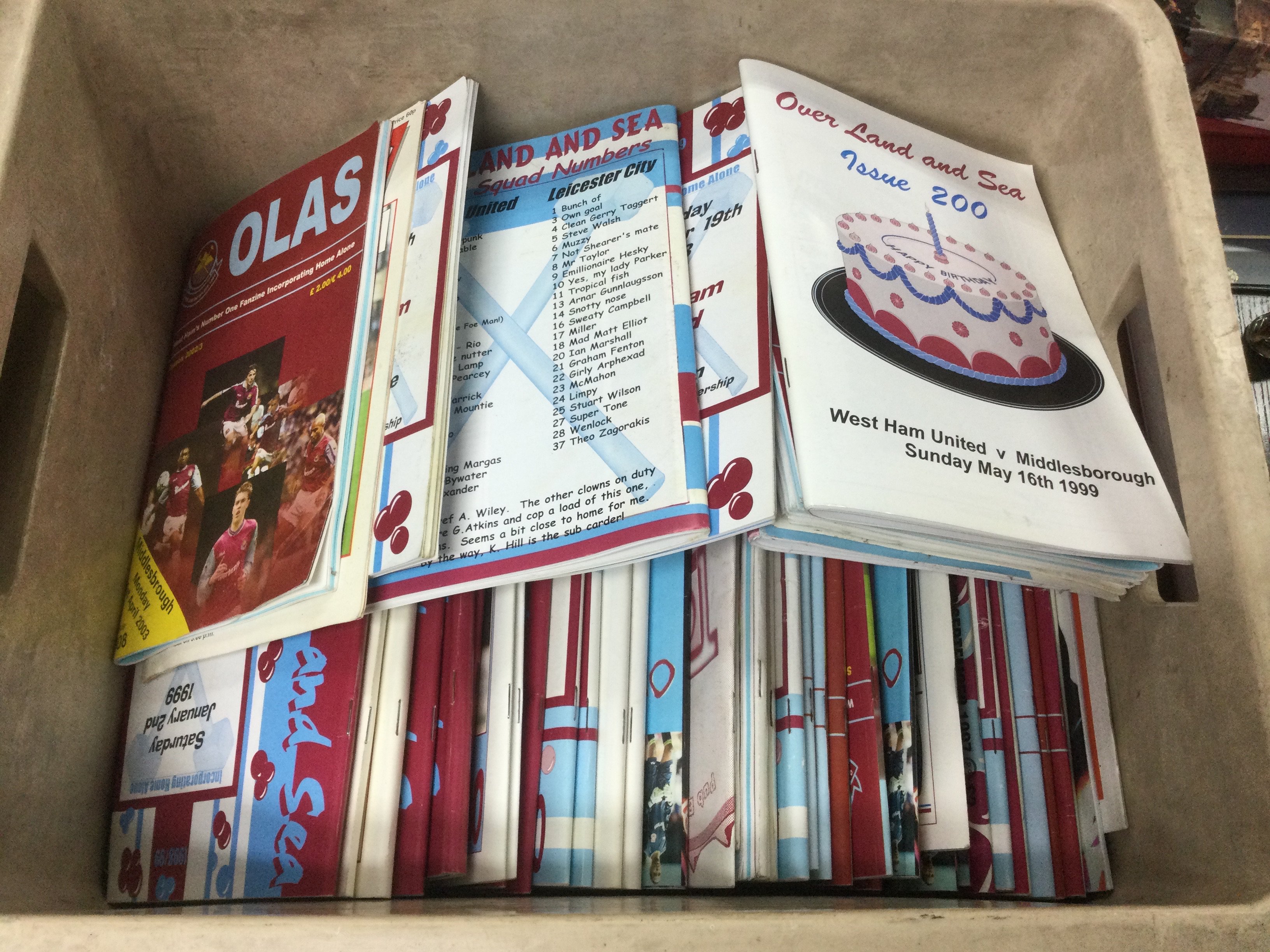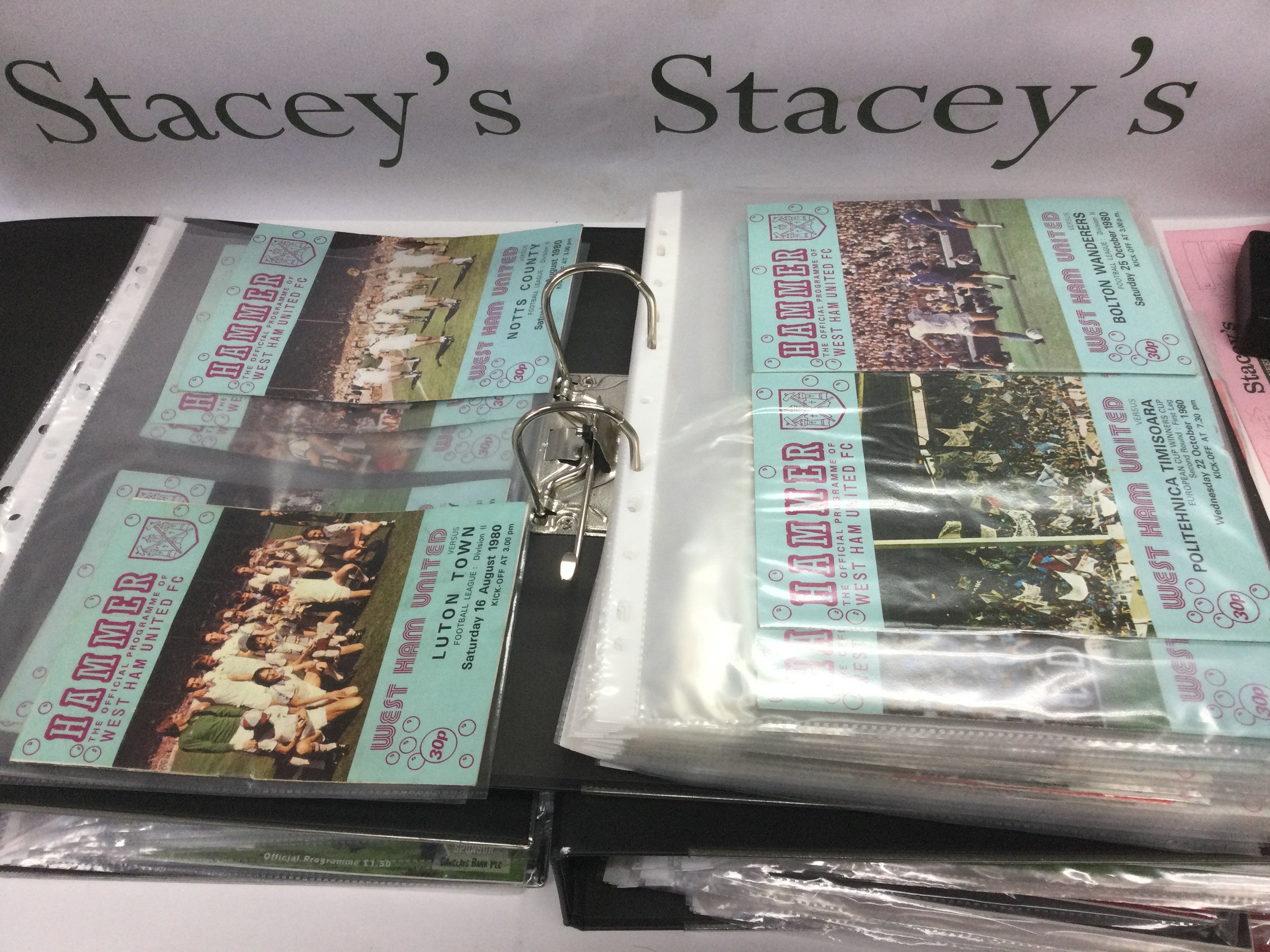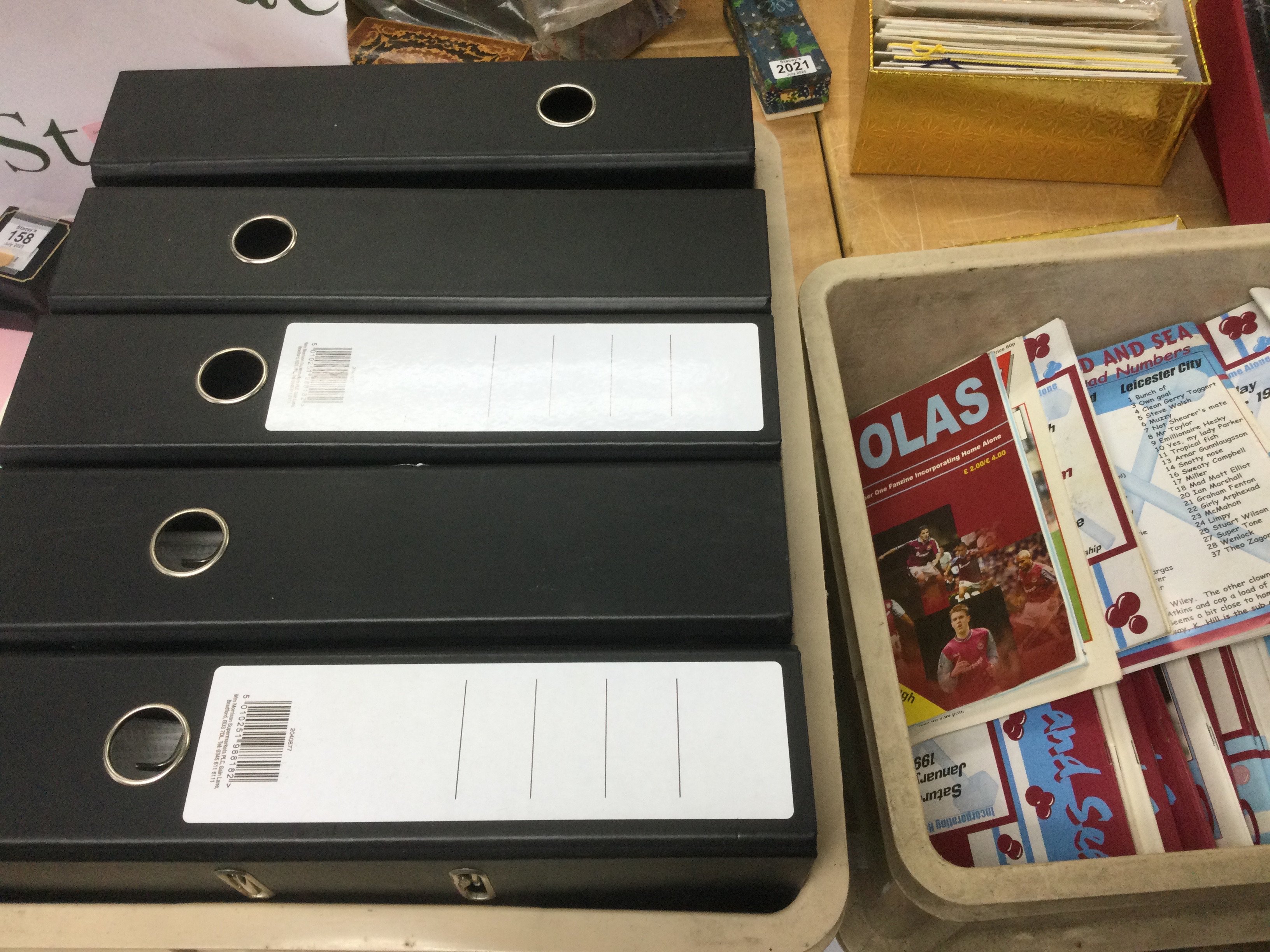 Two boxes of West Ham Utd football programs and tickets. Shipping category D.