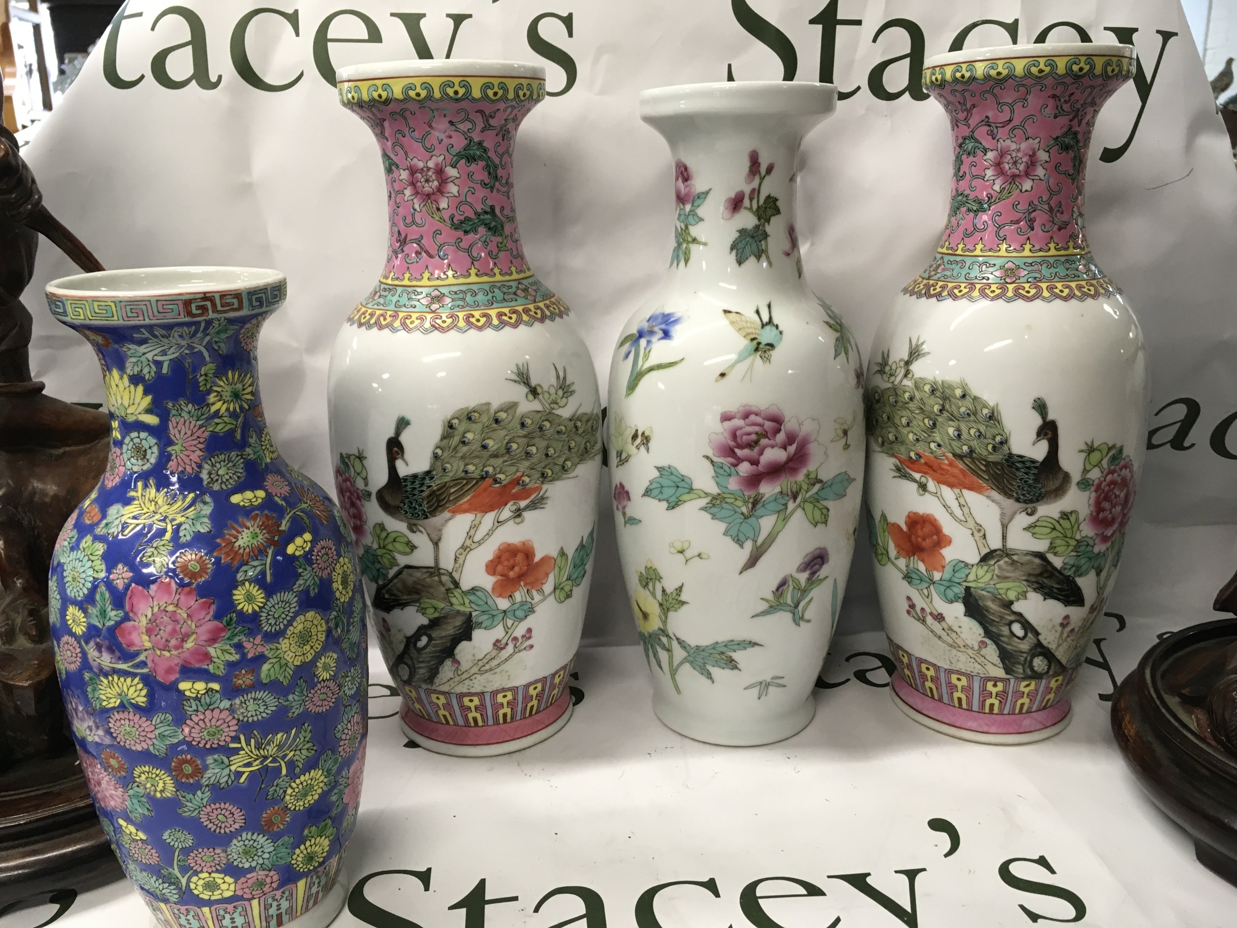 Two late 19th century carved saga figure lamps late republic Porcelain vases . This lot cannot be posted