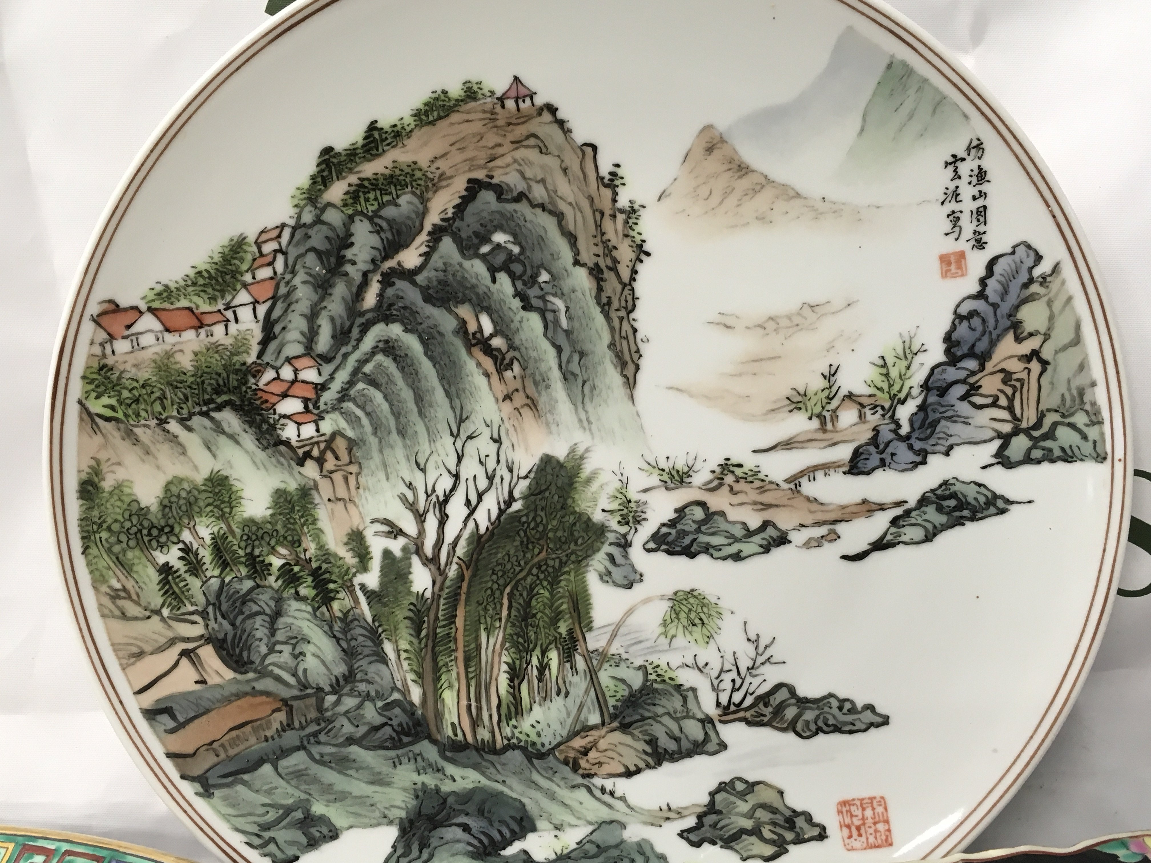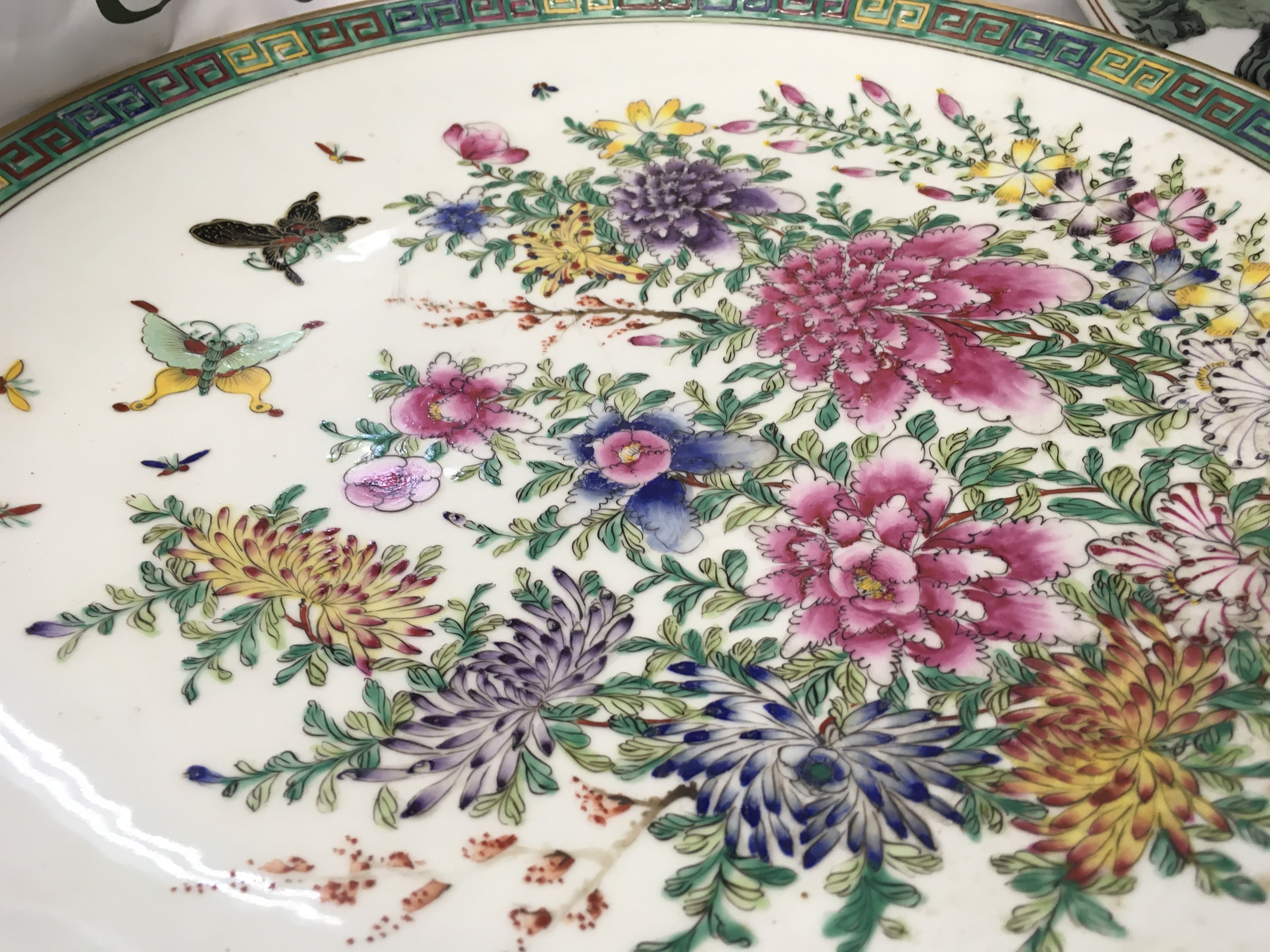 Three late Chinese republic dishes. 29 to 40cm wide This lot cannot be posted