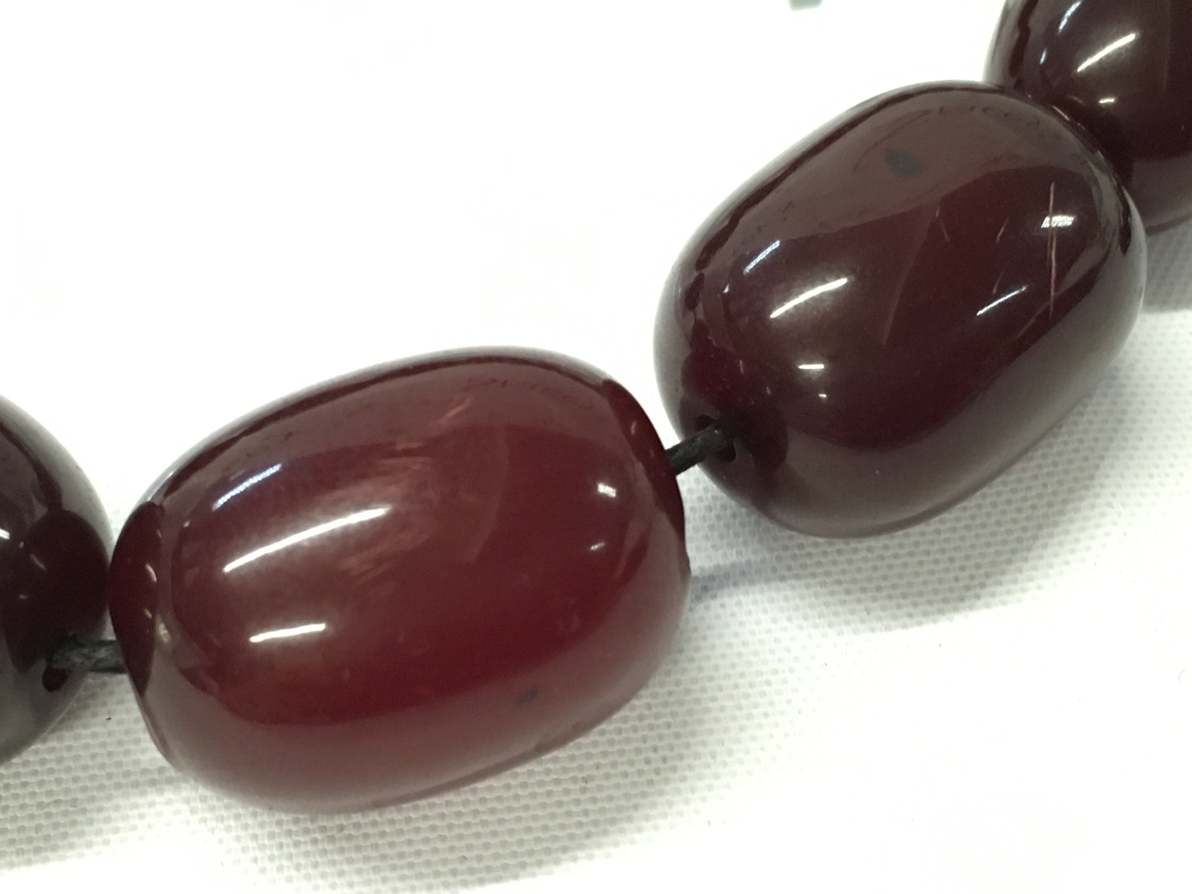 A large cherry amber bakelite necklace , 140g total weight, 98cm long. Postage category A