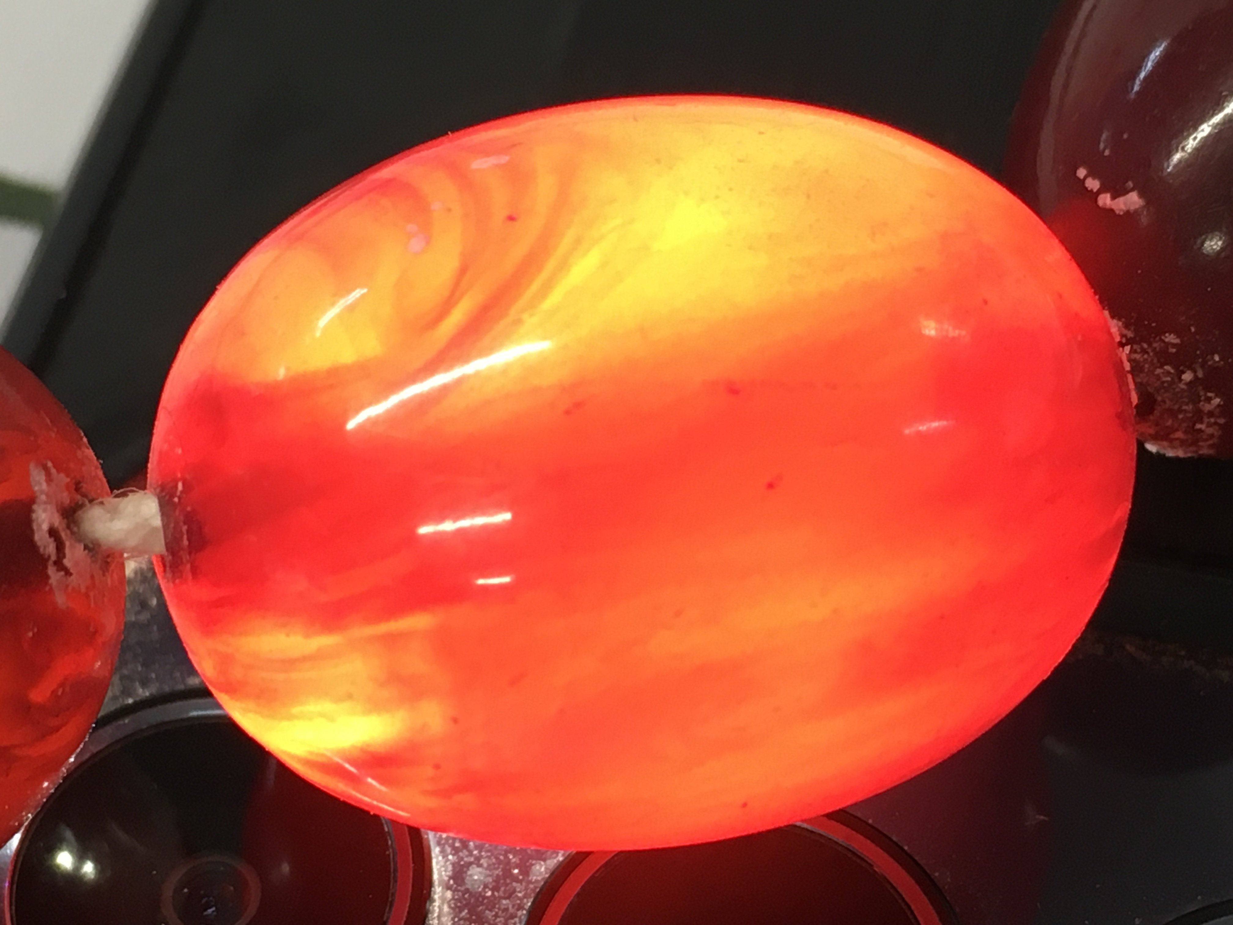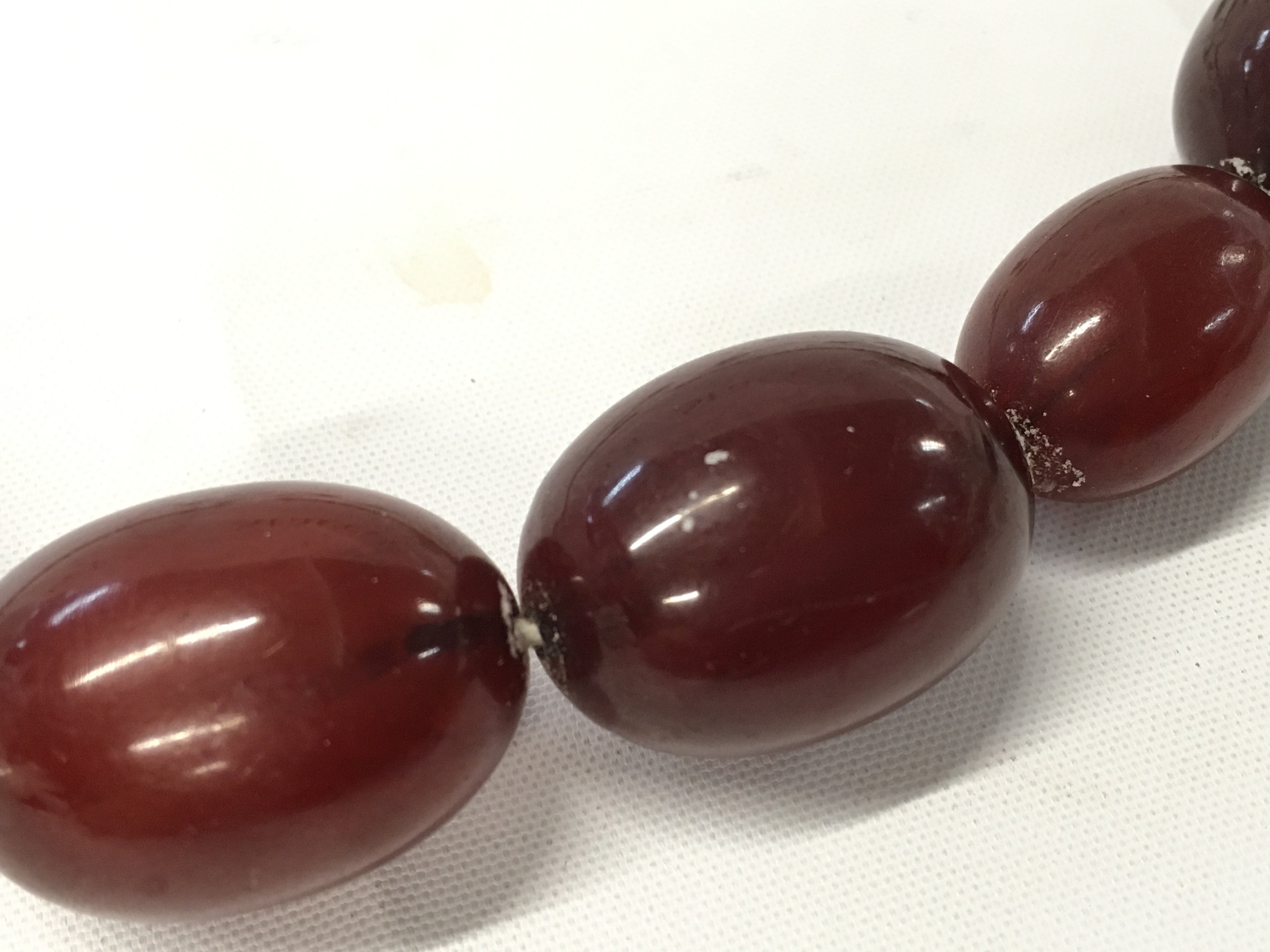 A cherry amber bakelite necklace , 80cm long. 95g total weight approximately . postage category A