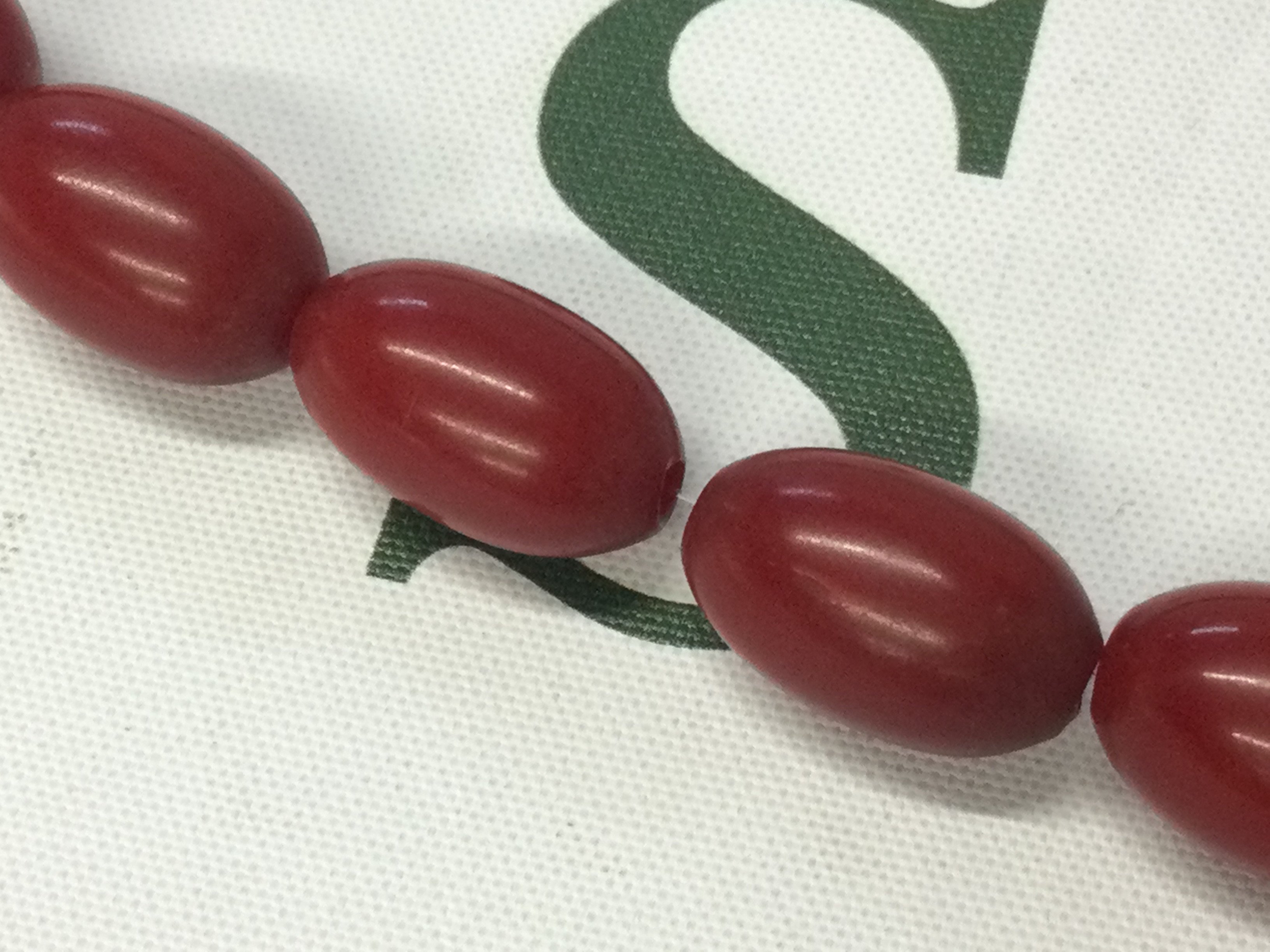 A Bakelite cherry coloured necklace 120cm long 120g , postage category A
