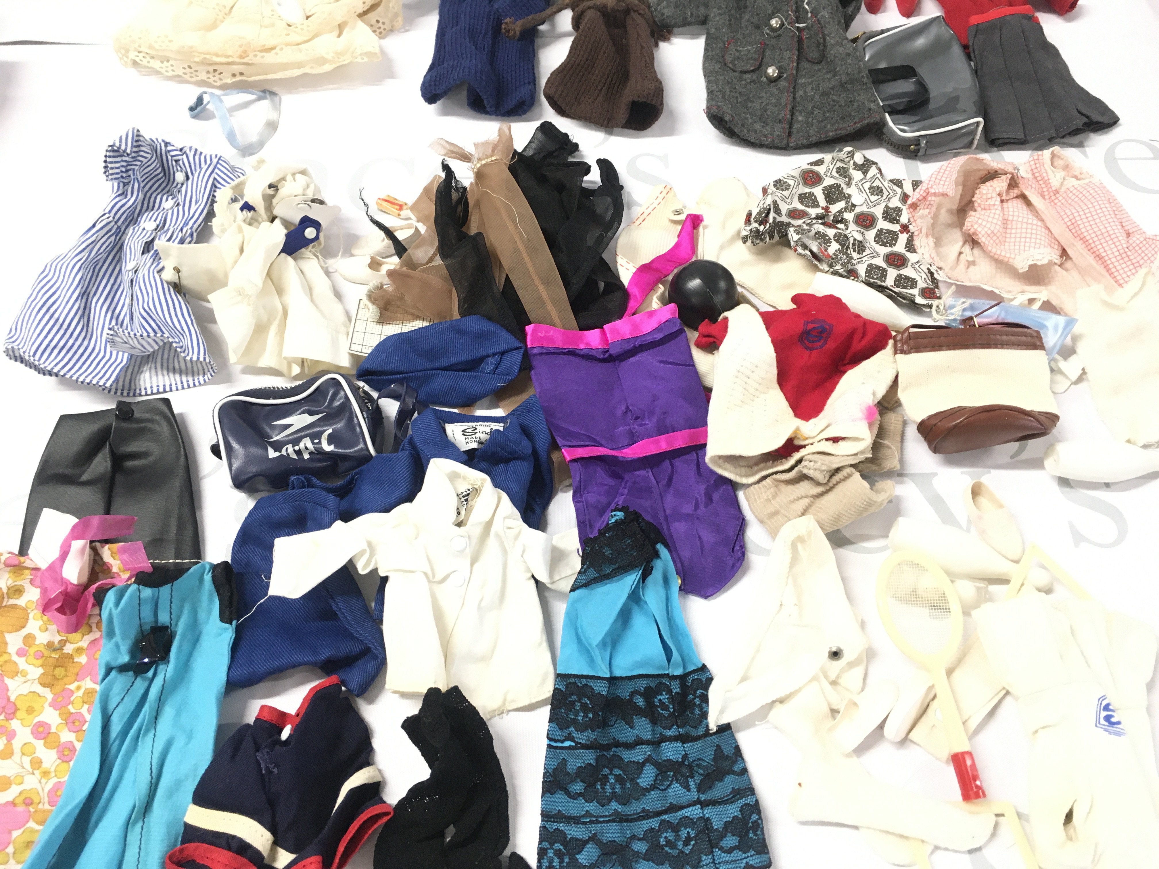 A Bag Containing 2 Vintage Sindy Dolls And A Collection Of Clothes.