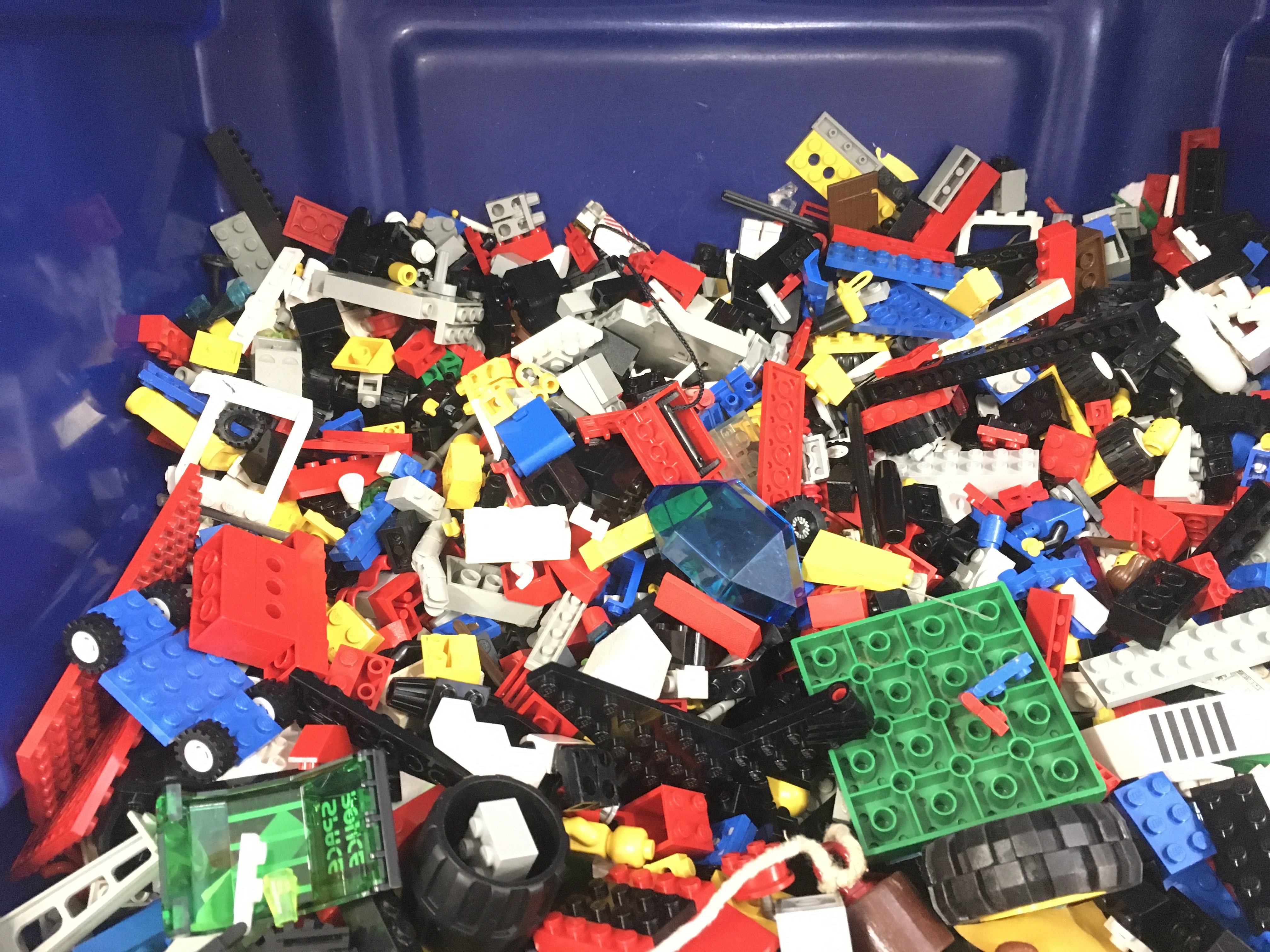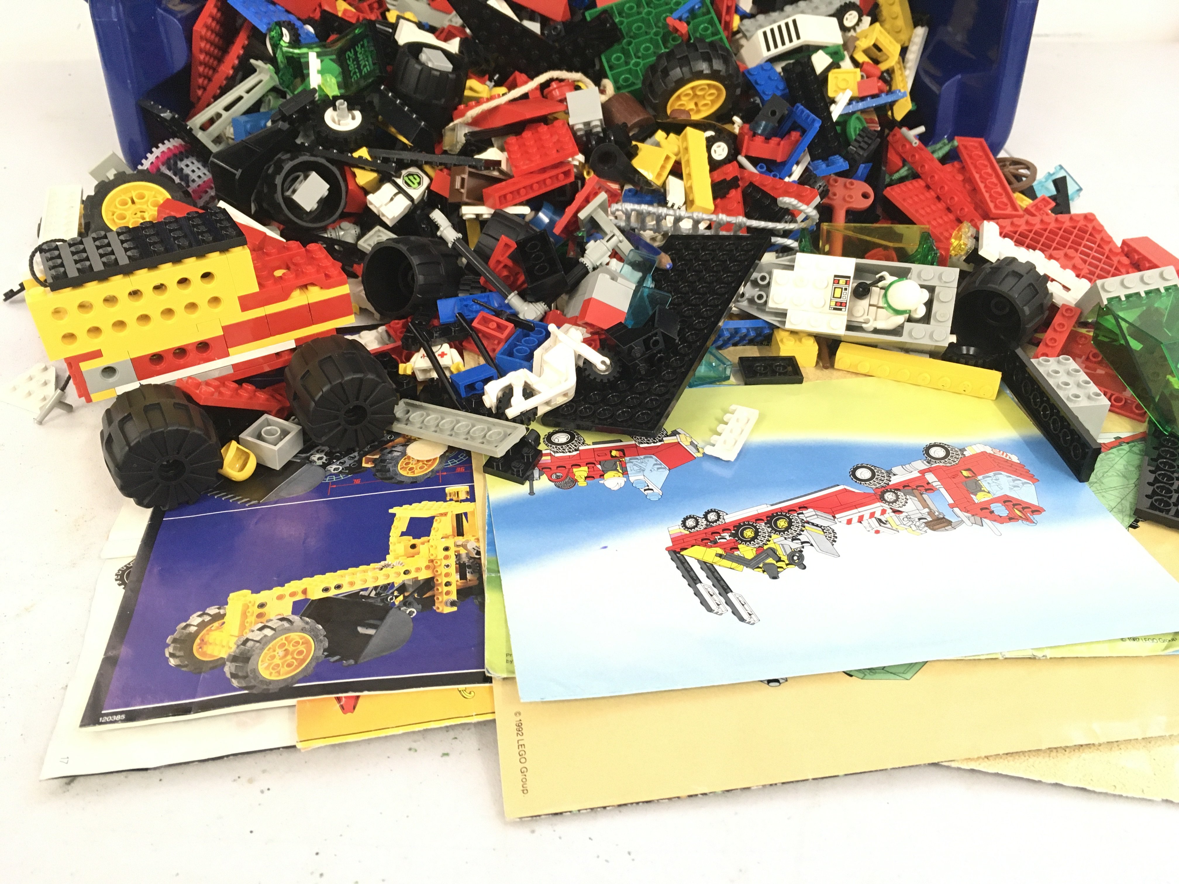 A box containing a large quantity of loose Lego building blocks and accessories. Also includes some leaflet but not necessarily matched to contents. No reserve