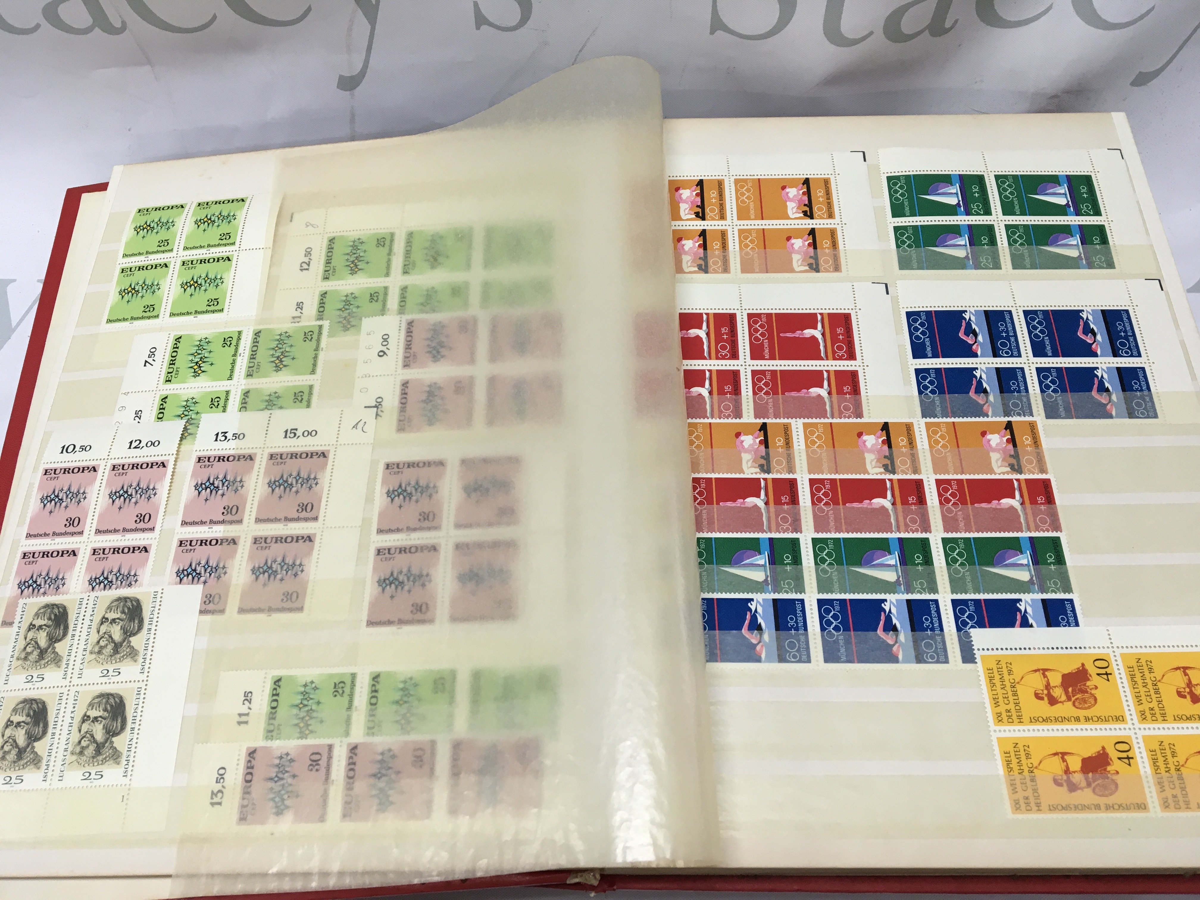 Three albums of German stamps ,mainly unused of the Second half of the 20th century in blocks with margins . Postage category B