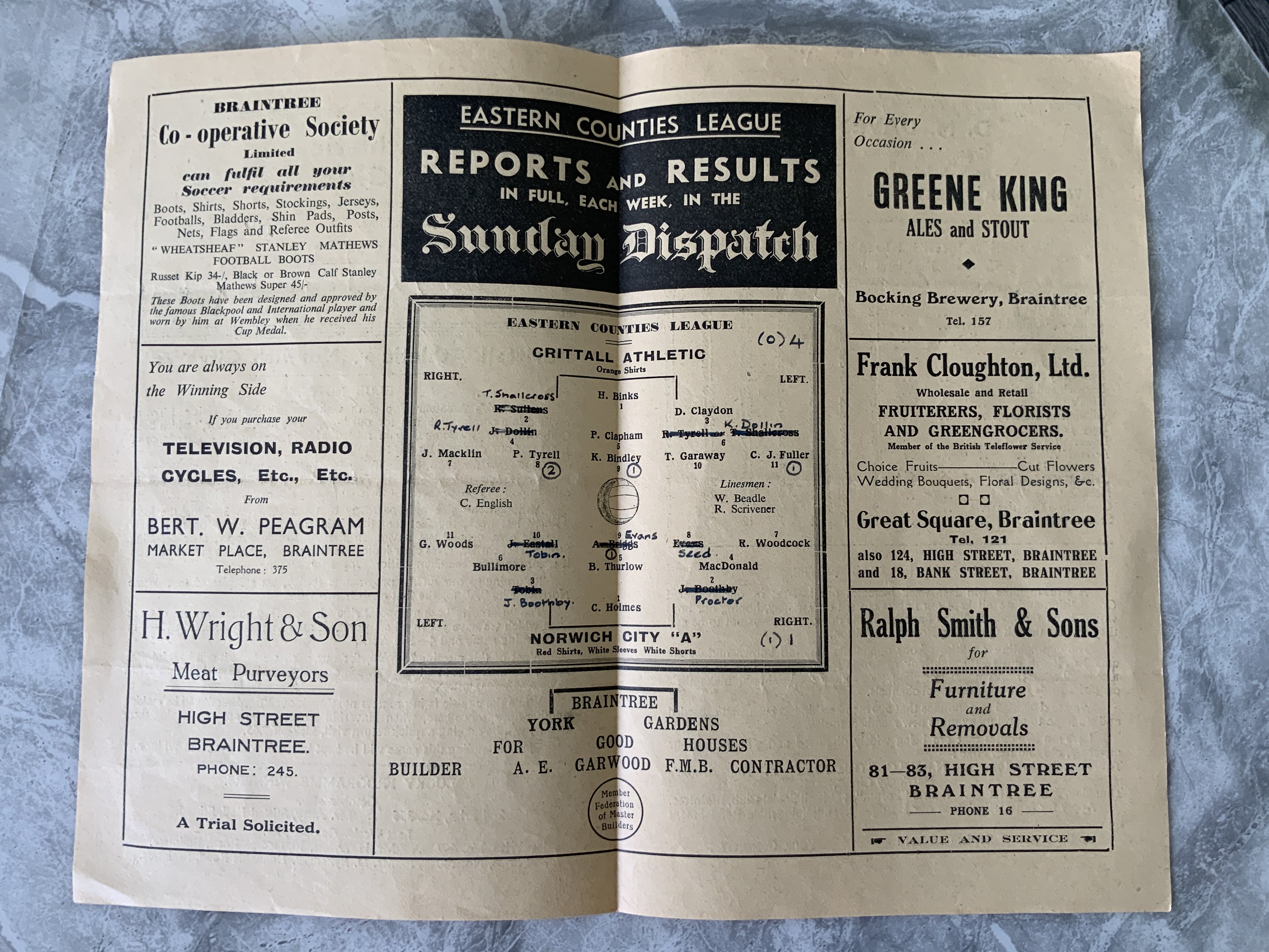 53/54 Crittall v Norwich City A Football Programme: Eastern Counties League 4 pager with team changes dated 7 11 1953. Very good.